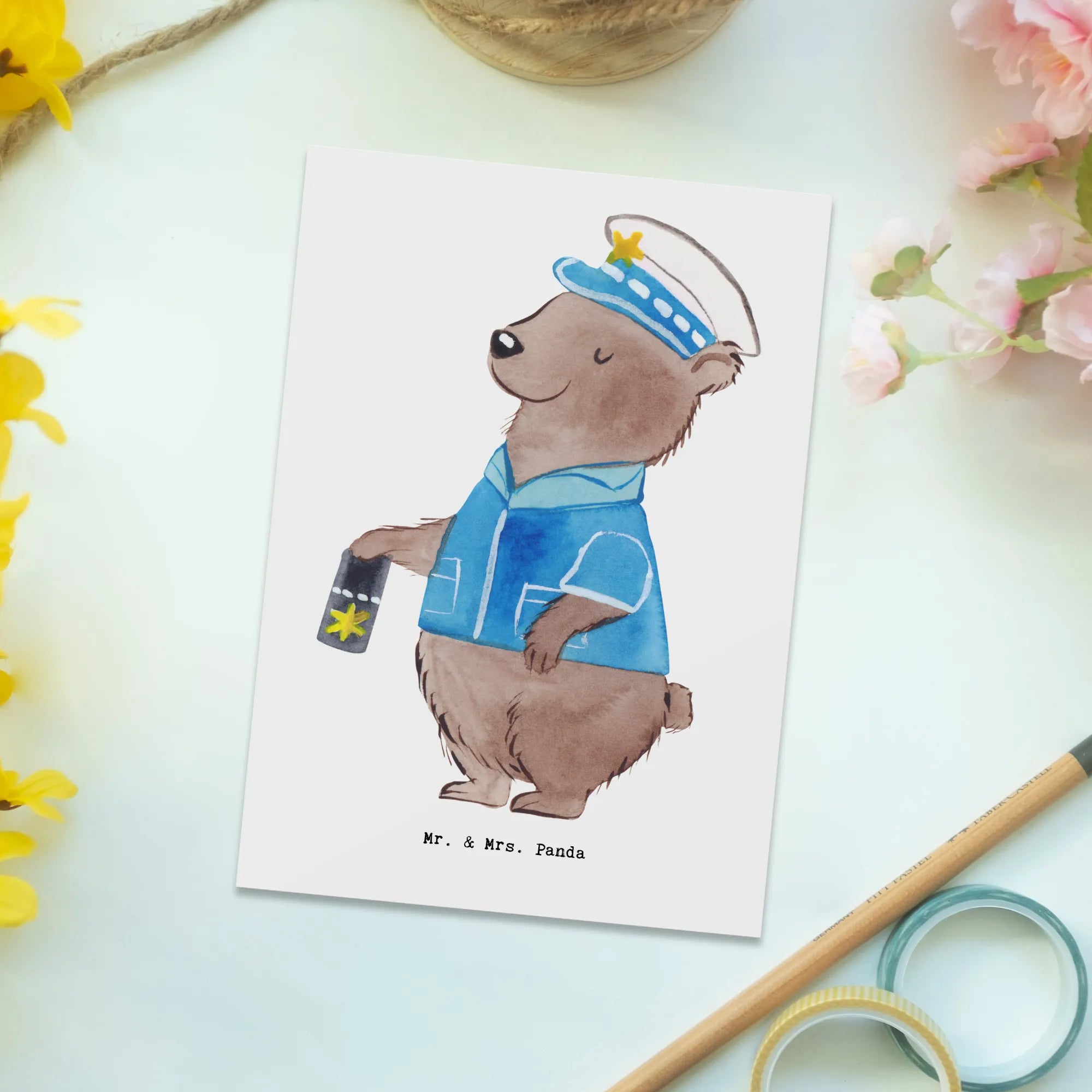 Pocztówka funkcjonariusz policji Serce - z napisem - biały