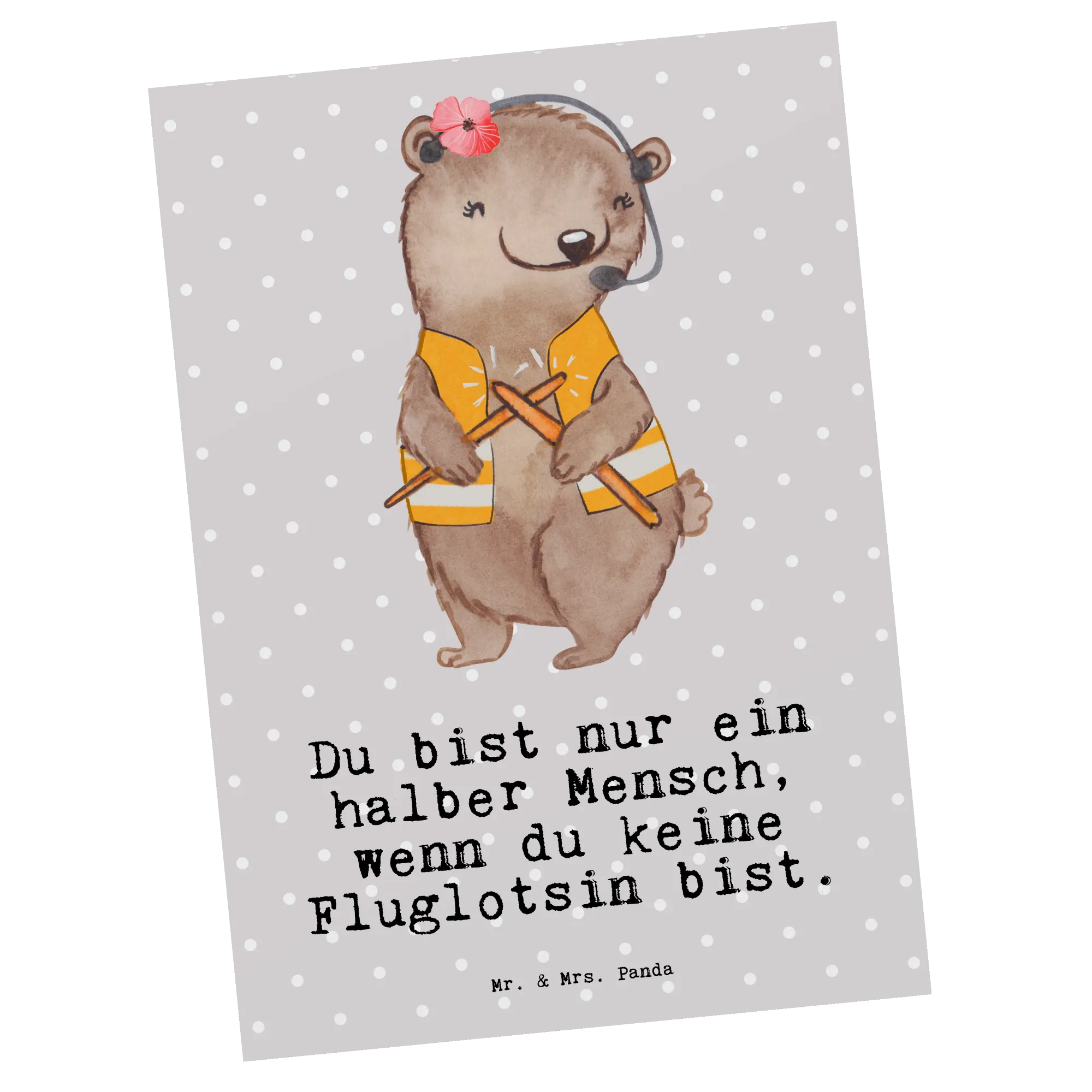 Pocztówka kontrolerka ruchu lotniczego serce - z napisem - biały