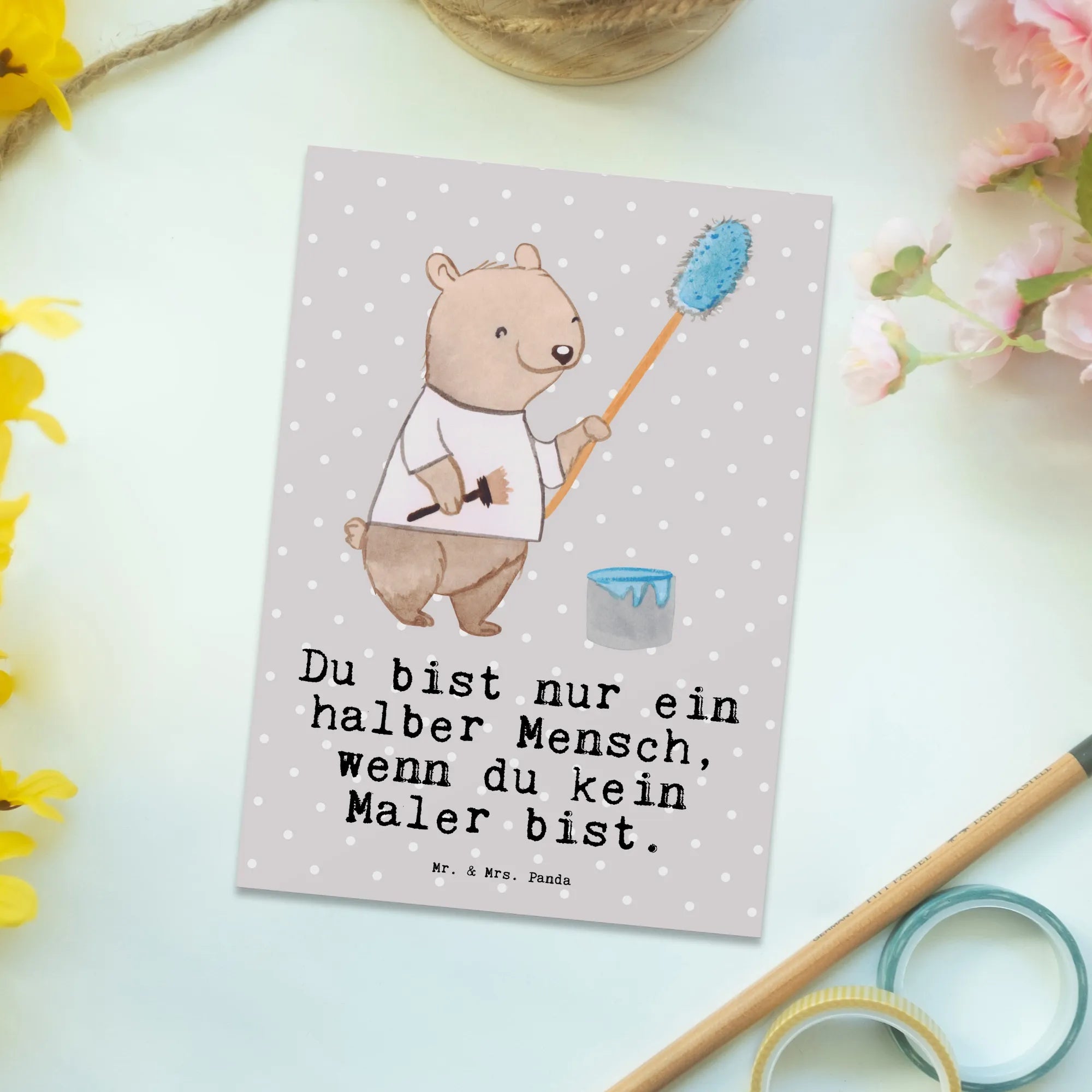 Pocztówka malarz serce - z napisem - Szary Pastel