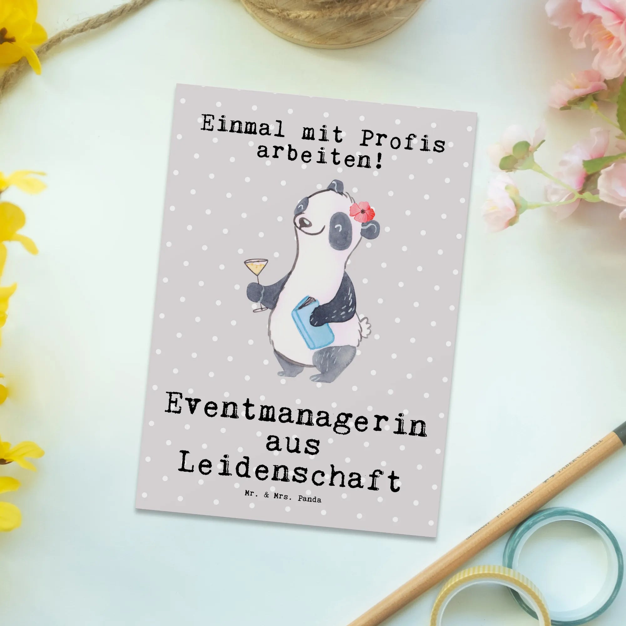 Postkarte „Eventmanagerin aus Leidenschaft“ – liebevoll gezeichnet von Mr. & Mrs. Panda.