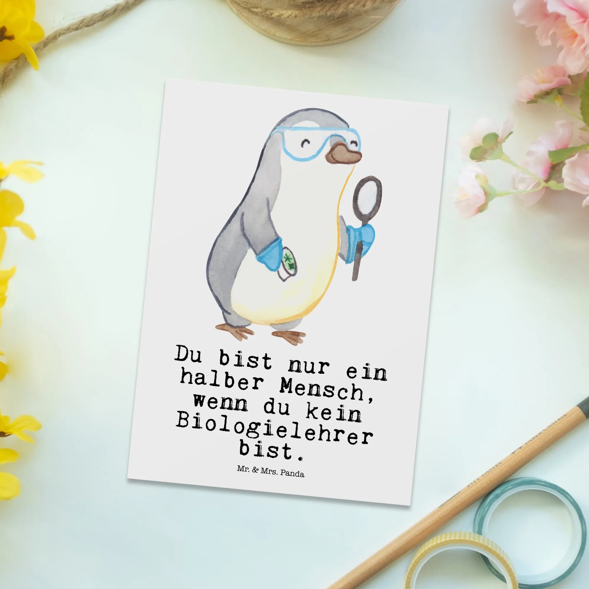 Pocztówka nauczyciel biologii serce - z napisem - biały