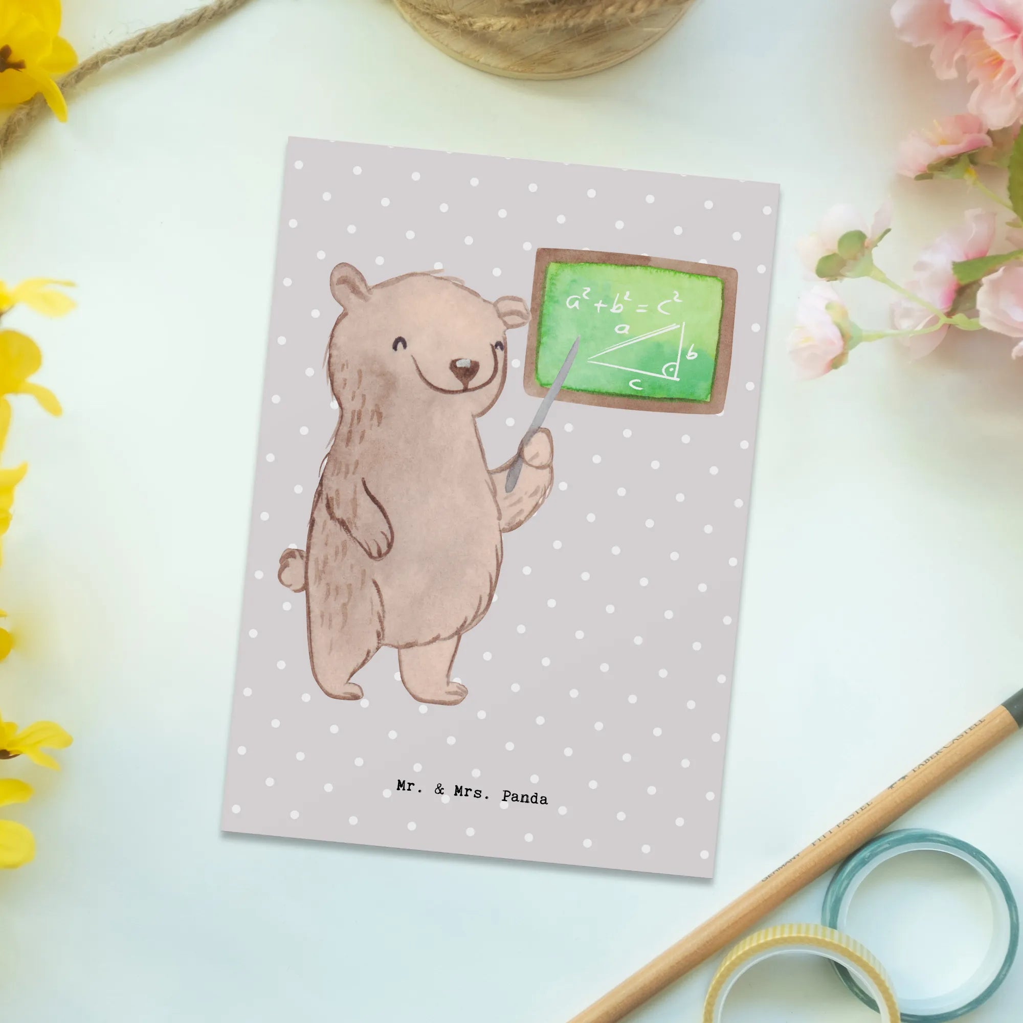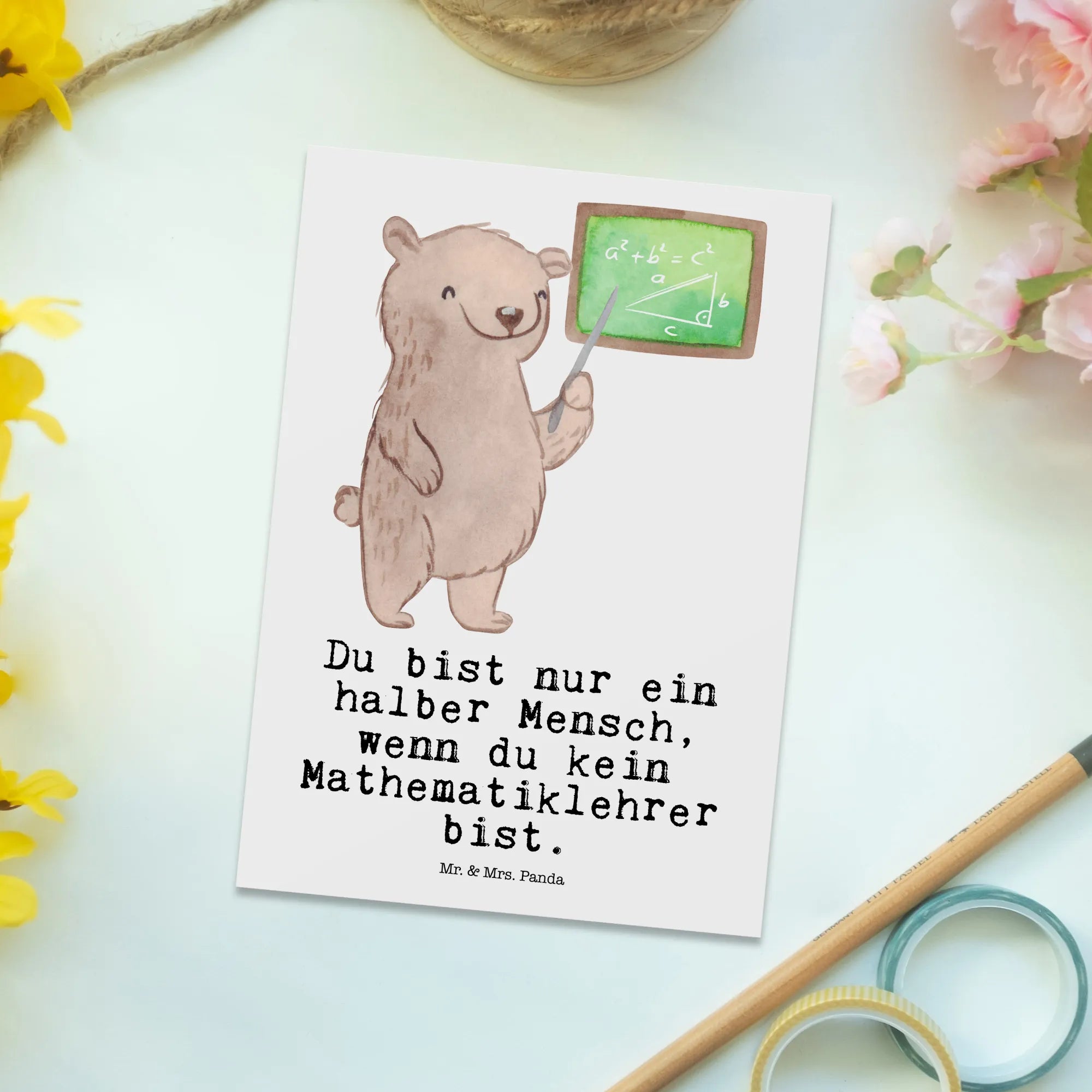 Pocztówka nauczyciel matematyki serce - z napisem - Biały