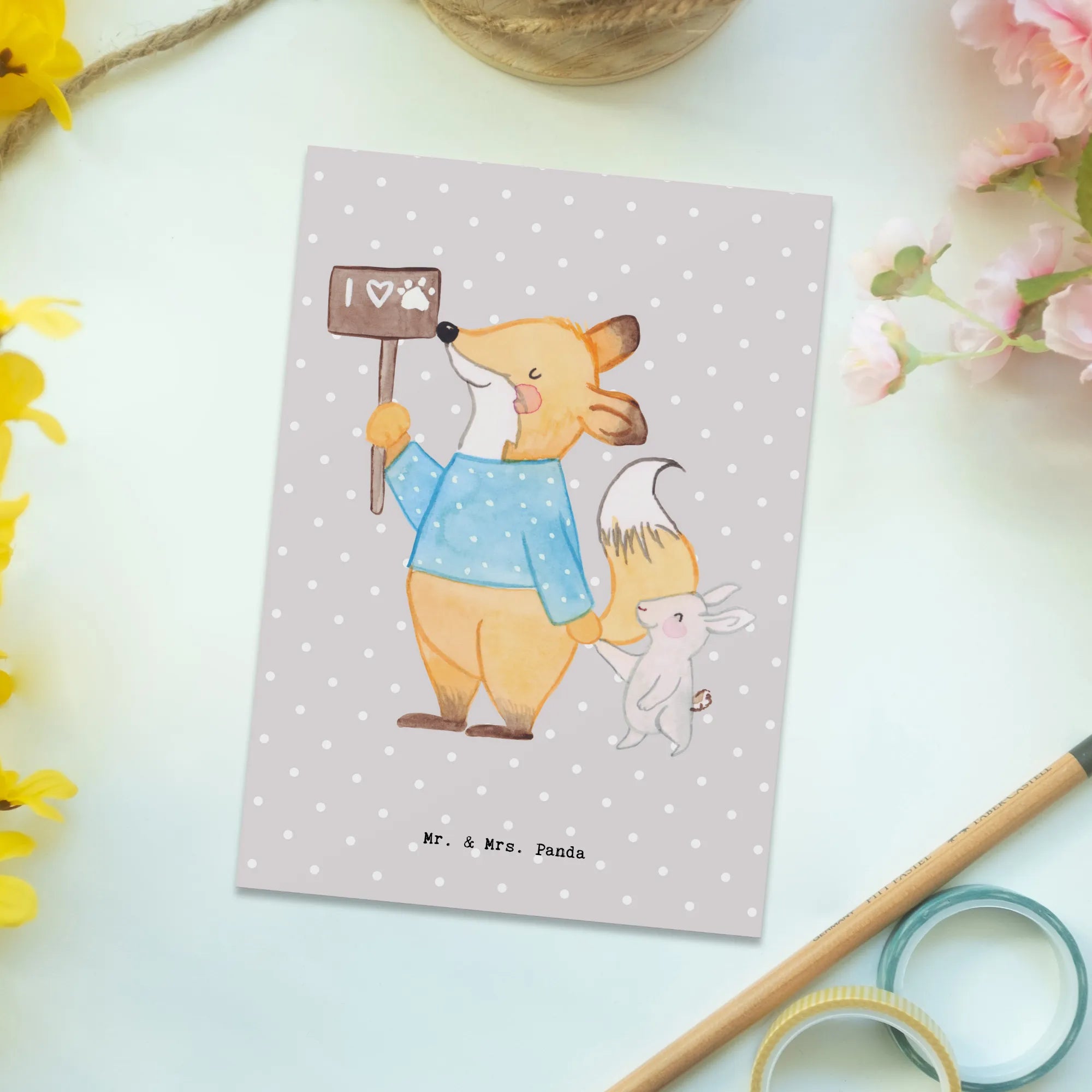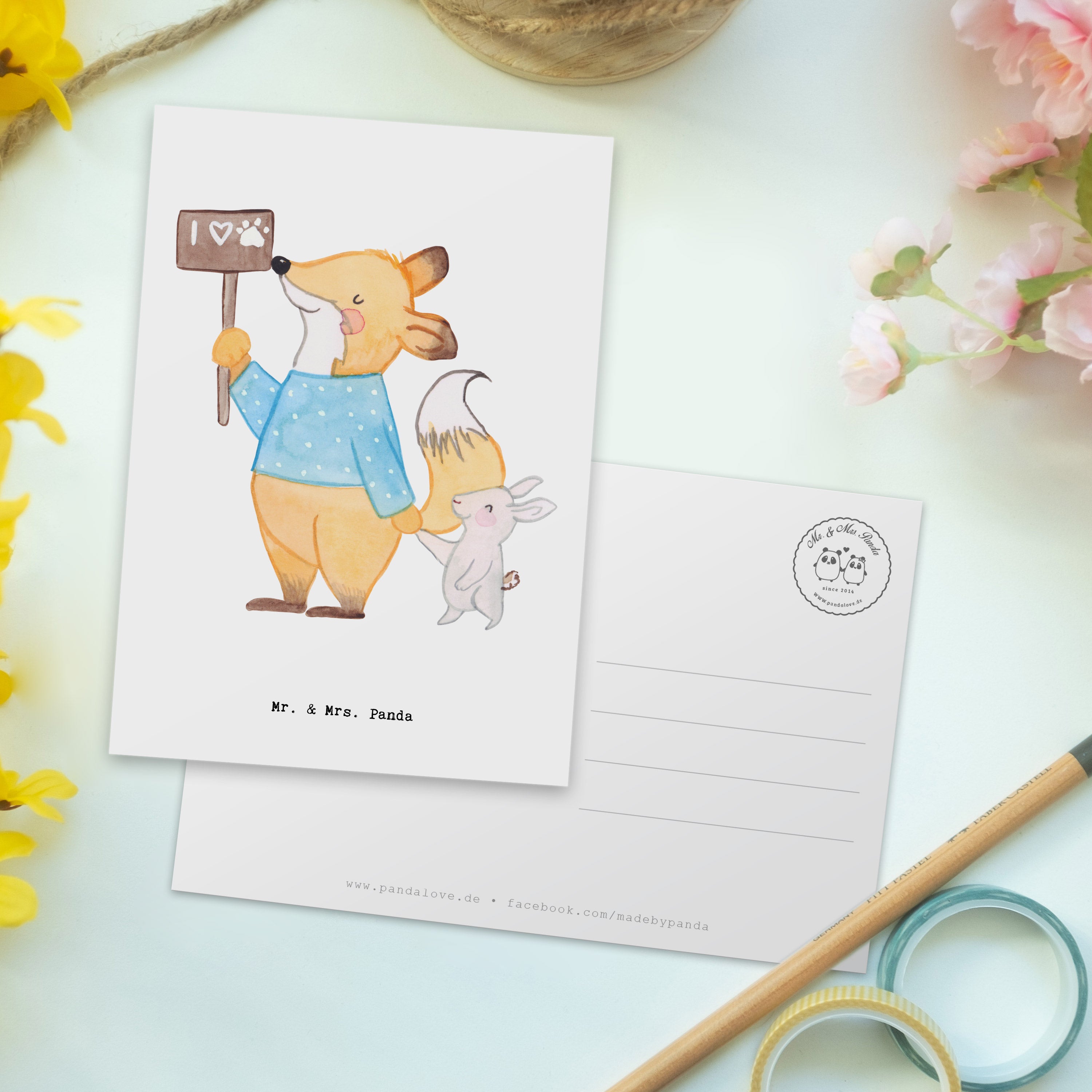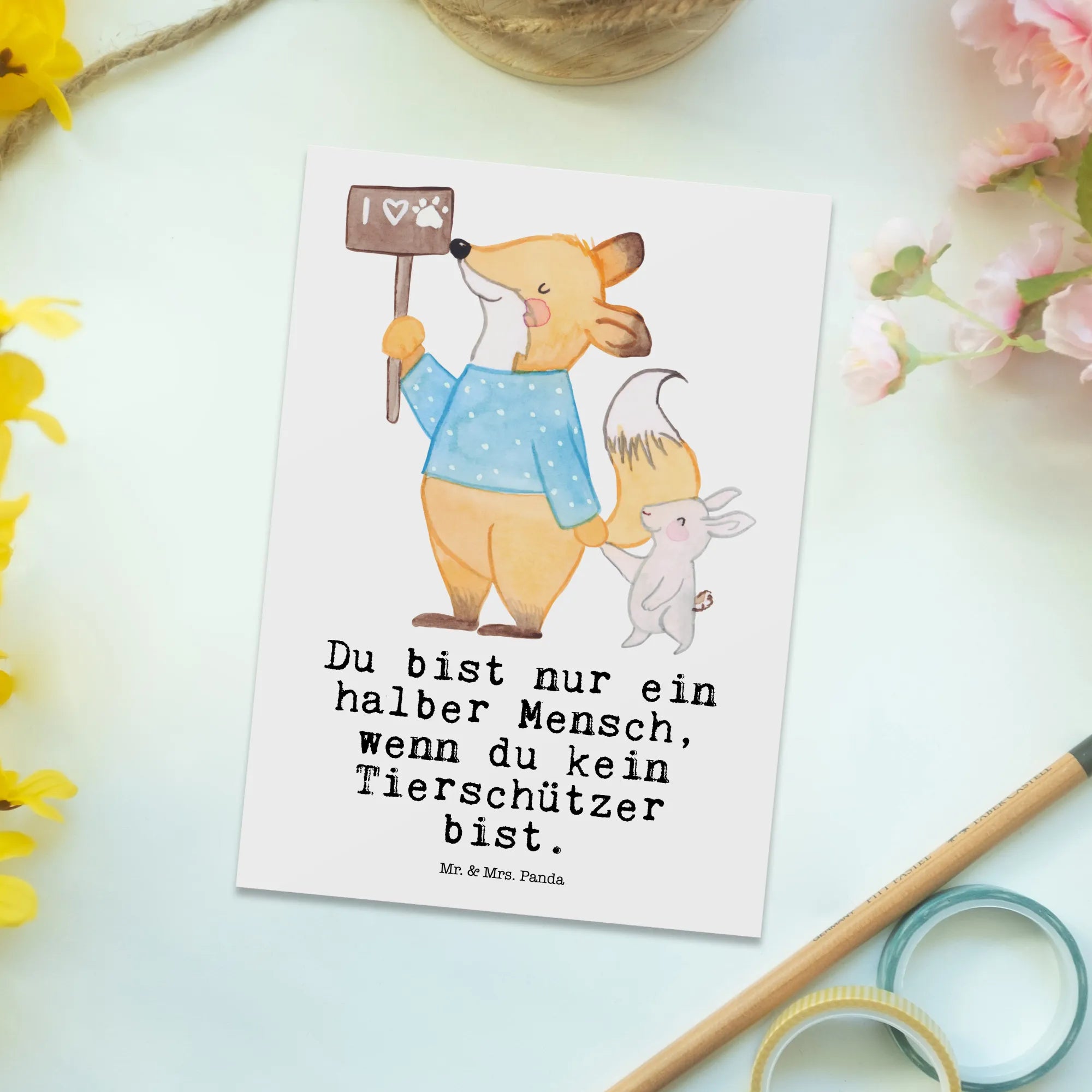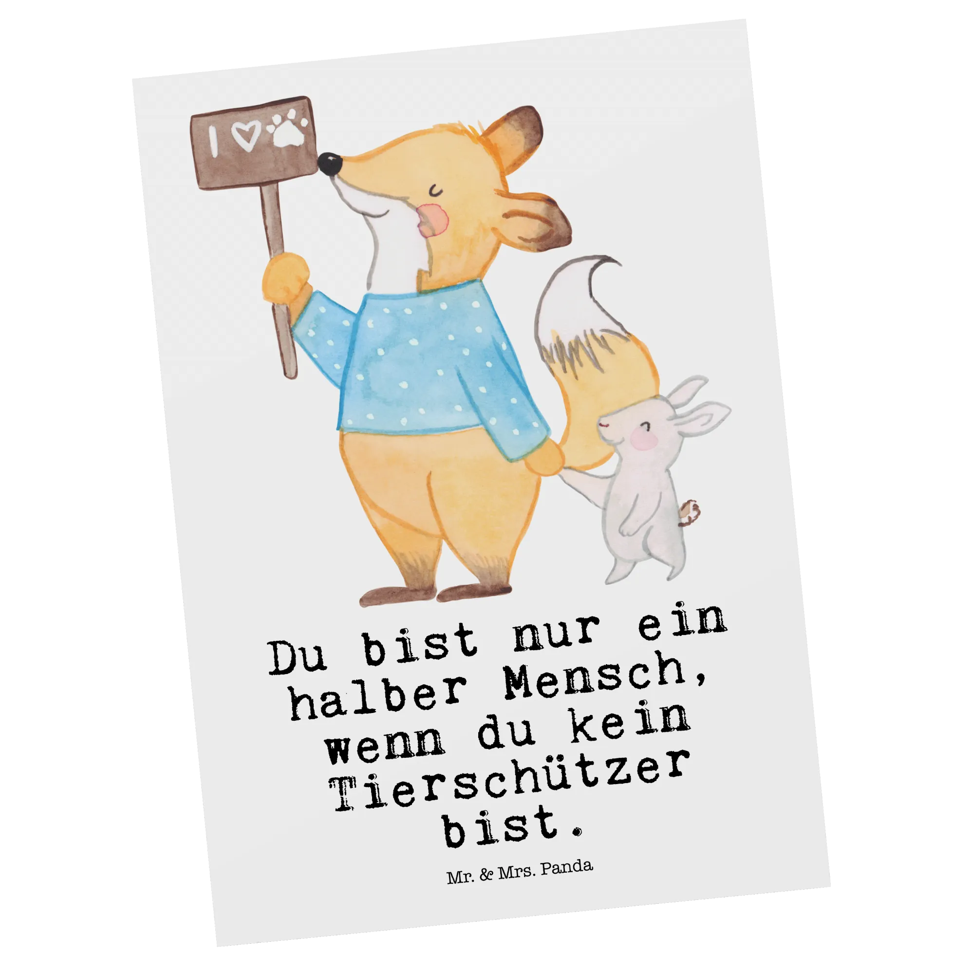 Pocztówka Obrońca zwierząt serce - z napisem - biały
