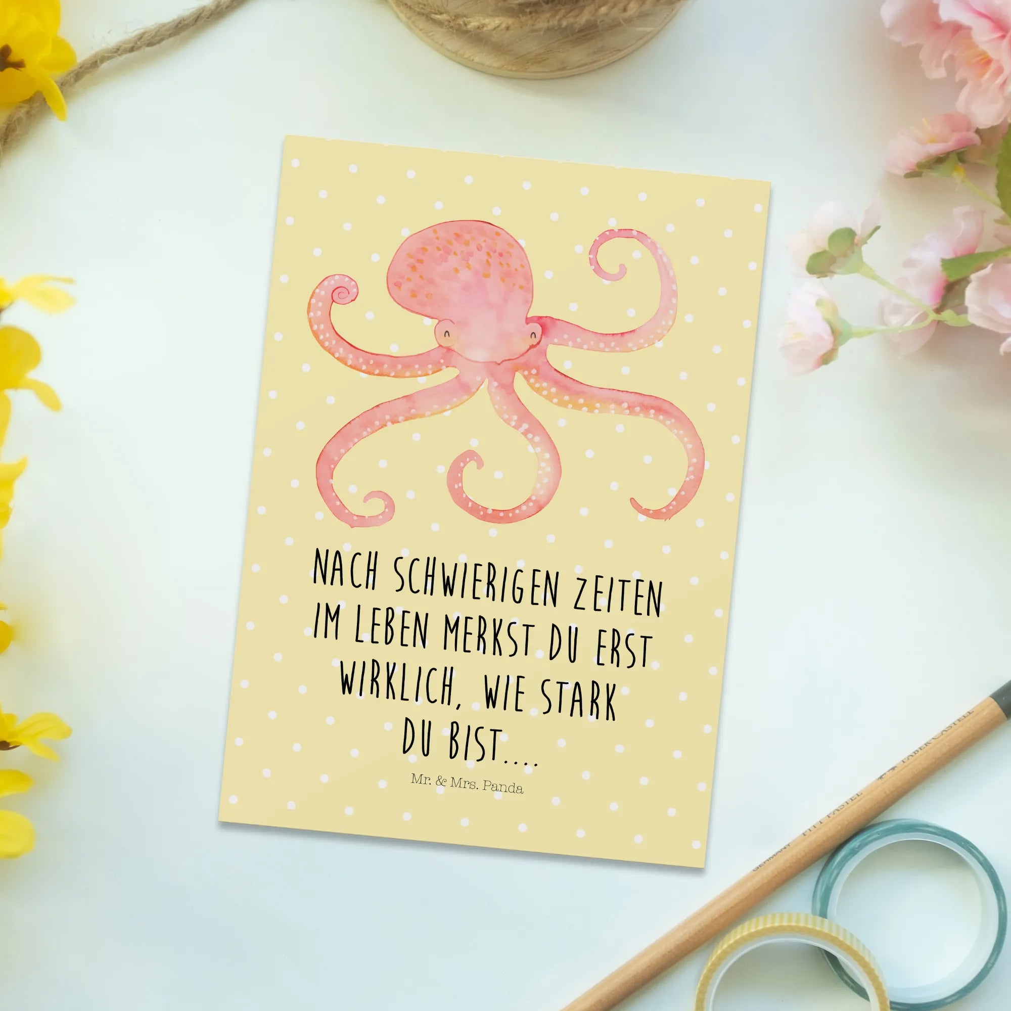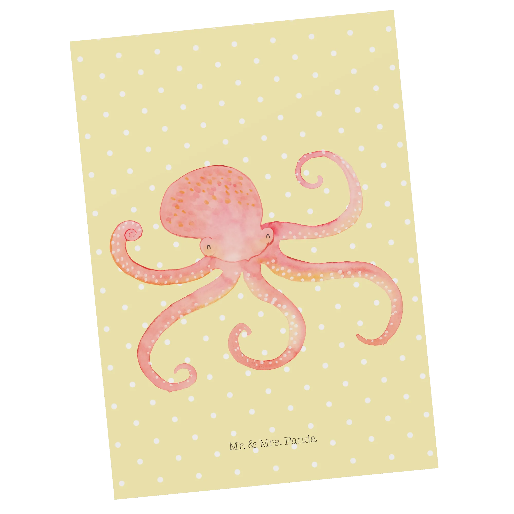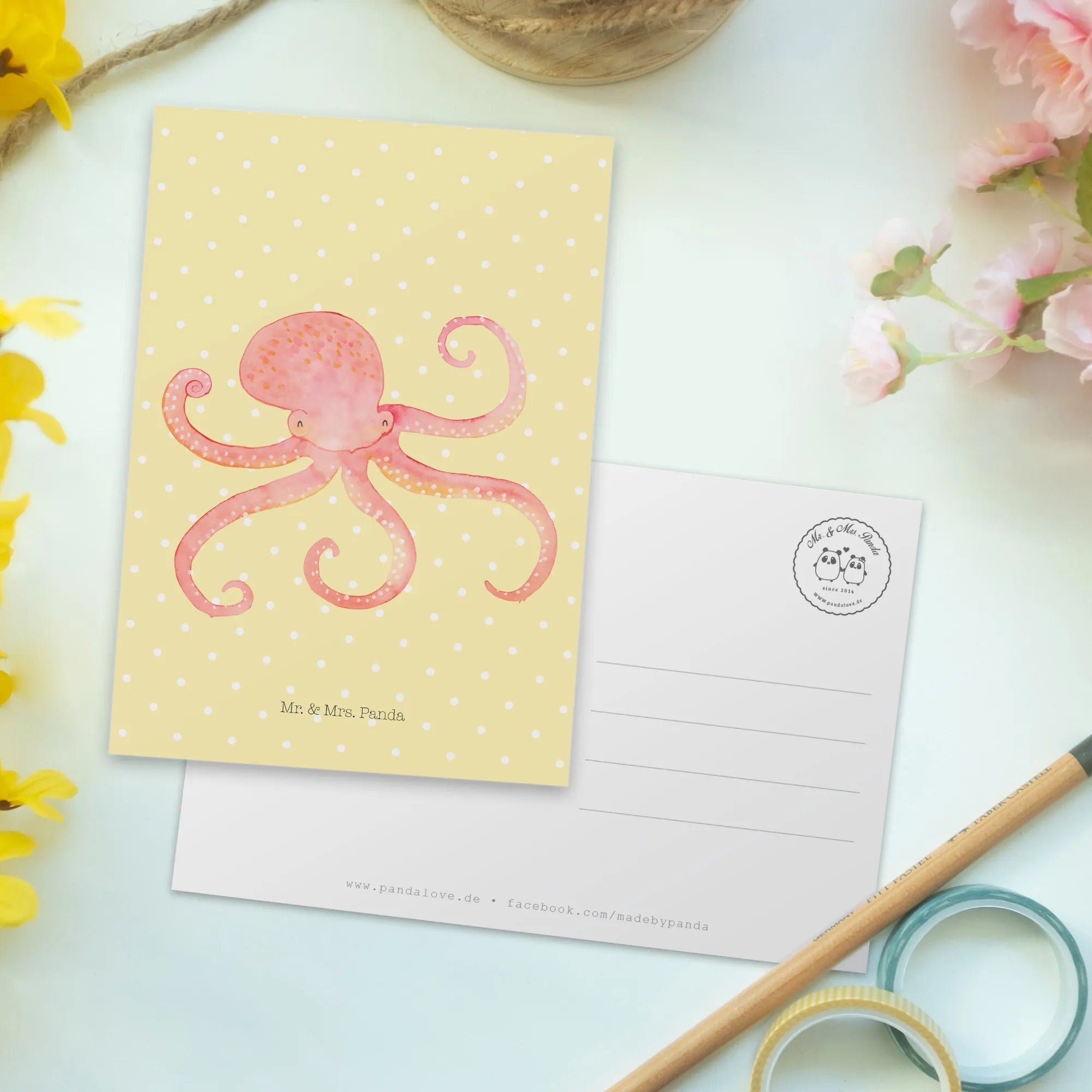 Pocztówka Ośmiornica - z napisem - Pastelowy żółty