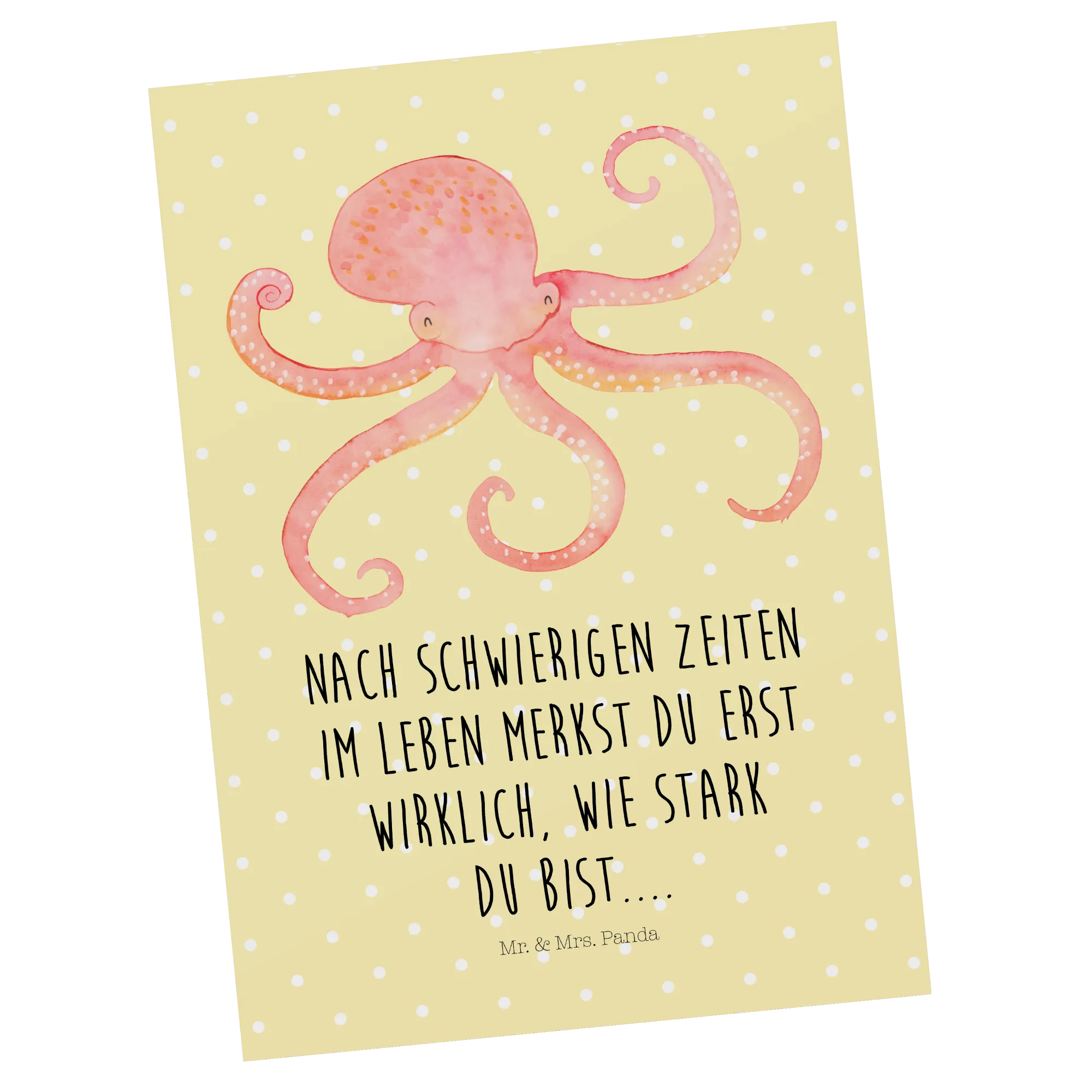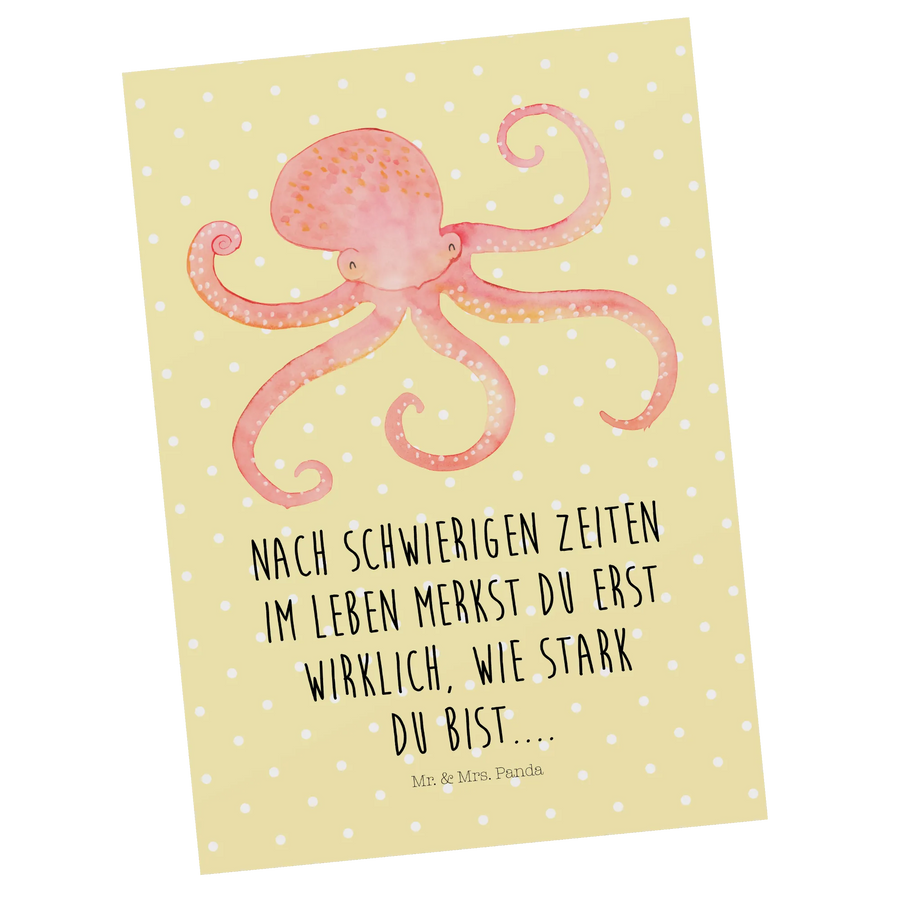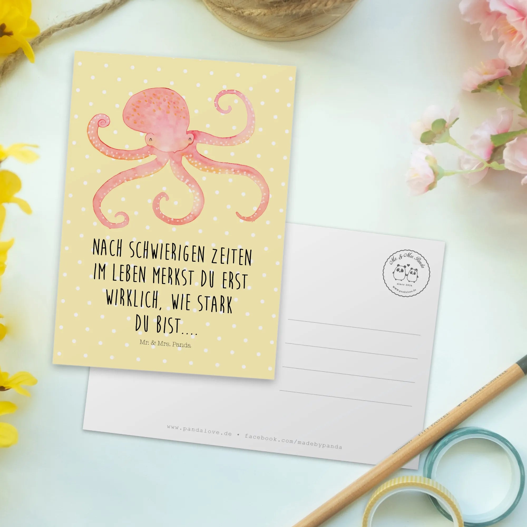 Pocztówka Ośmiornica - z napisem - Pastelowy żółty