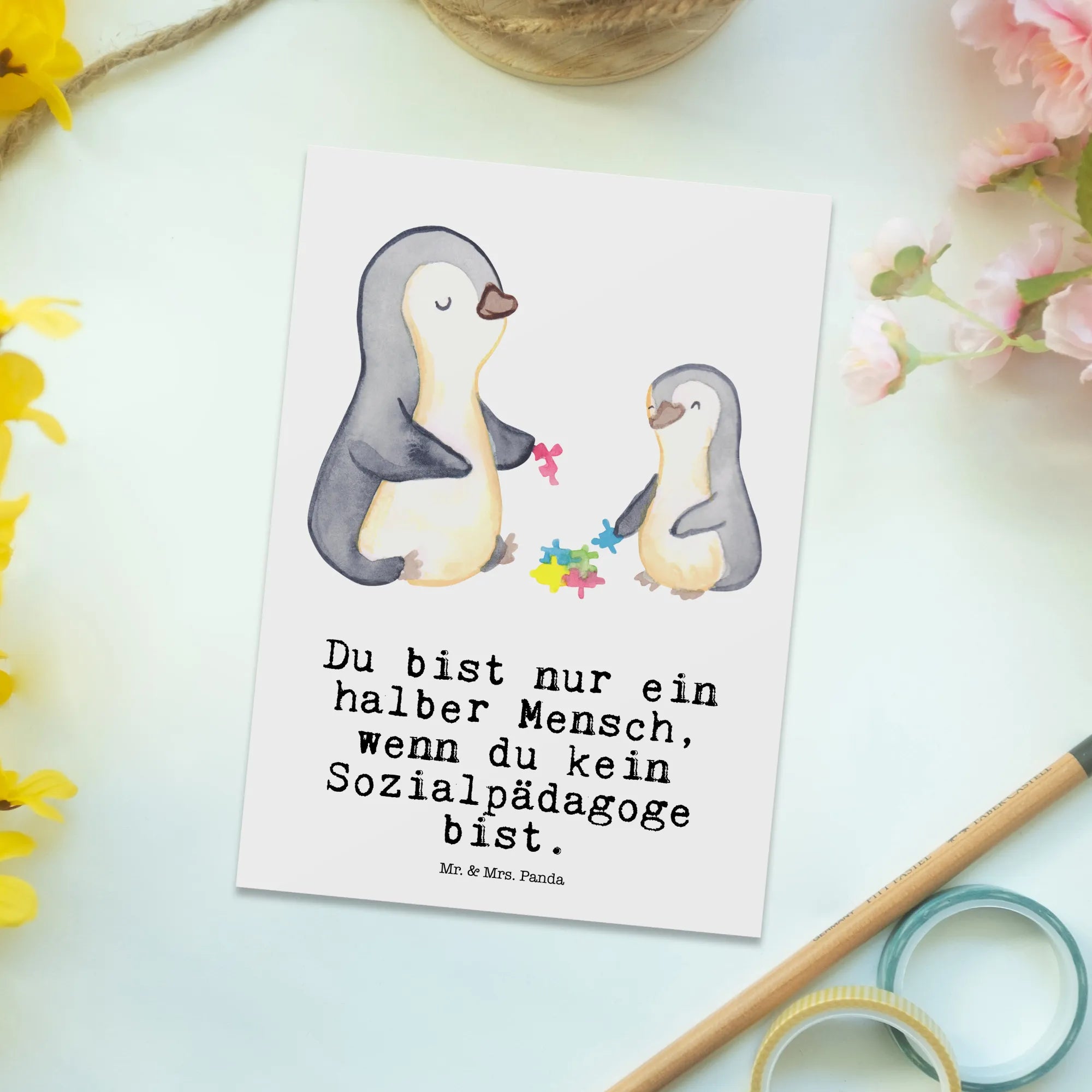 Pocztówka pedagog społeczny serce - z napisem - biały