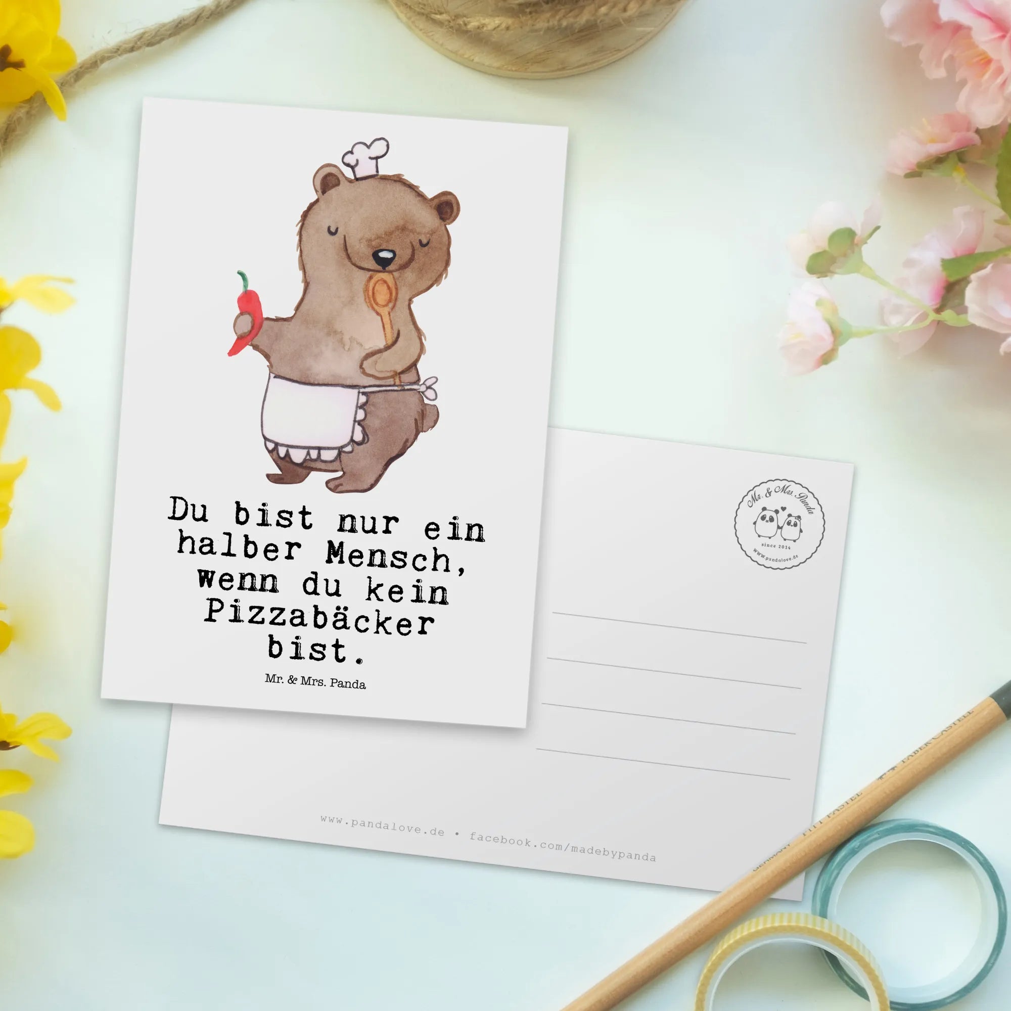 Pocztówka piekarz pizzy serce - z napisem - biały