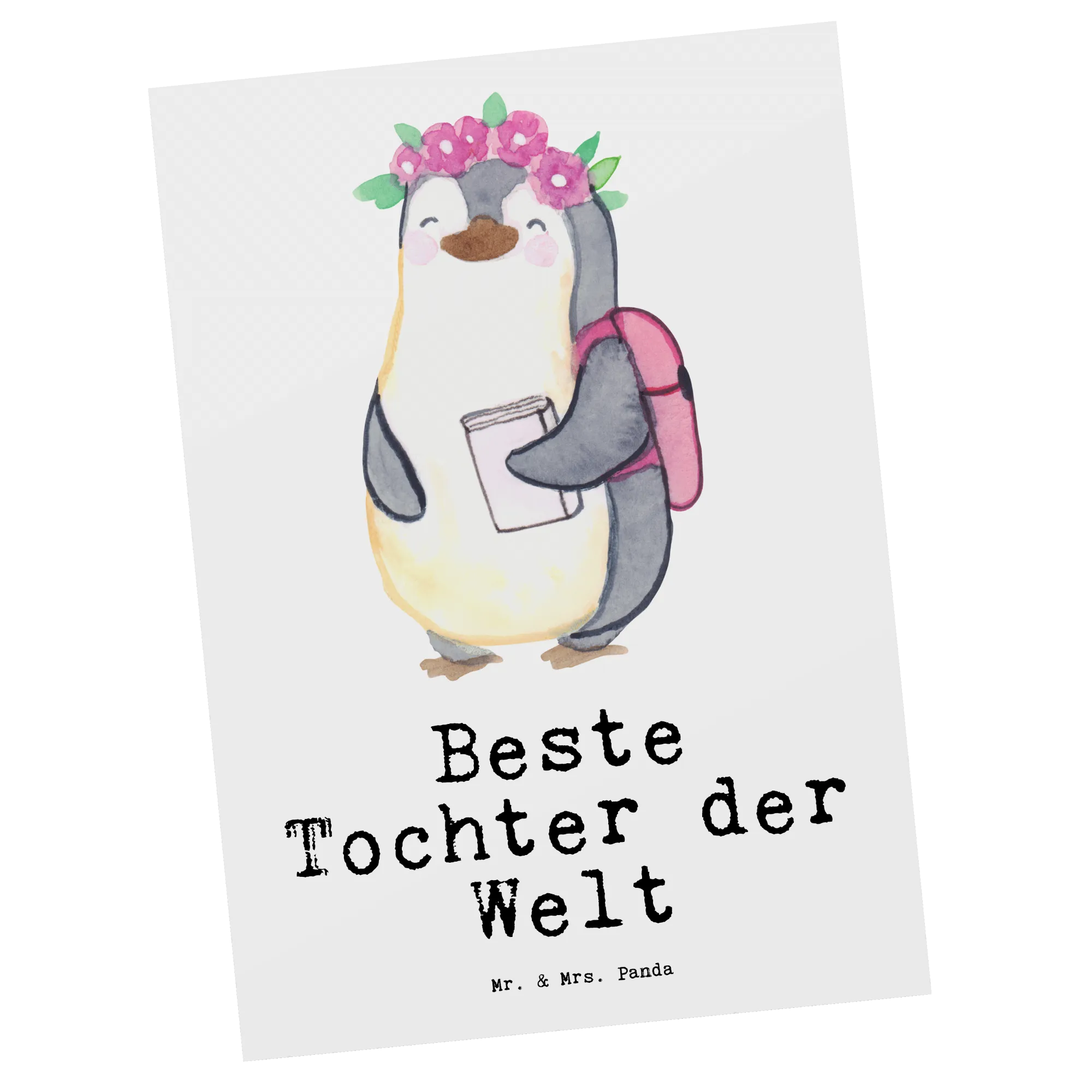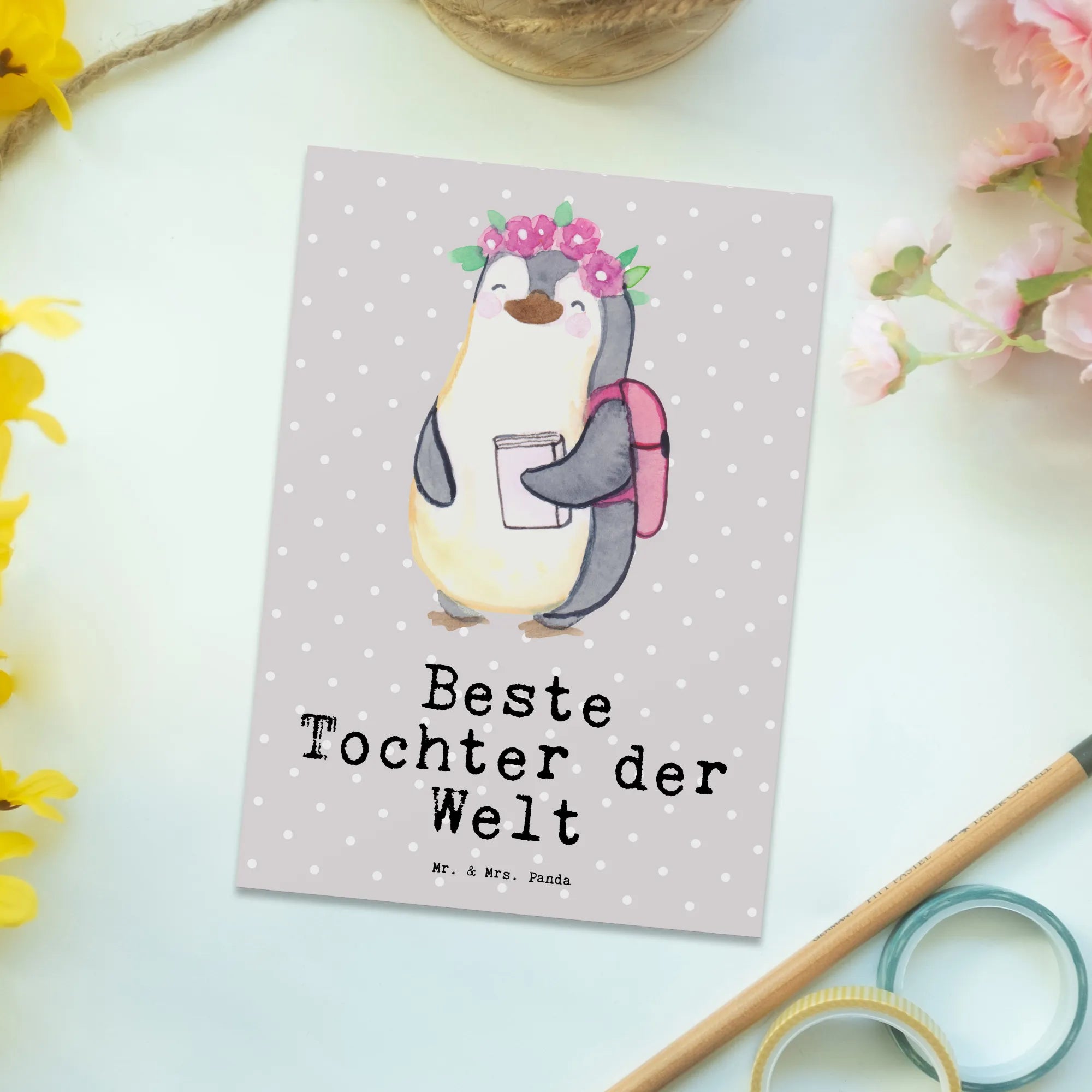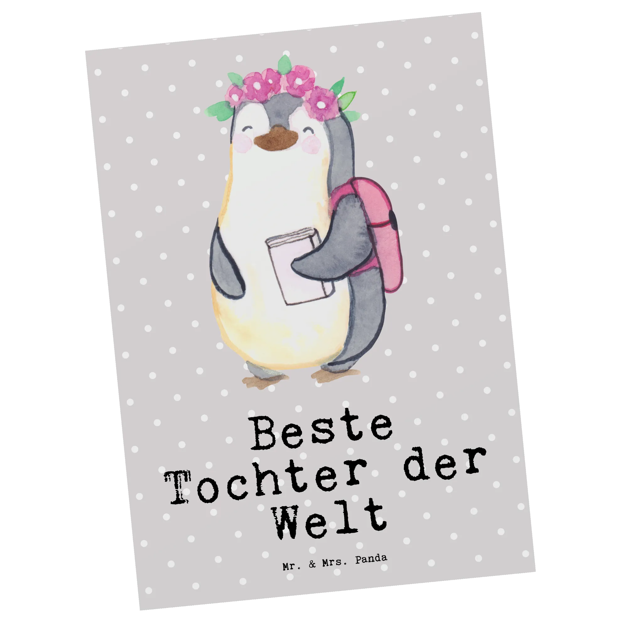 Pocztówka pingwin Najlepsza córka na świecie - Szary Pastel