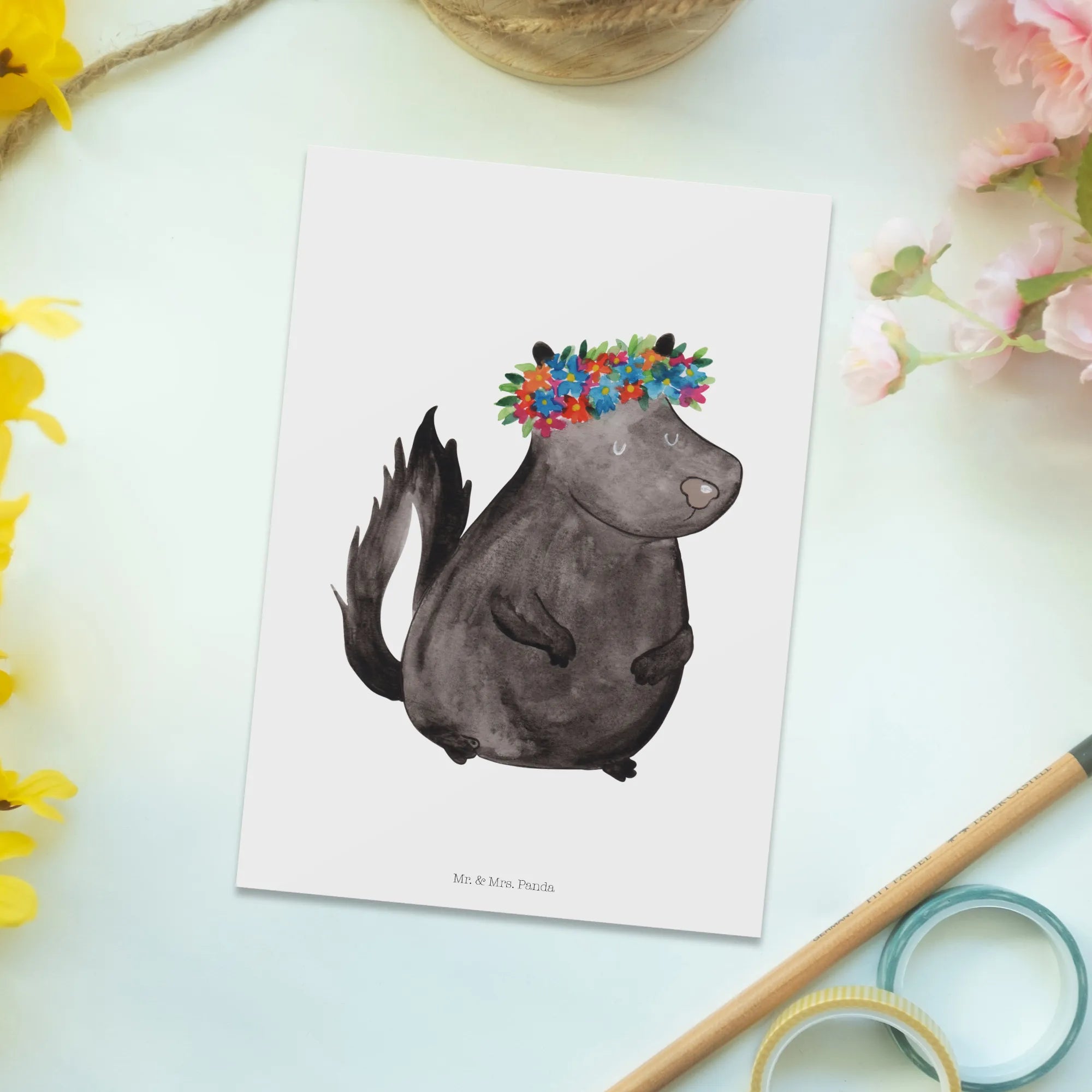 Pocztówka skunks dziewczynka - z napisem - pastelowy turkus