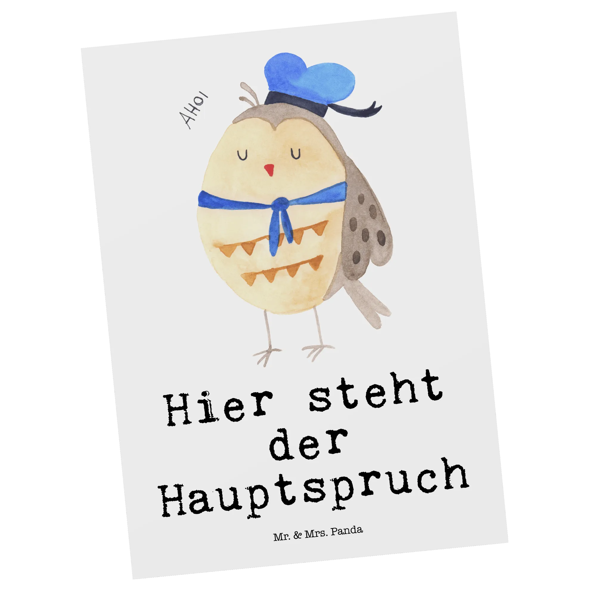 Pocztówka sowa Marynarz - z napisem - pastelowy turkus