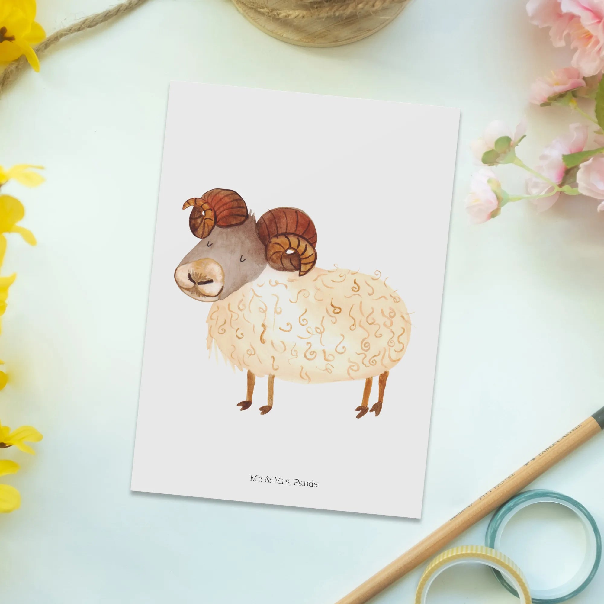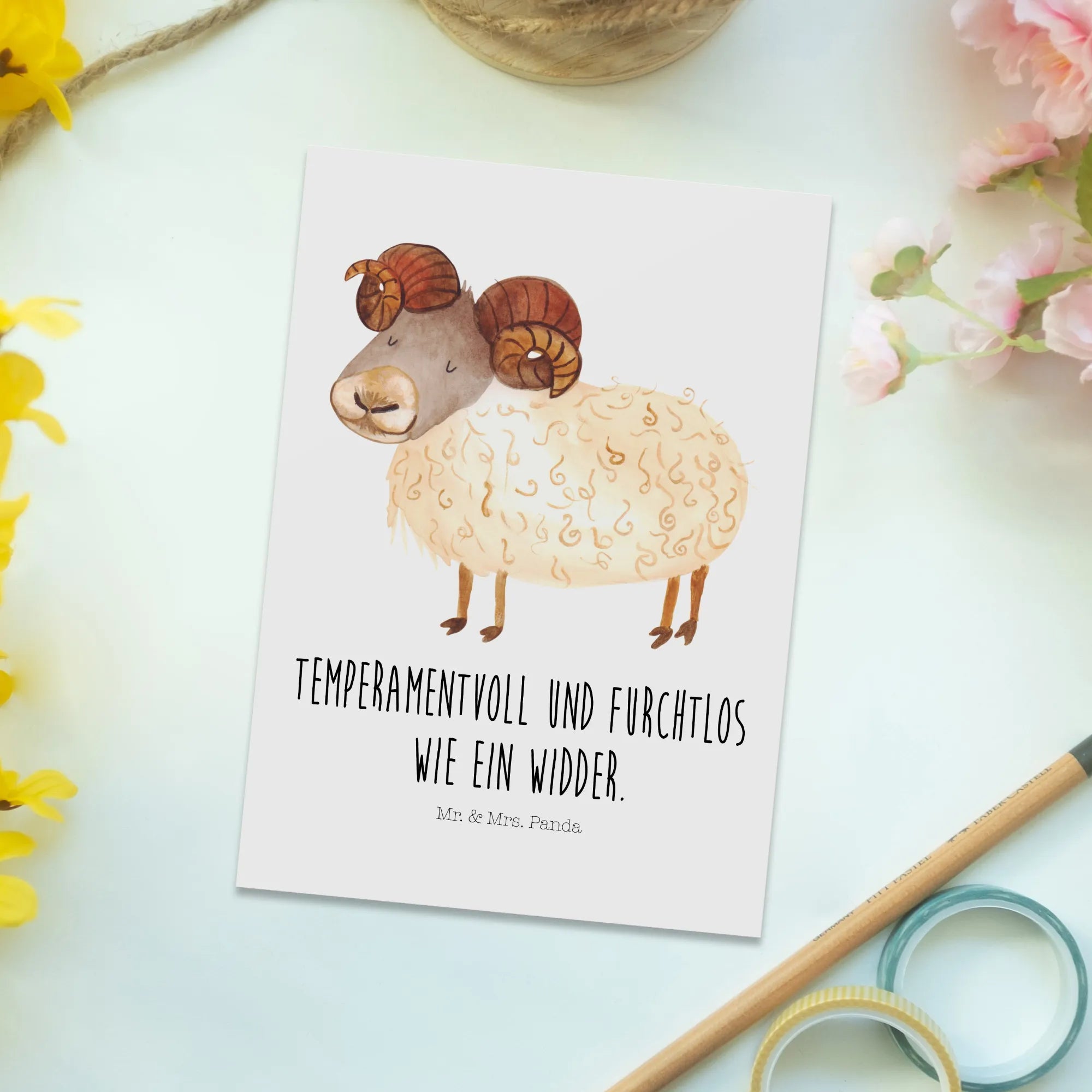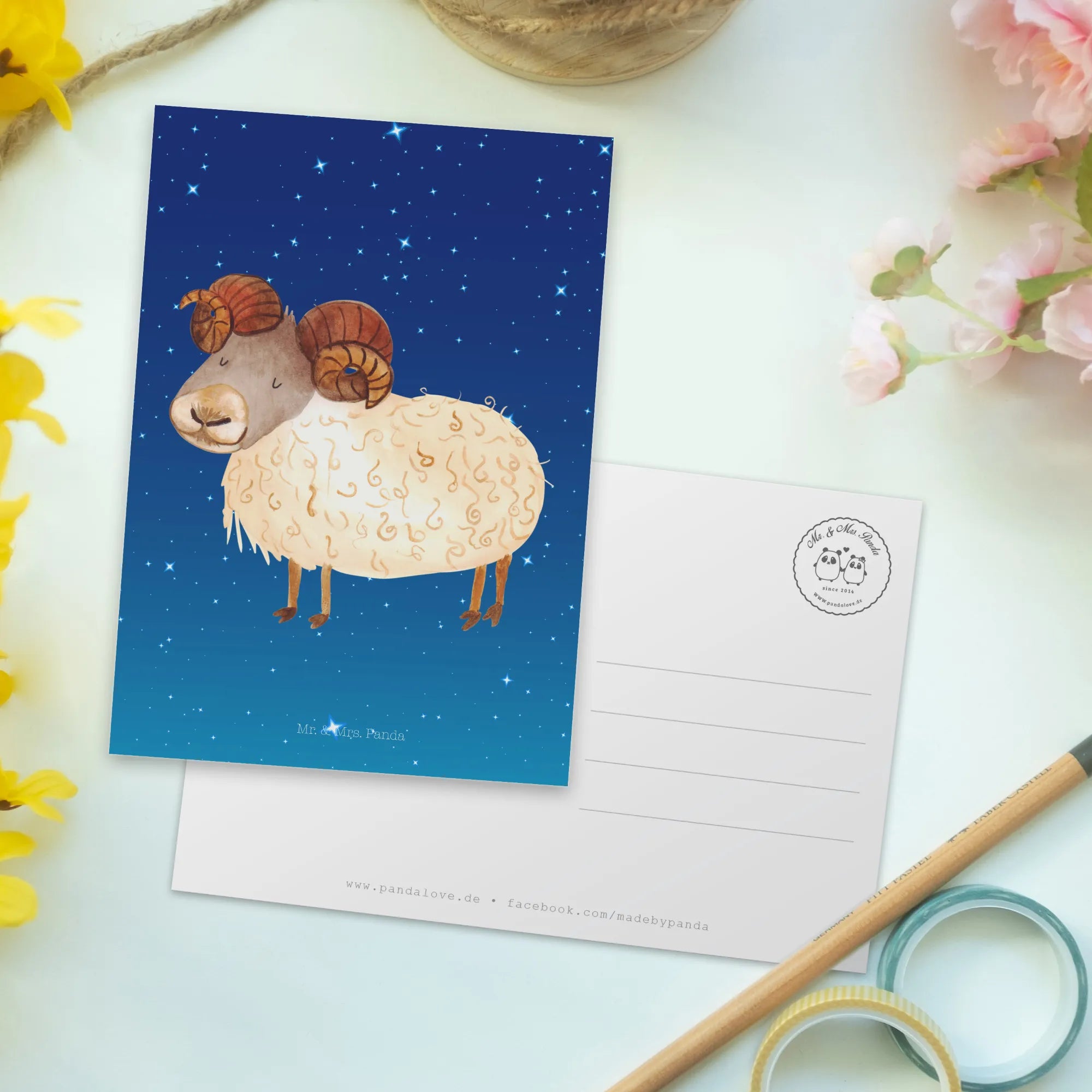 Pocztówka znak zodiaku Baran - z napisem - Sternenhimmel Blau