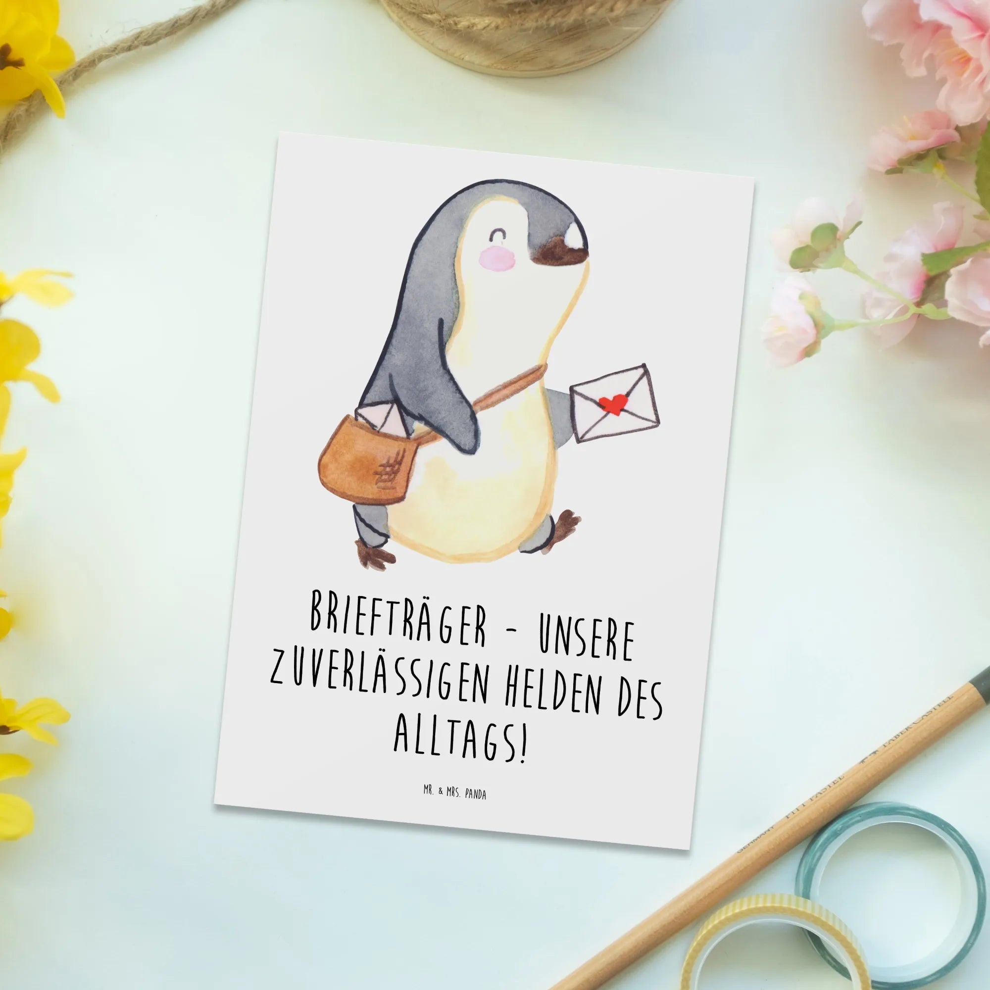 Du suchst nach der perfekten Möglichkeit, Danke zu sagen? Dann ist die Postkarte "Briefträger" aus der bezaubernden Danke-Kollektion von Mr. & Mrs. Panda genau das Richtige für dich! Diese einzigartige Postkarte strahlt mit ihrem liebevollen Design und dem witzigen Spruch "Briefträger - unsere zuverlässigen Helden des Alltags!" eine herzliche Botschaft aus, die perfekt für jeden Anlass ist.