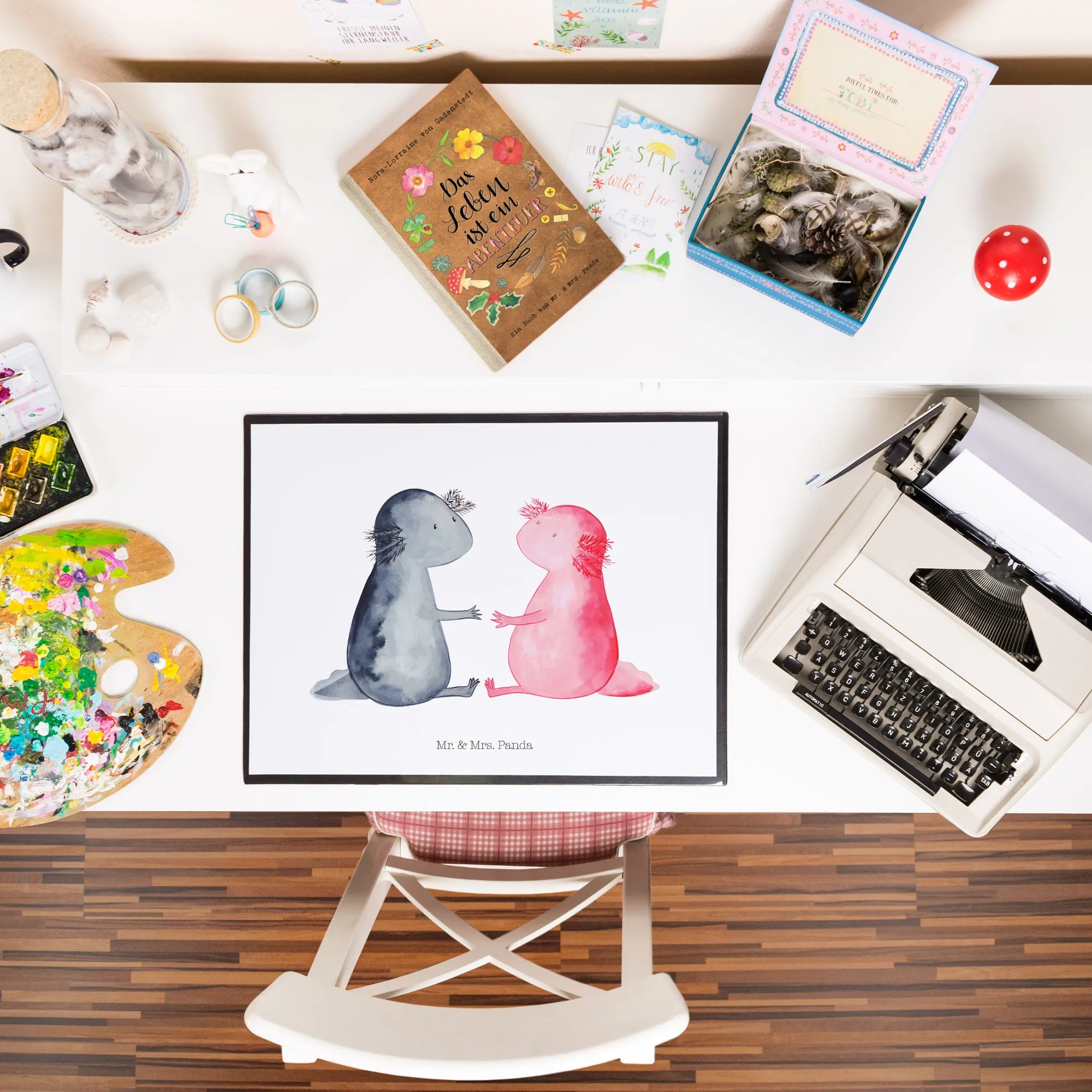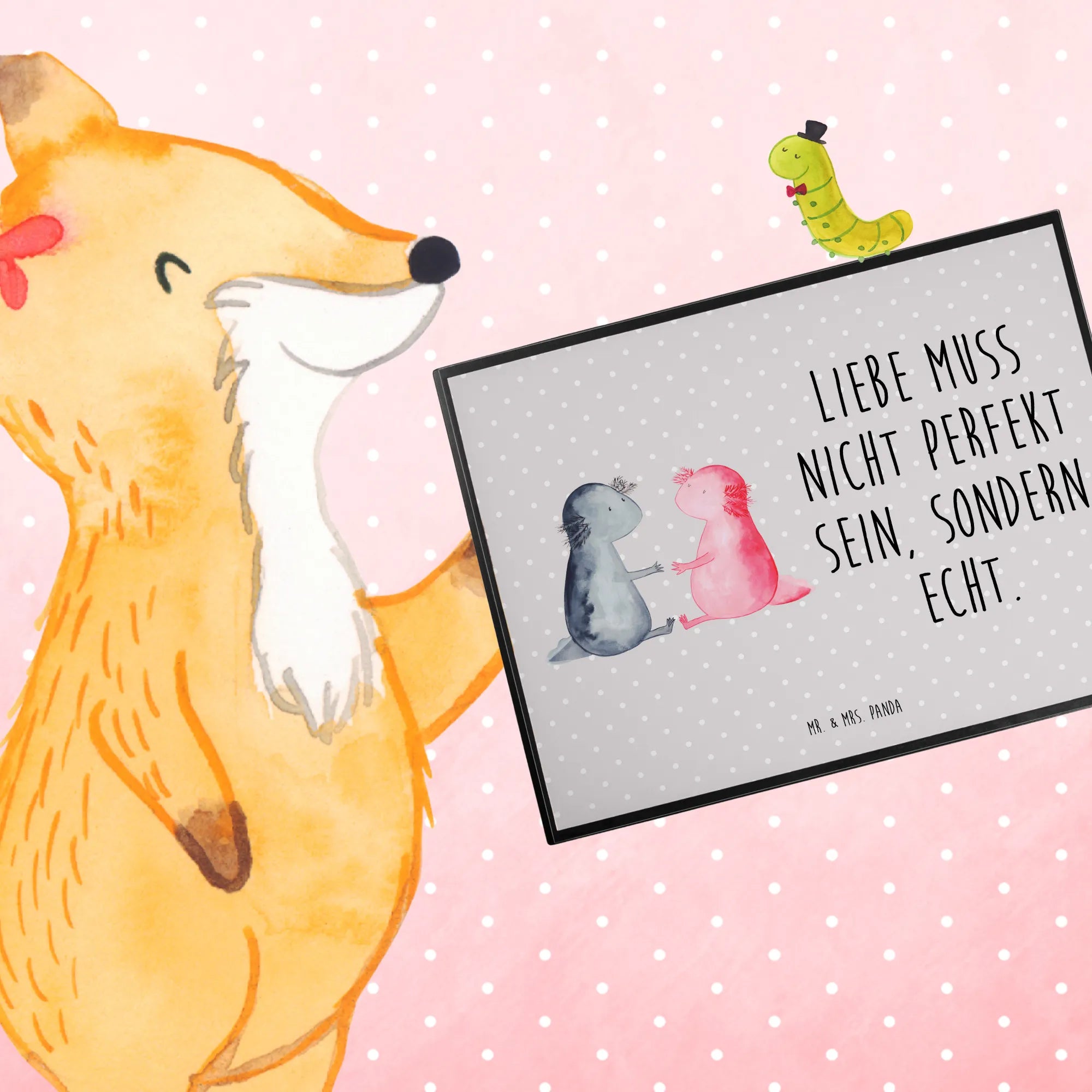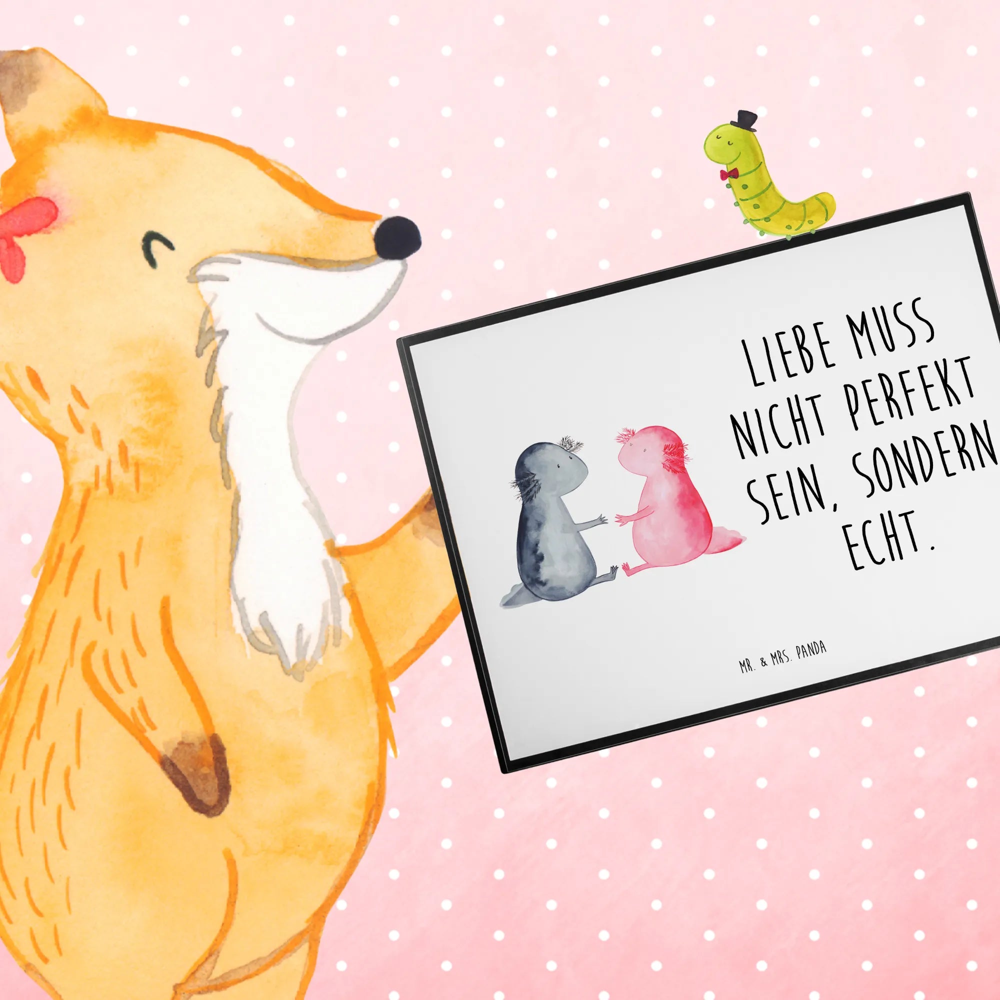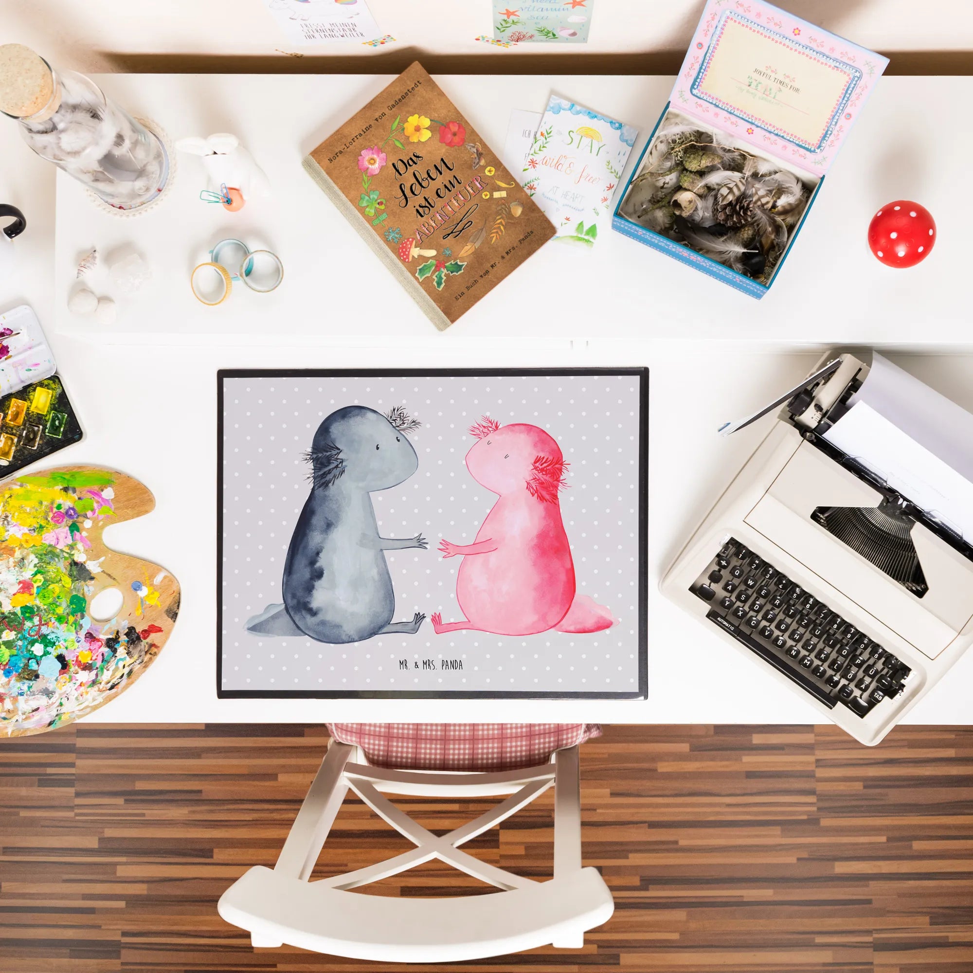 Podkładka na biurko Axolotl miłość - z napisem - biały