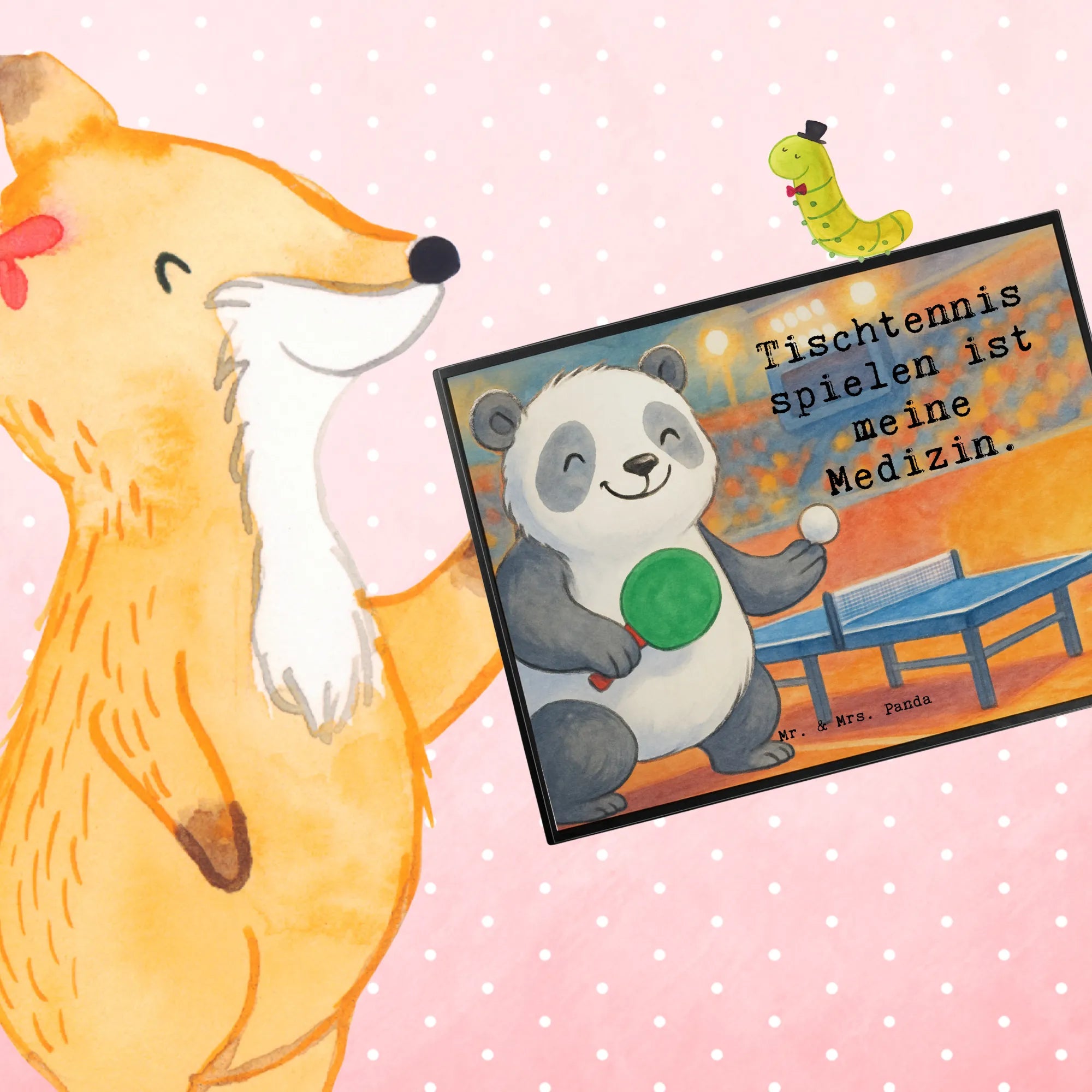Schreibtischunterlage Panda Tischtennis Design - mit Spruch