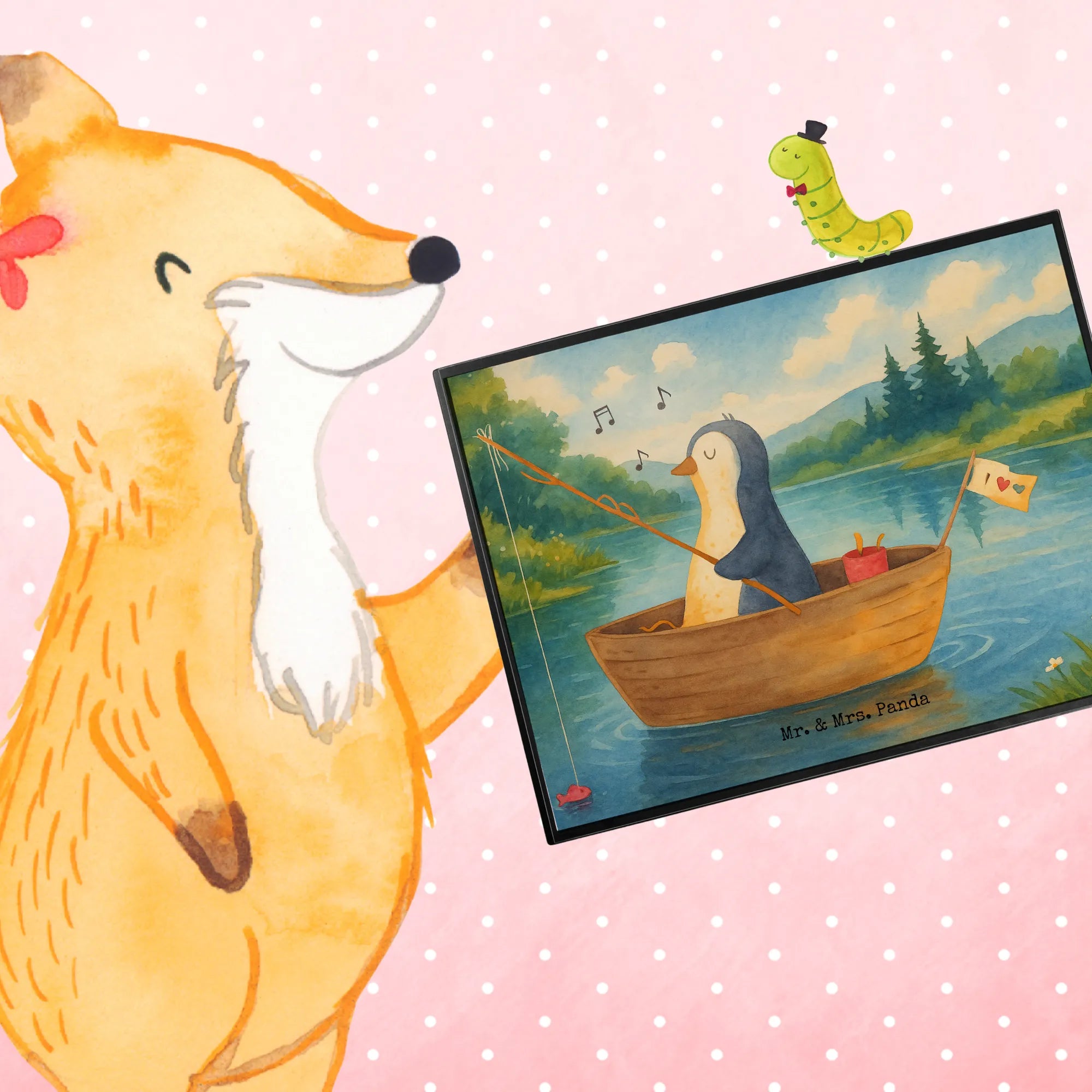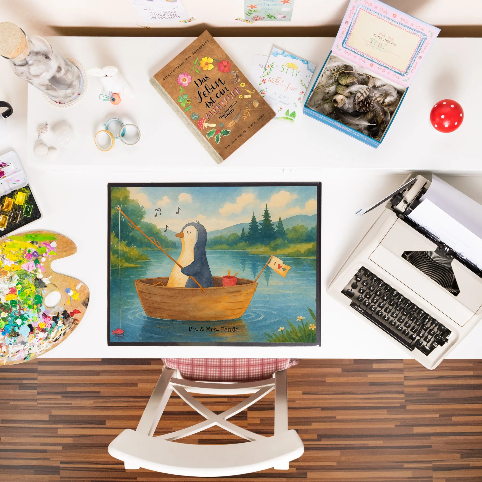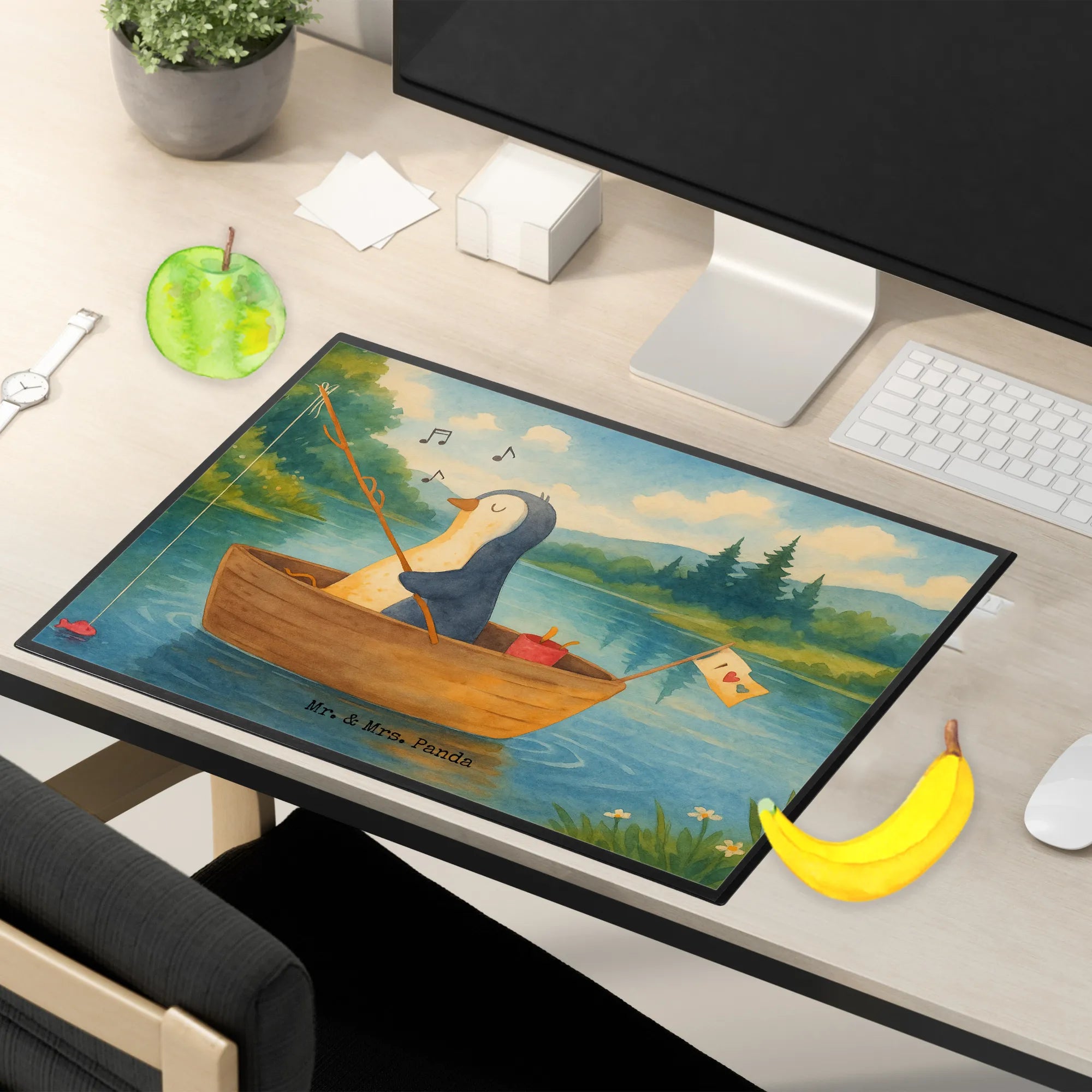 Schreibtischunterlage Pinguin Angelboot Design