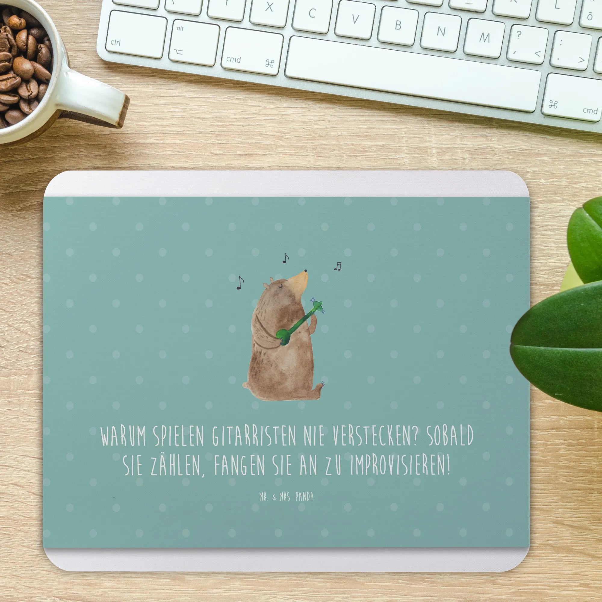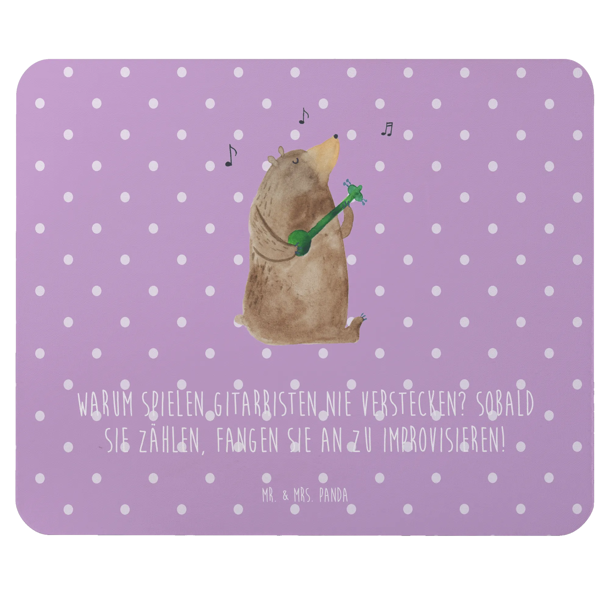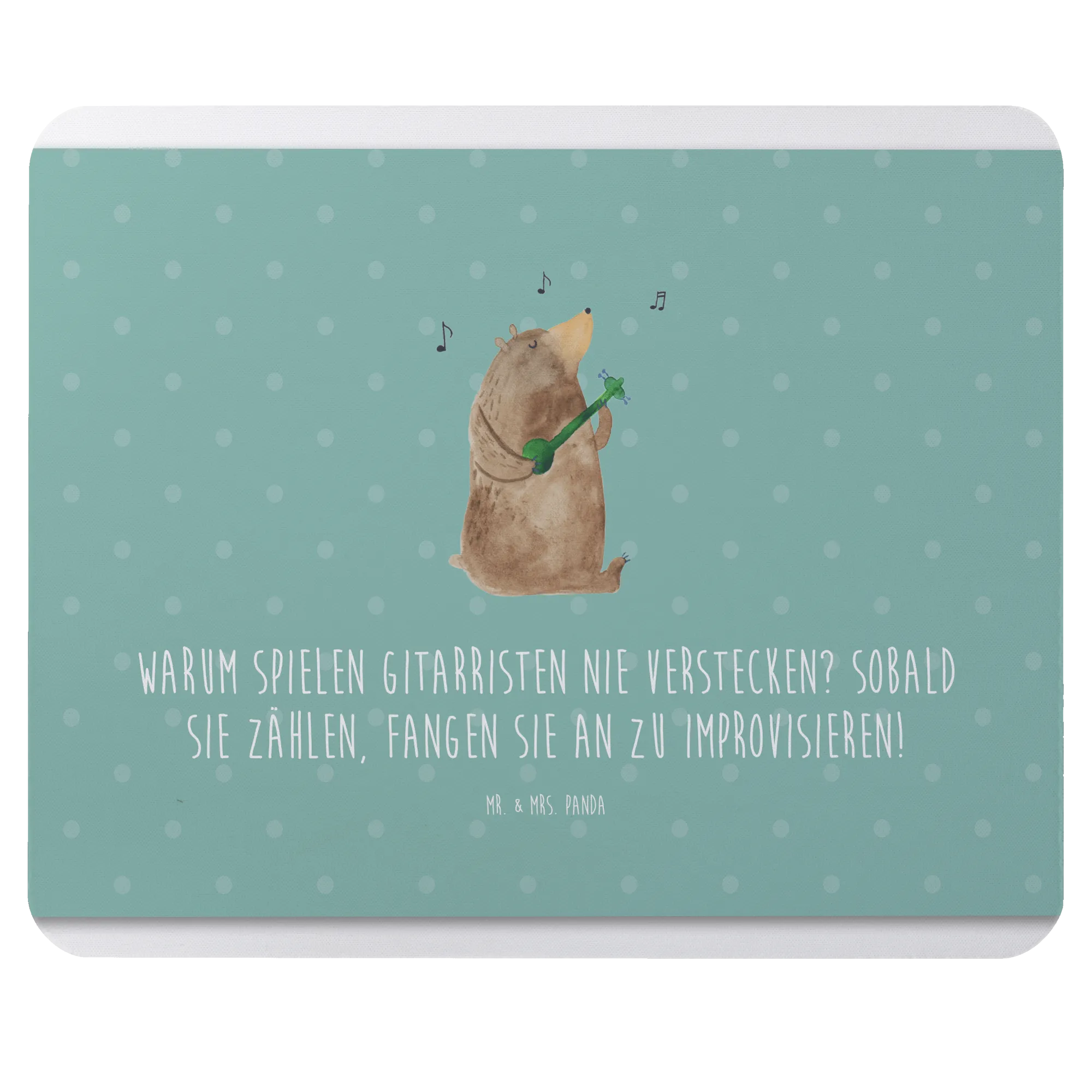 Du bist auf der Suche nach dem perfekten Geschenk für einen Musiker oder Musikliebhaber? Dann ist das Mauspad Gitarre von Mr. & Mrs. Panda genau das Richtige für dich! Dieses einzigartige Mauspad ist nicht nur ein echter Hingucker, sondern auch ein praktisches Accessoire für das Büro oder dein Homeoffice. Bedruckt mit dem bezaubernden Motiv einer Gitarre und dem witzigen Spruch "Warum spielen Gitarristen nie Verstecken? Sobald sie zählen, fangen sie an zu improvisieren!" bringt es ein Stück Leidenschaft und Kreativität direkt an deinen Arbeitsplatz.