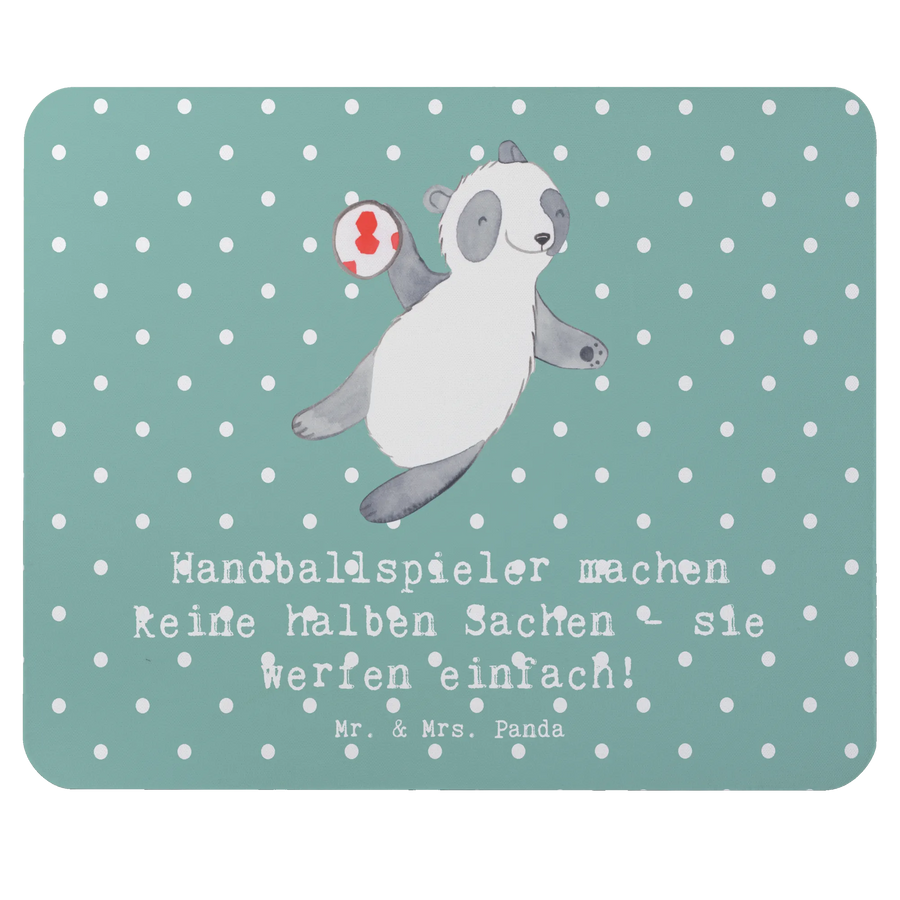 Das wunderschöne Mauspad von Mr. & Mrs. Panda mit dem Motiv "Handballspieler machen keine halben Sachen - sie werfen einfach!" ist das perfekte Geschenk für alle Handball-Liebhaber und Sportbegeisterte!