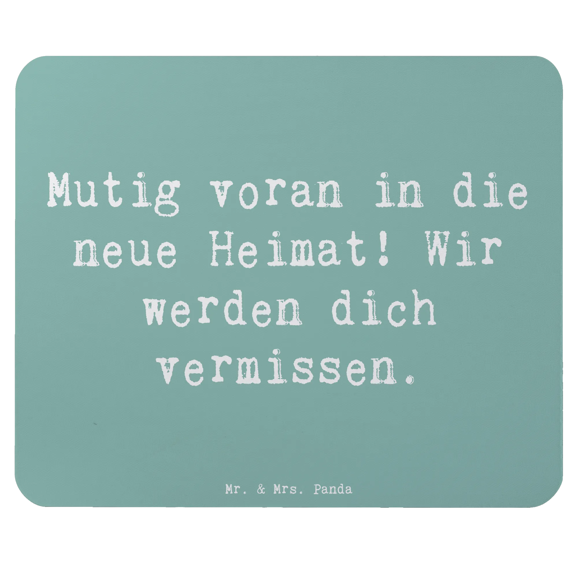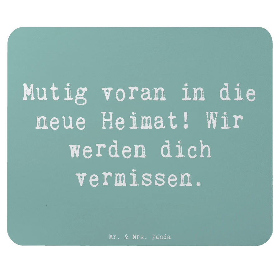 Der Spruch "Mutig voran in die neue Heimat! Wir werden dich vermissen." trägt eine Botschaft voller Zuversicht und Trost – ideal, um einem Freund oder einer Freundin zu zeigen, dass du an sie denkst, während sie ein neues Abenteuer beginnen. Egal, ob es sich um einen Umzug, einen neuen Job oder andere große Veränderungen im Leben handelt, mit diesem Mauspad unterstützt du sie auf ihrem Weg.