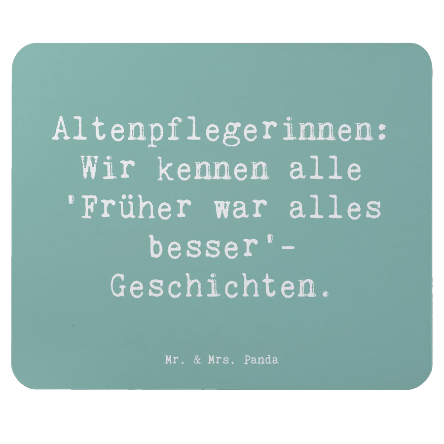 Wenn Du also ein einzigartiges Mauspad, PC-Zubehör oder Büroausstattung suchst, ist das Mauspad von Mr. & Mrs. Panda in der Größe 240 mm x 190 mm x 5 mm mit dem Spruch "Altenpflegerinnen: Wir kennen alle 'Früher war alles besser'-Geschichten" das ideale Accessoire für jeden Arbeitsplatz. Schaffe eine angenehme Arbeitsatmosphäre und verschenke Freude, die bleibt!