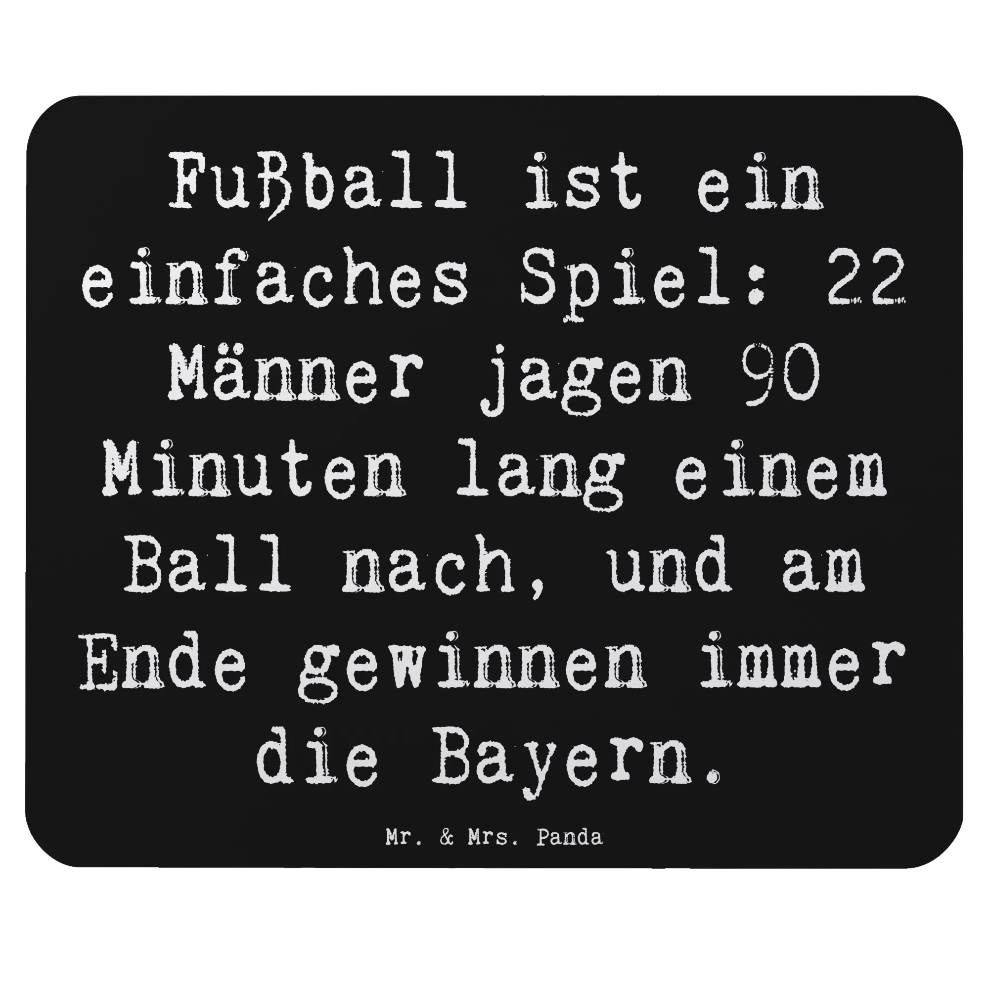 Entdecke das perfekte Mauspad für alle Fußball-Enthusiasten! Das wunderschöne Mauspad von Mr. & Mrs. Panda bringt nicht nur Farbe, sondern auch Humor in dein Homeoffice oder Büro. Mit dem Spruch „Fußball ist ein einfaches Spiel: 22 Männer jagen 90 Minuten lang einem Ball nach, und am Ende gewinnen immer die Bayern“ sorgt es für ein Schmunzeln, während du deine täglichen Aufgaben erledigst.