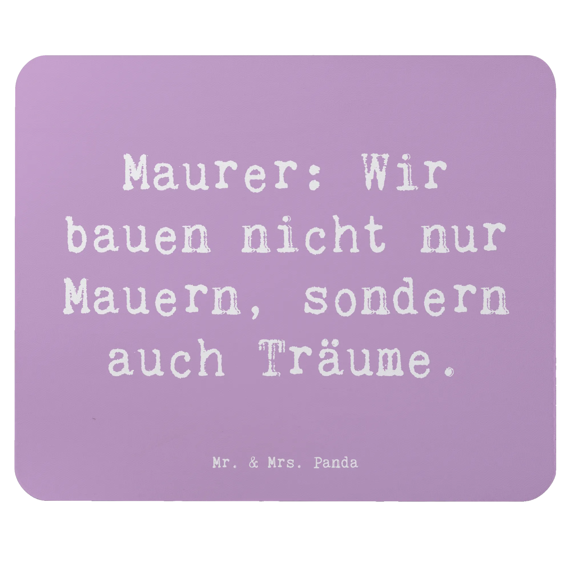 Das Mauspad "Maurer: Wir bauen nicht nur Mauern, sondern auch Träume." aus der einzigartigen Berufe Kollektion von Mr. & Mrs. Panda ist das perfekte Geschenk für kreative Köpfe und echte Handwerker. Wenn Du einen Maurer, einen Bauleiter oder einen Architekten in Deinem Freundes- oder Familienkreis hast, ist dieses Mauspad ein ideales Präsent für jeden Anlass. Ob zum Berufsabschied, zum Geburtstag oder einfach nur, um ein kleines Danke zu sagen – dieses Mauspad macht Eindruck!