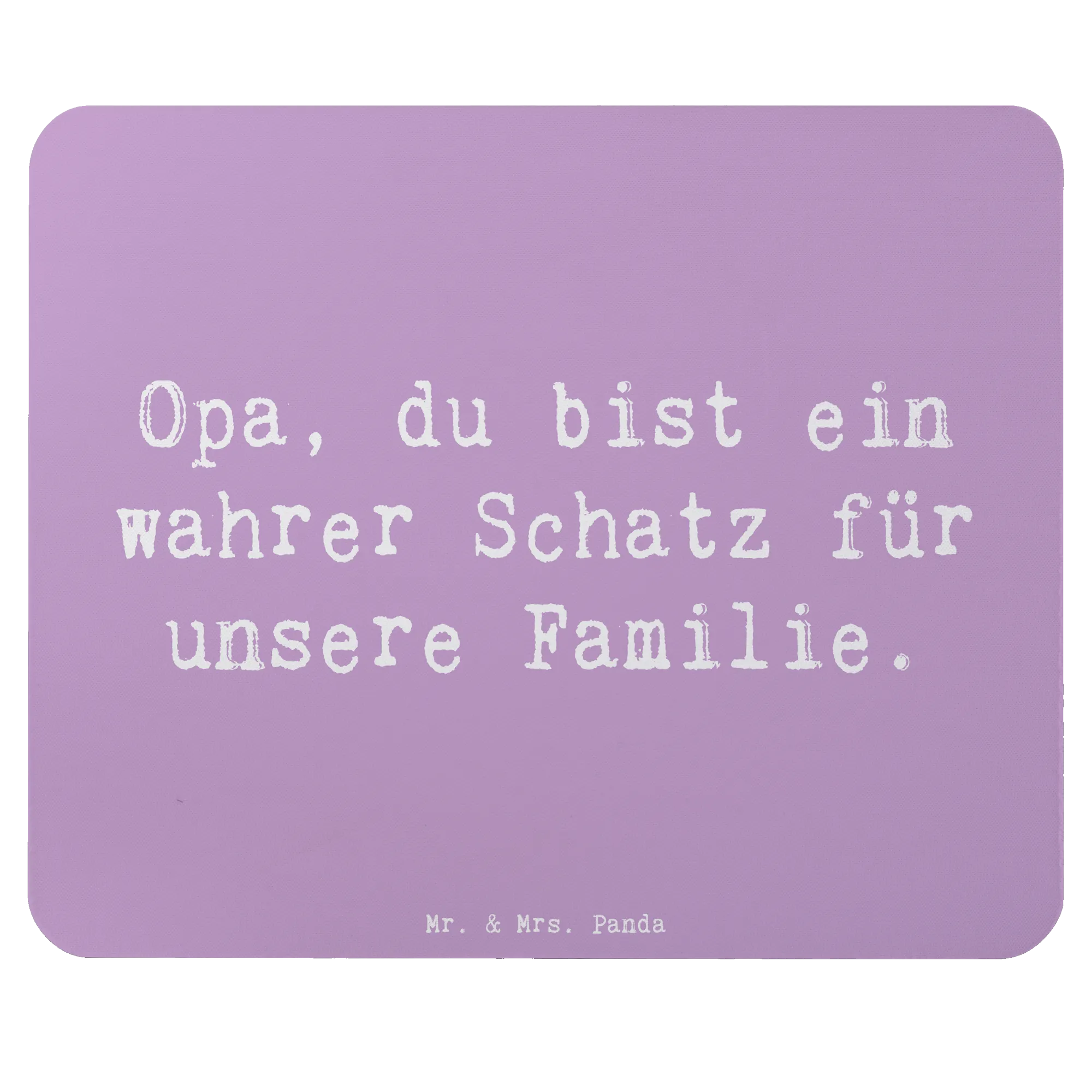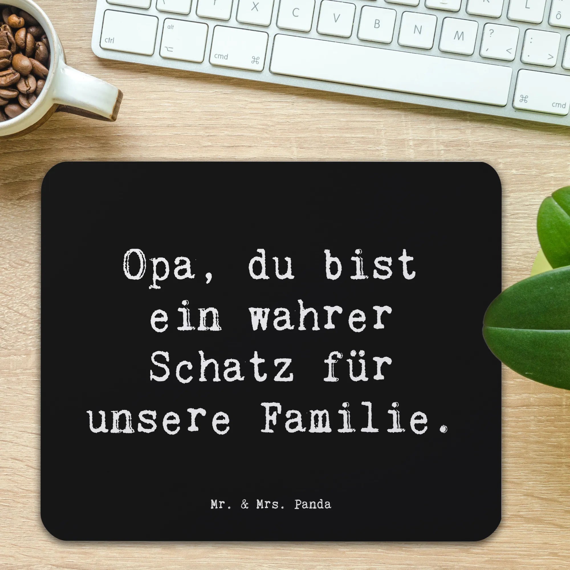 Suchst du das perfekte Geschenk für deinen Opa, um ihm einfach mal "Danke" zu sagen? Dann ist das Mauspad von Mr. & Mrs. Panda genau das Richtige! Mit dem liebevollen Spruch "Opa, du bist ein wahrer Schatz für unsere Familie" zeigt dieses einzigartige Mauspad nicht nur Stil, sondern auch deine Wertschätzung. Es gehört zur besonderen Dankes-Kollektion, die darauf abzielt, Dankbarkeit auf eine unvergessliche Art und Weise zu übermitteln.