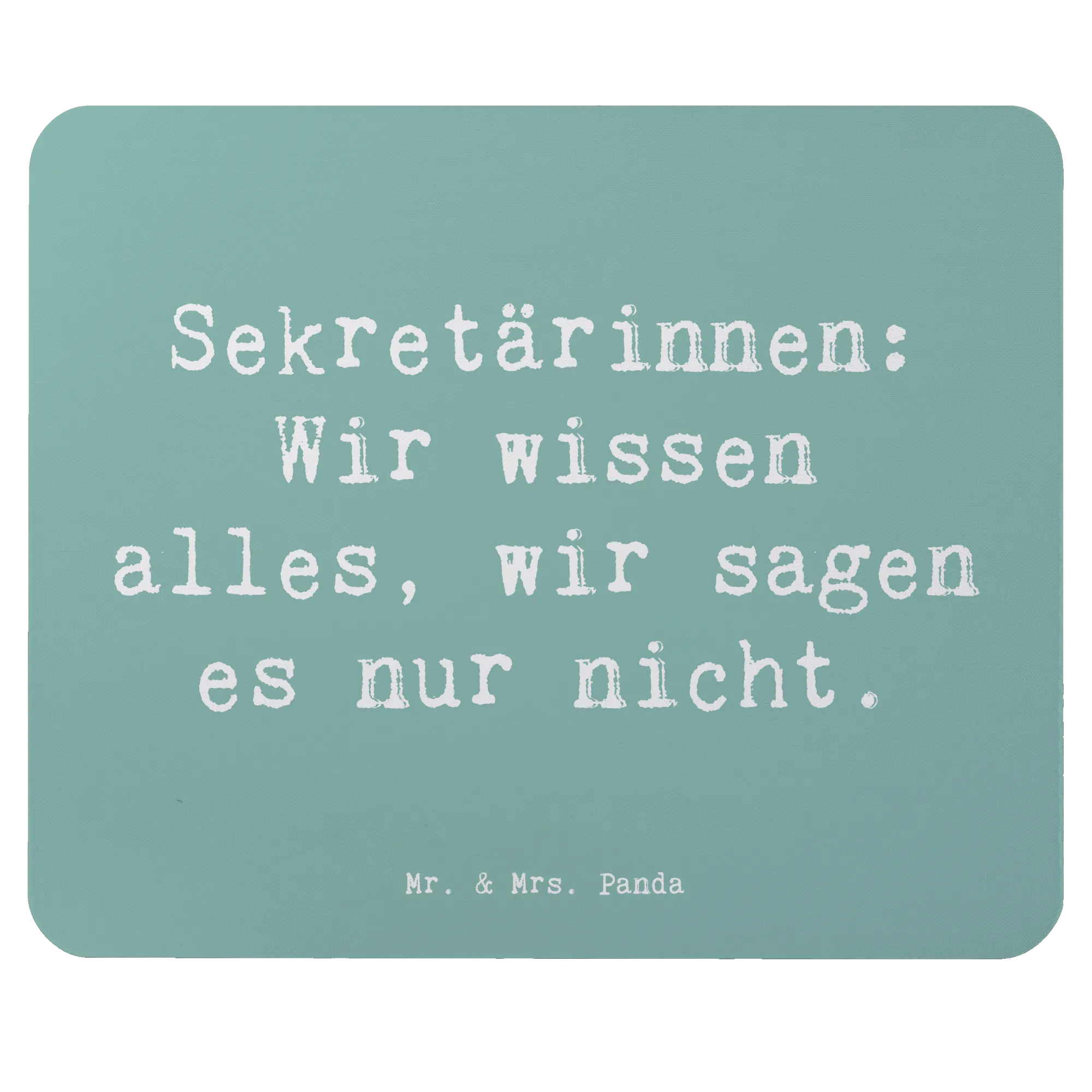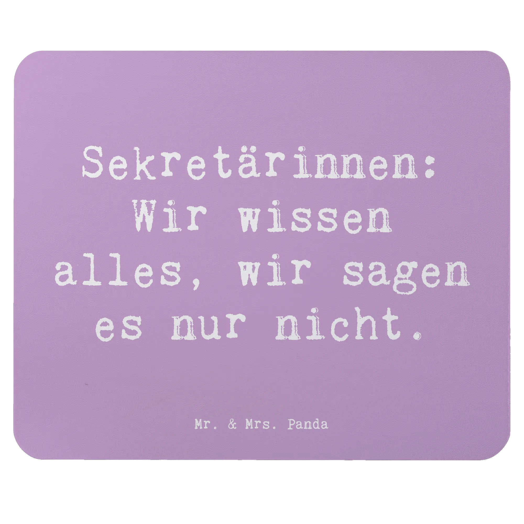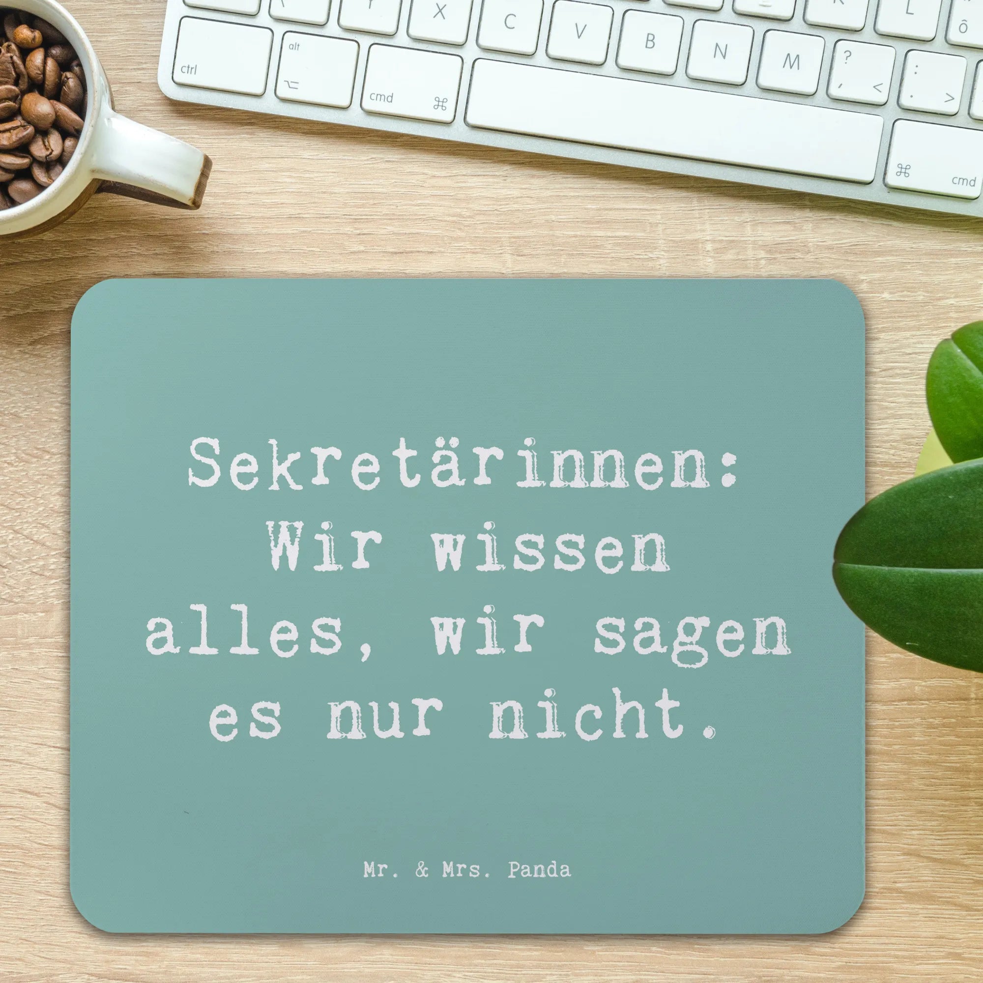 Das Mauspad von Mr. & Mrs. Panda mit dem spritzigen Spruch "Sekretärinnen: Wir wissen alles, wir sagen es nur nicht." ist nicht nur ein praktisches, sondern auch ein stilvolles Accessoire für jeden Arbeitsplatz.