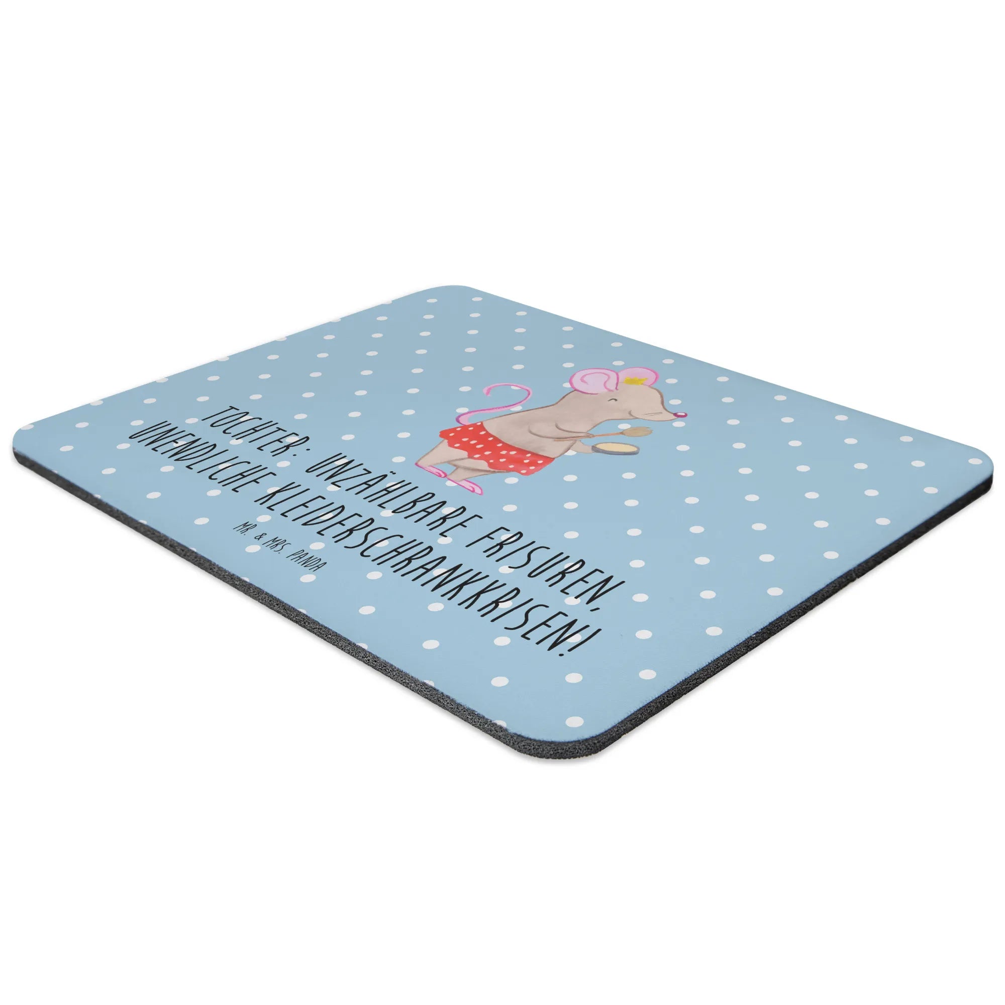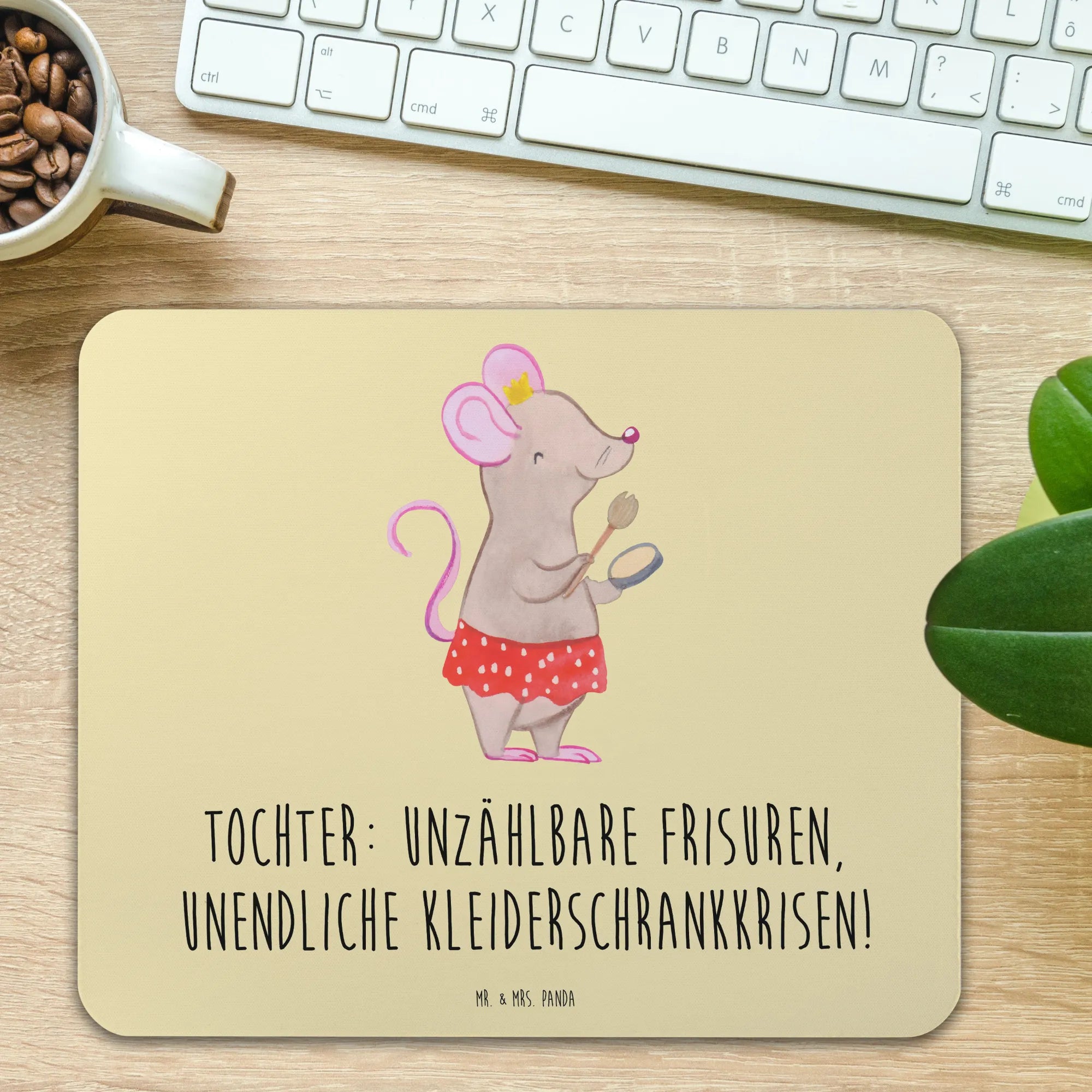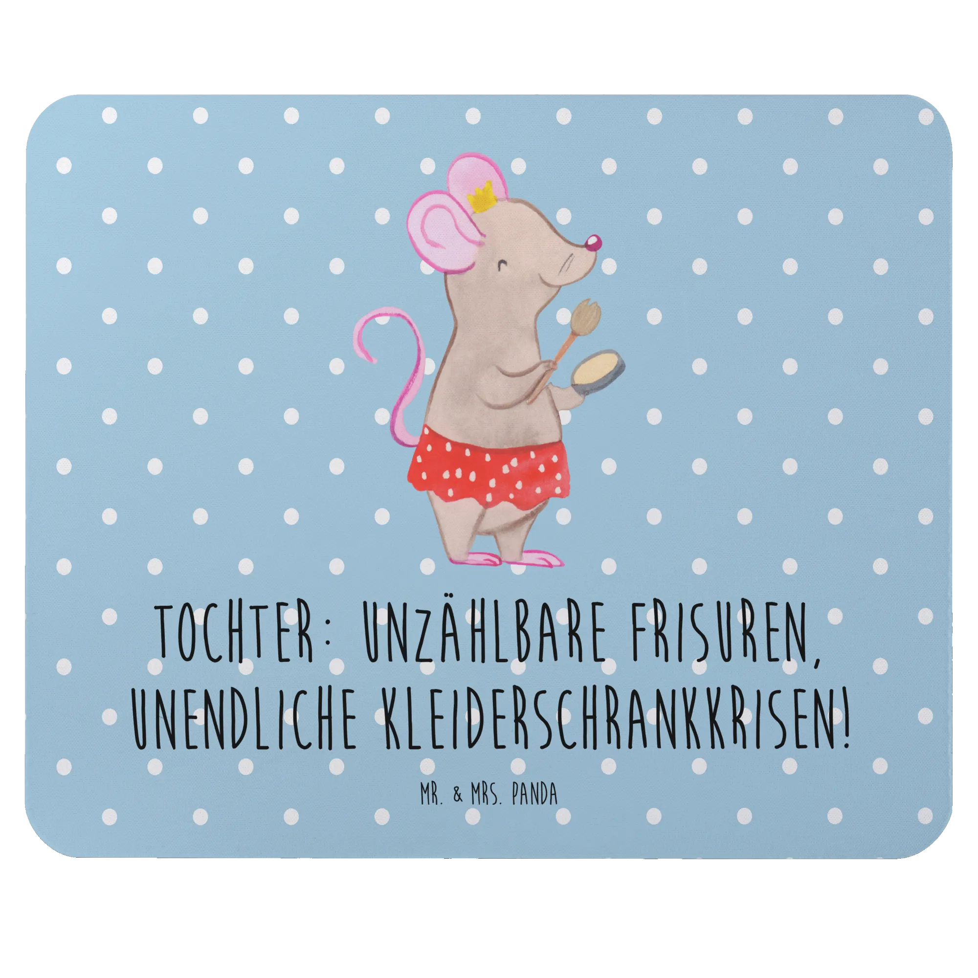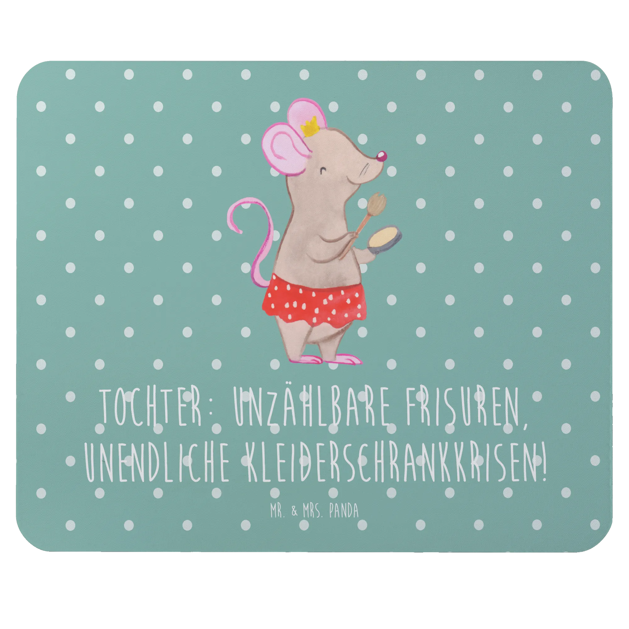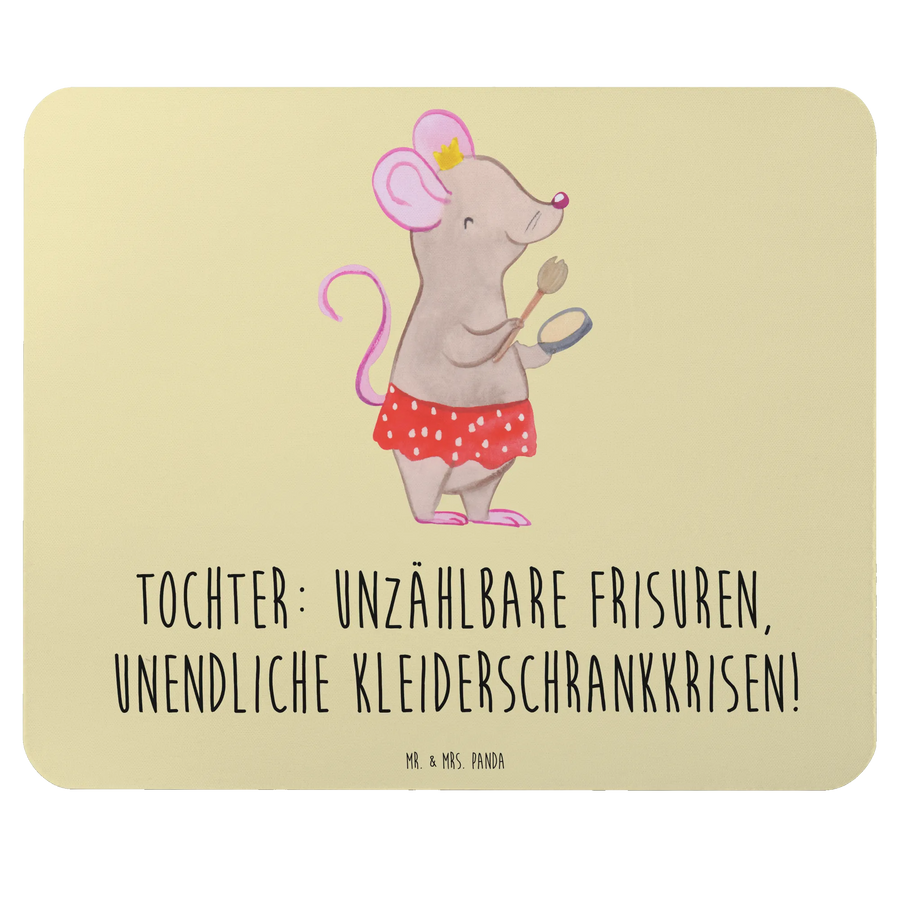 Das wunderschöne Mauspad "Tochter" aus der einzigartigen Kollektion von Mr. & Mrs. Panda ist mehr als nur ein praktisches Computerzubehör – es ist ein ganz besonderes Geschenk für alle, die ihre Töchter lieben. Mit dem charmanten Spruch "Tochter: Unzählbare Frisuren, unendliche Kleiderschrankkrisen!" bringt dieses Mauspad ein Lächeln ins Gesicht der Beschenkten und lässt den Arbeitsalltag im Büro oder Homeoffice gleich viel fröhlicher erscheinen.