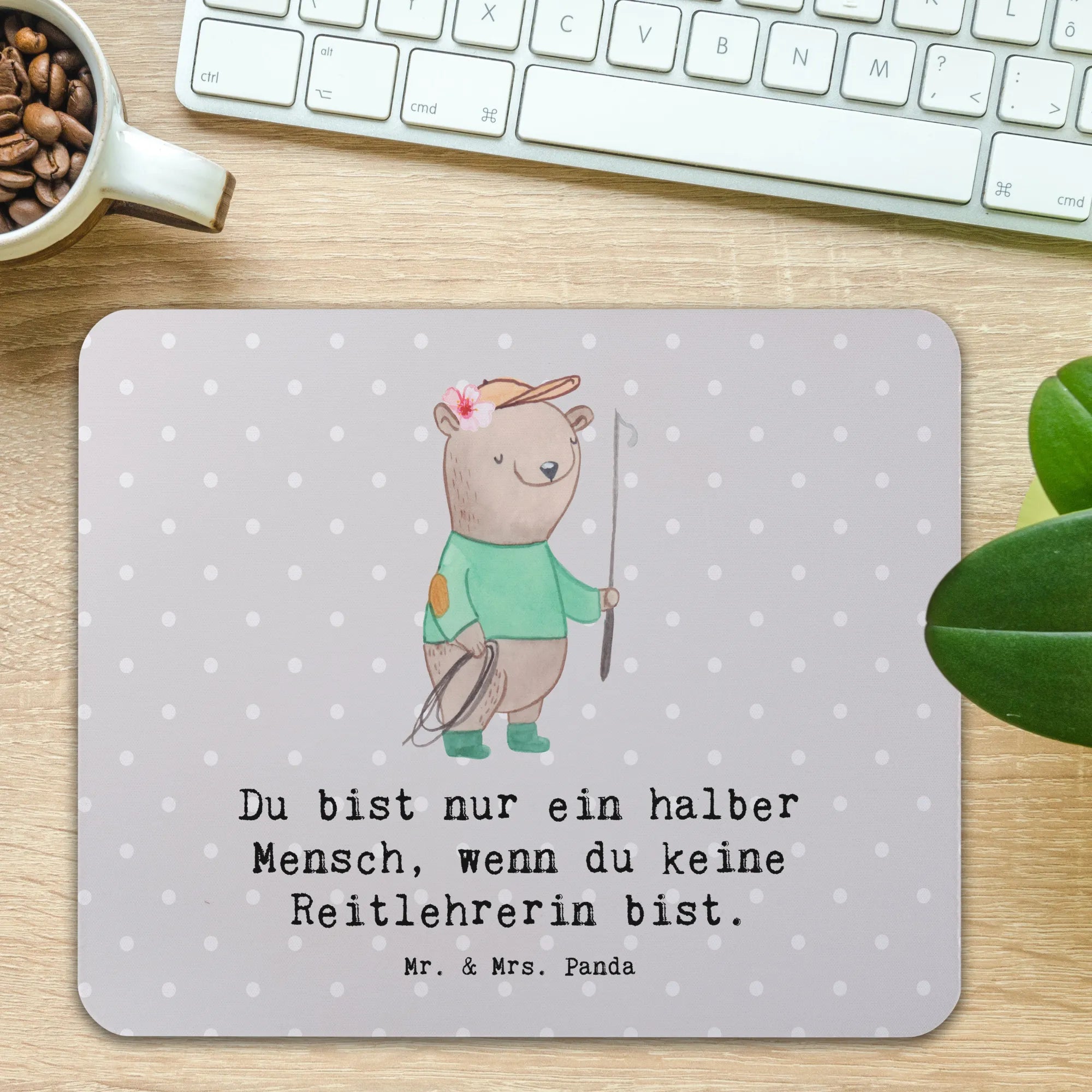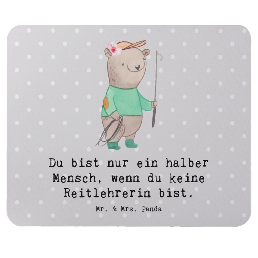 Das Mauspad "Reitlehrerin mit Herz" von Mr. & Mrs. Panda ist das perfekte Geschenk für alle Reitlehrer und Reitlehrerinnen. Ob zum Berufsstart, zur Beförderung, zum Jubiläum oder beim Abschied - dieses süße Mauspad ist für jede Gelegenheit geeignet! Mit einem wundervoll handgezeichneten Motiv einer Reitlehrerin in feinen Reiterklamotten und einem liebevollen Spruch "Du bist nur ein halber Mensch, wenn du keine Reitlehrerin bist." begeistert es nicht nur durch sein Design, sondern auch durch seine Funktionalität.