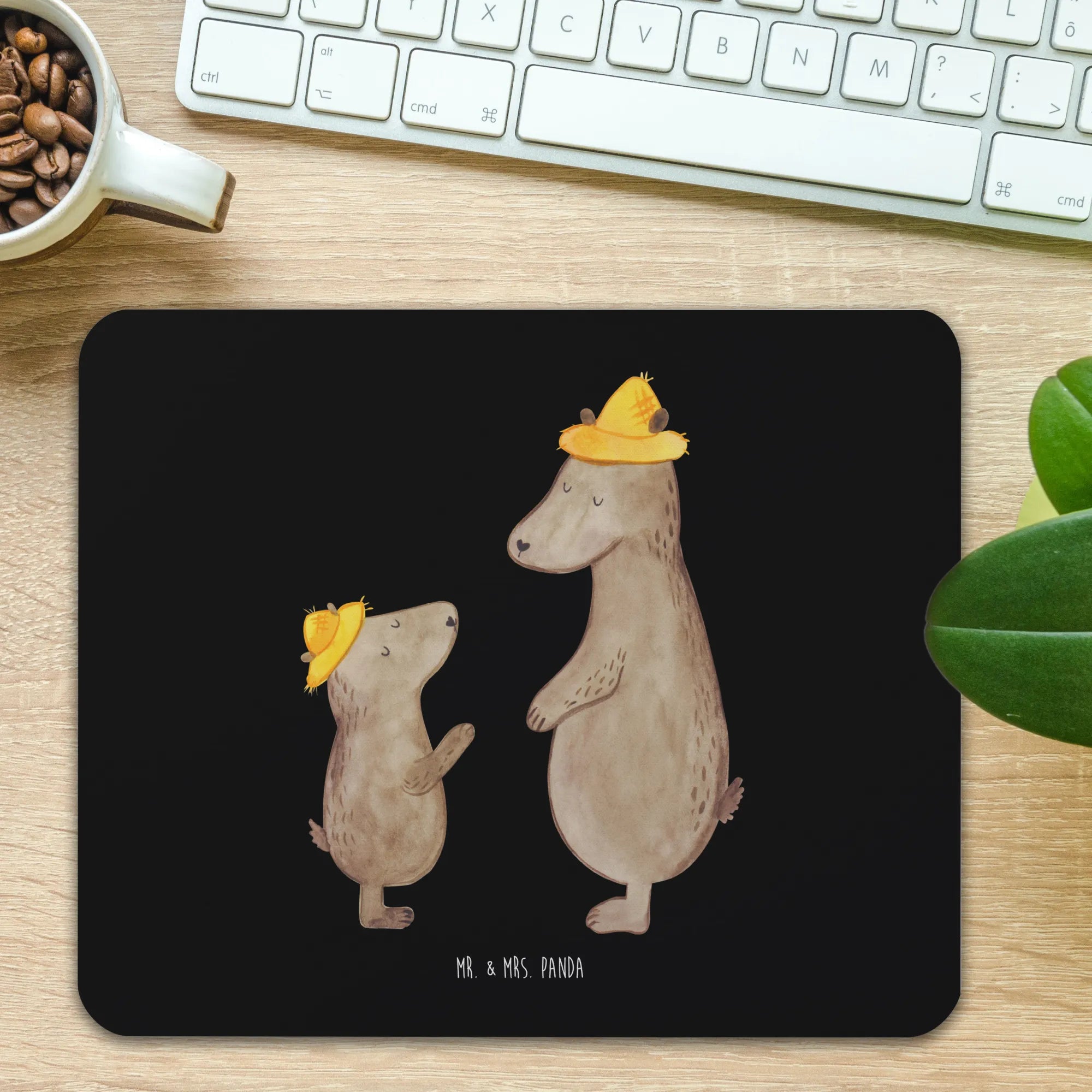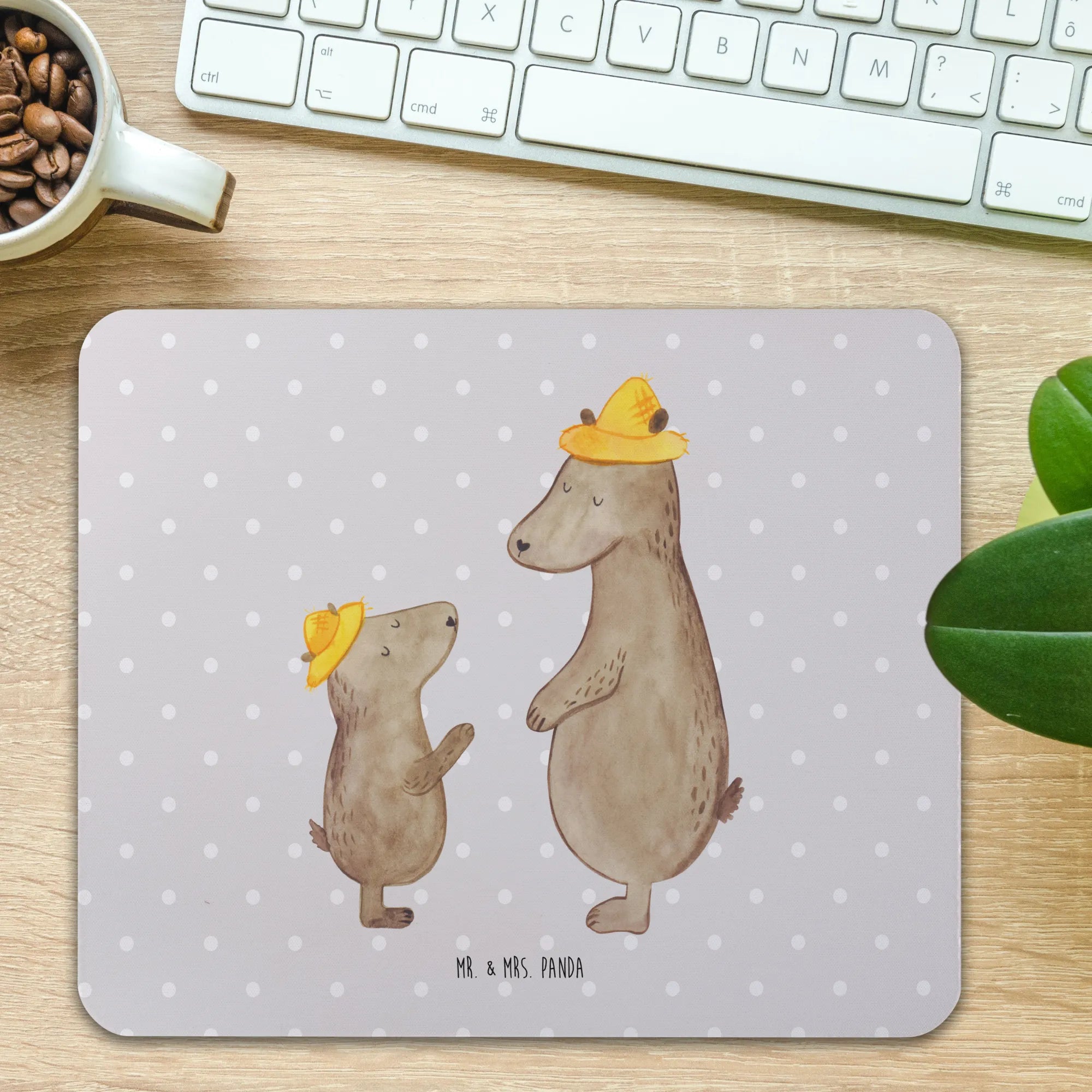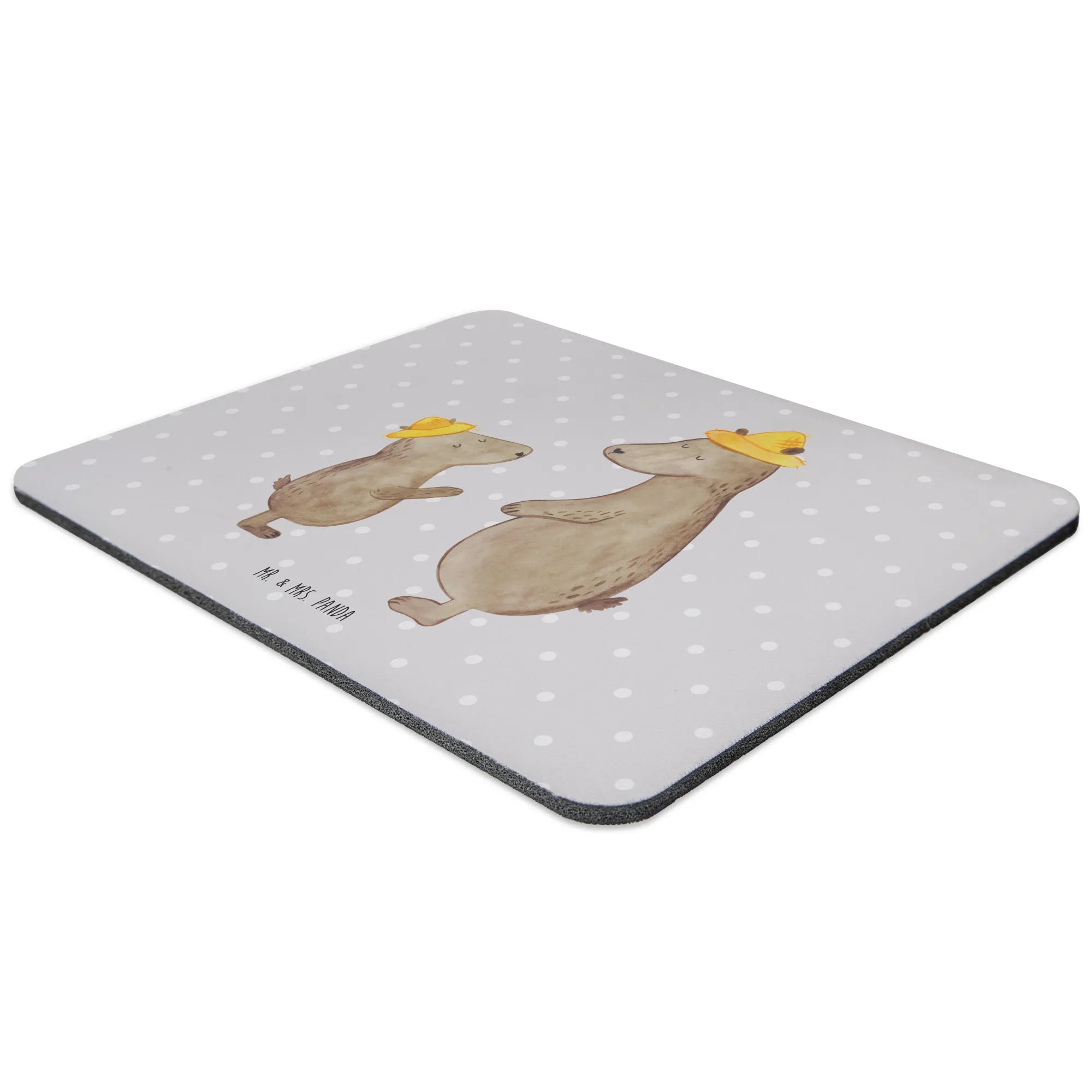 Podkładka pod mysz Niedźwiedzie z kapeluszami - z napisem - Pastelowy czerwony