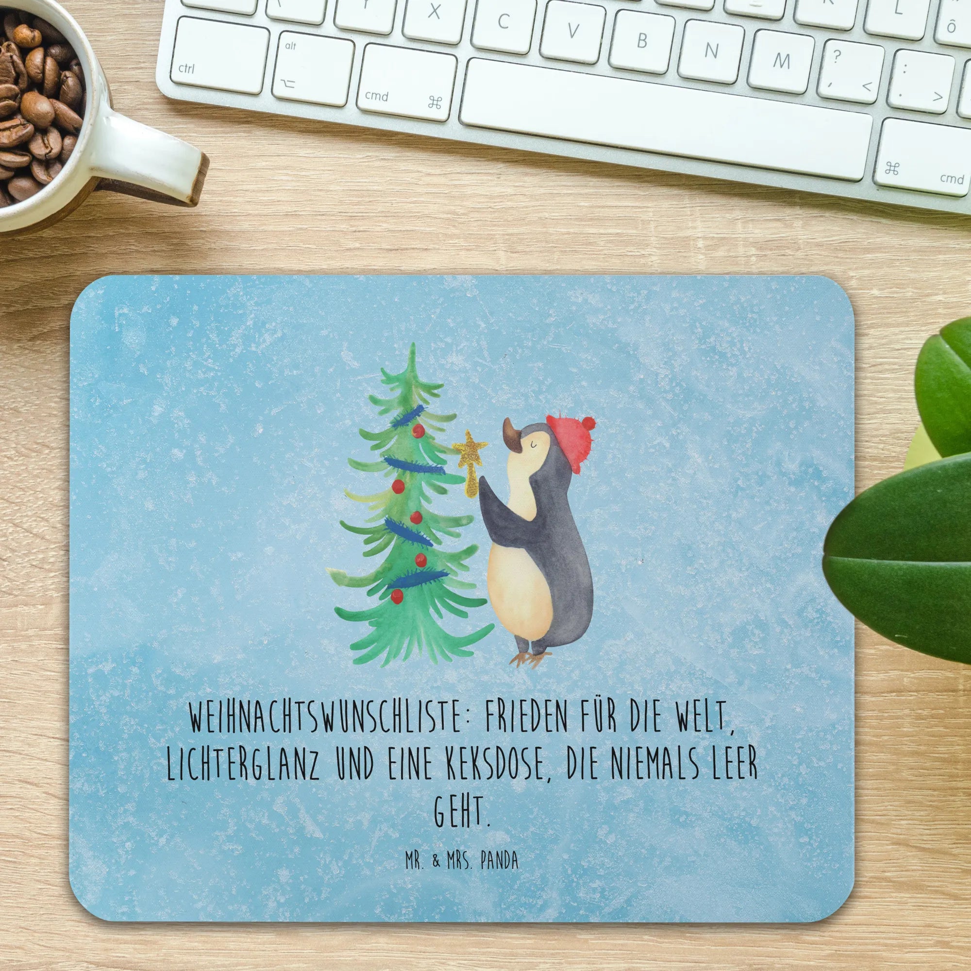Podkładka pod mysz Pingwin choinka - z napisem - lodowoniebieski