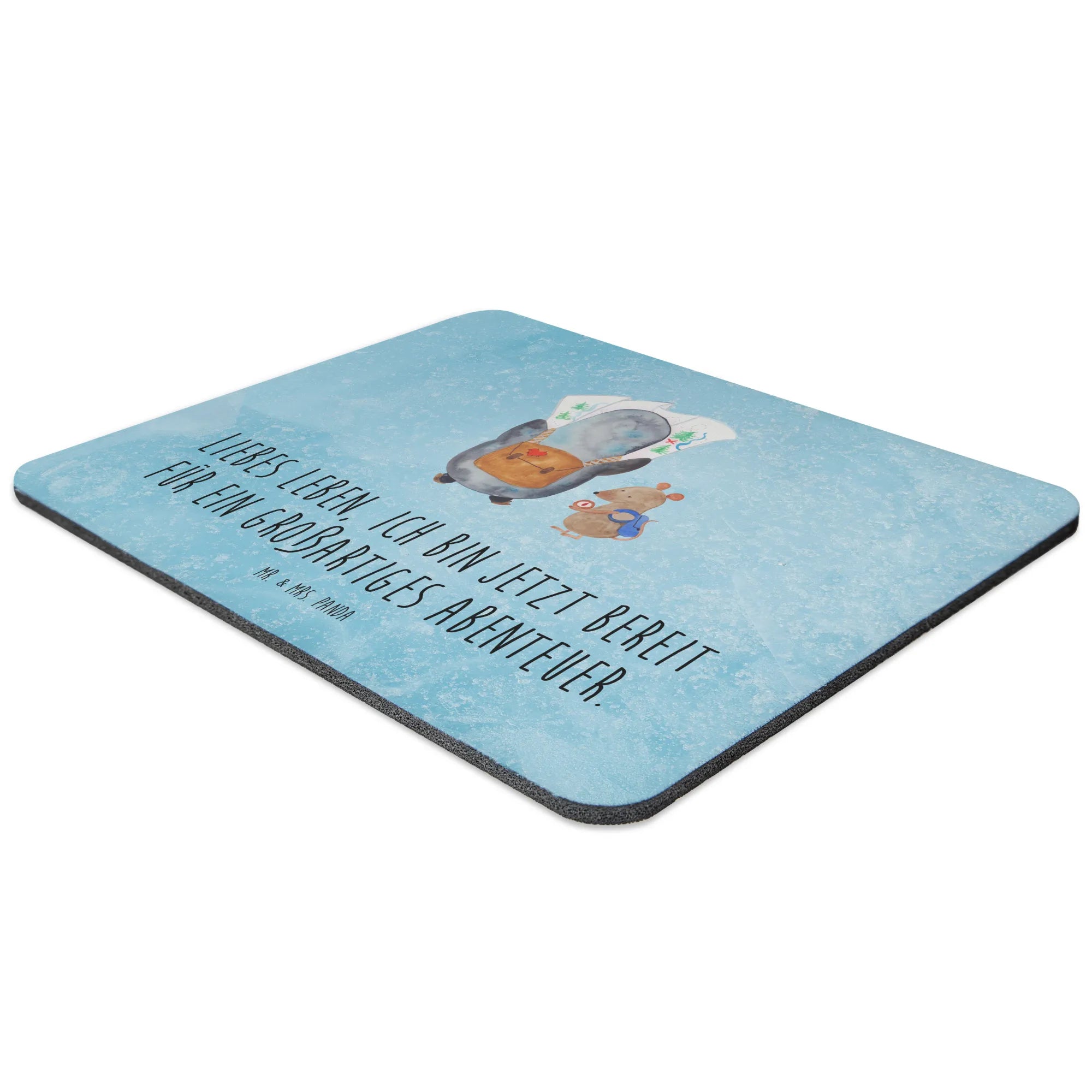 Podkładka pod mysz Pingwin i Mysz Wędrowcy - z napisem - lodowoniebieski