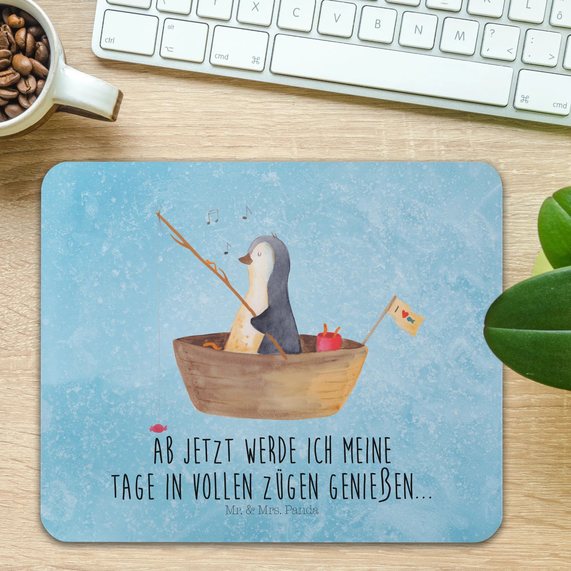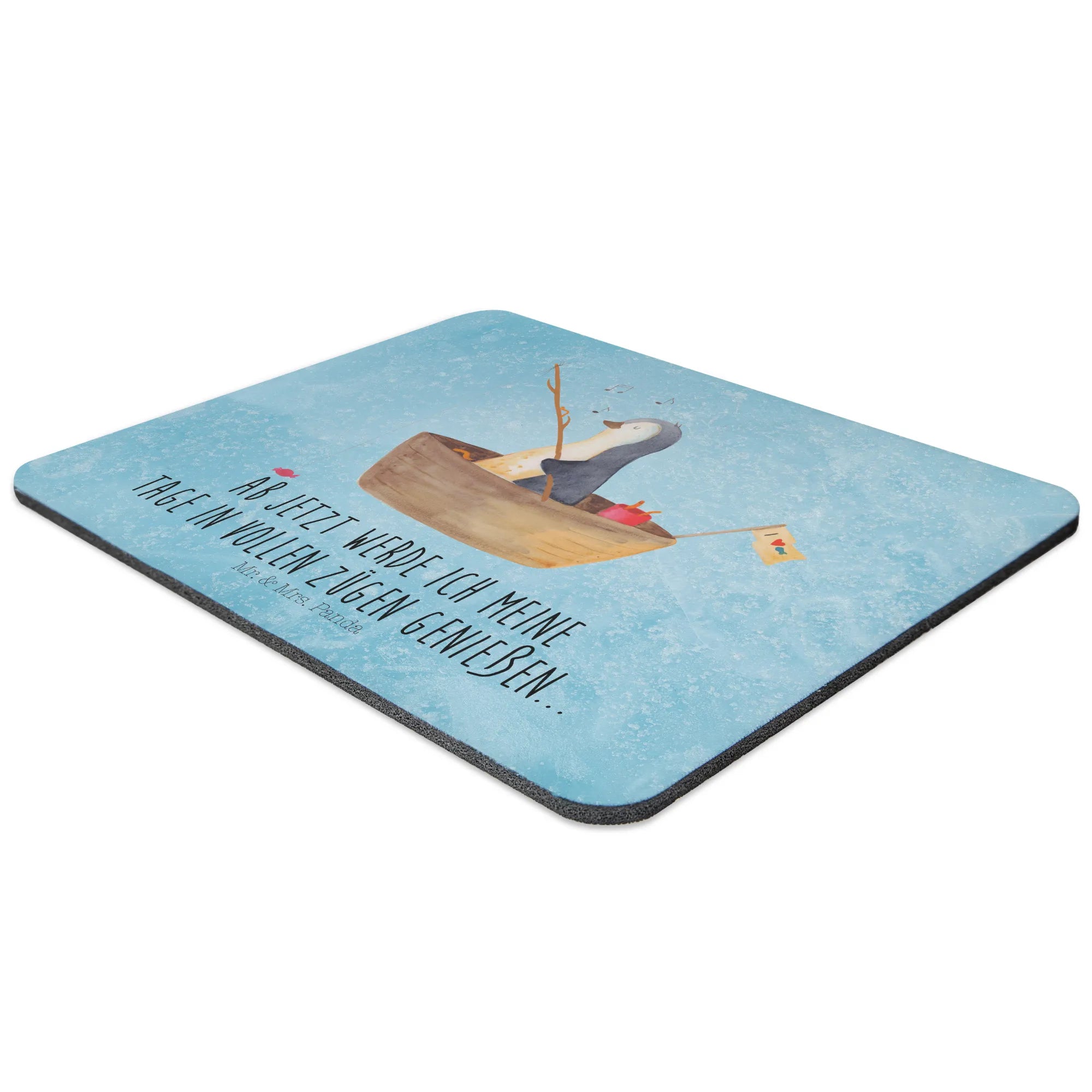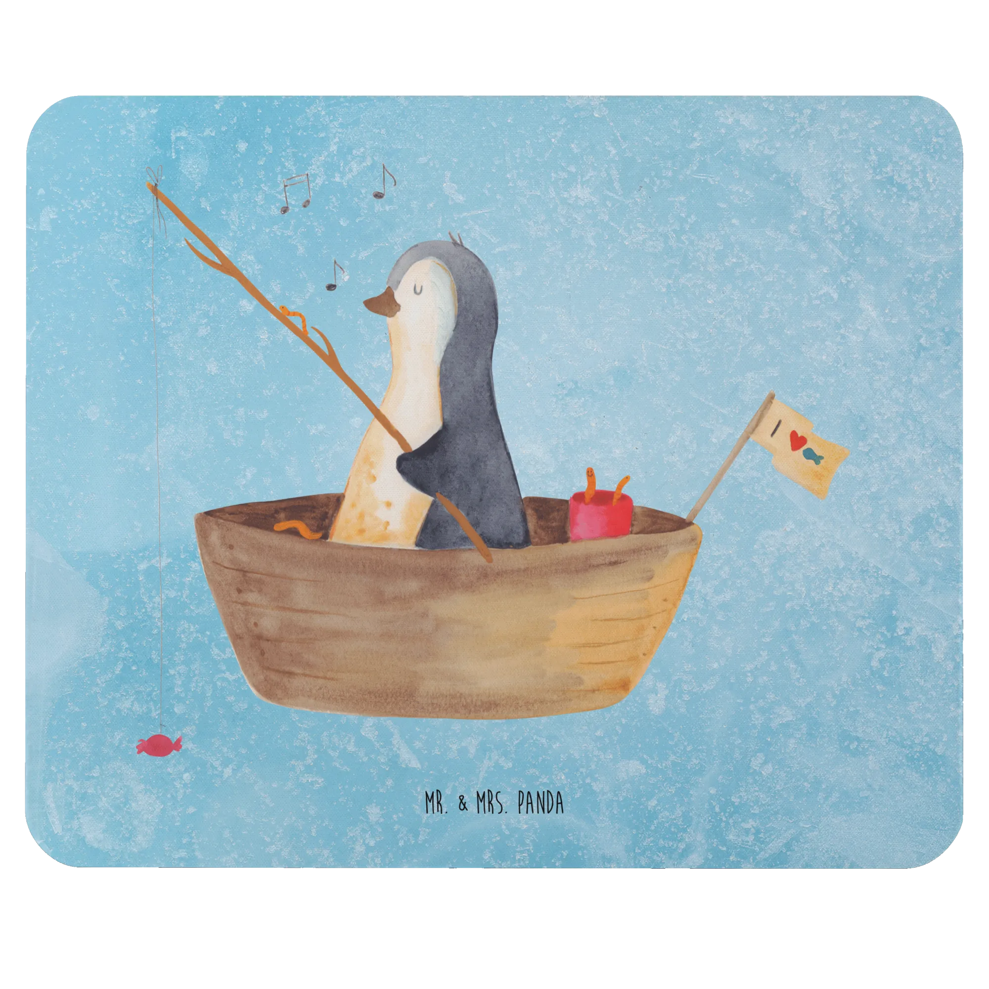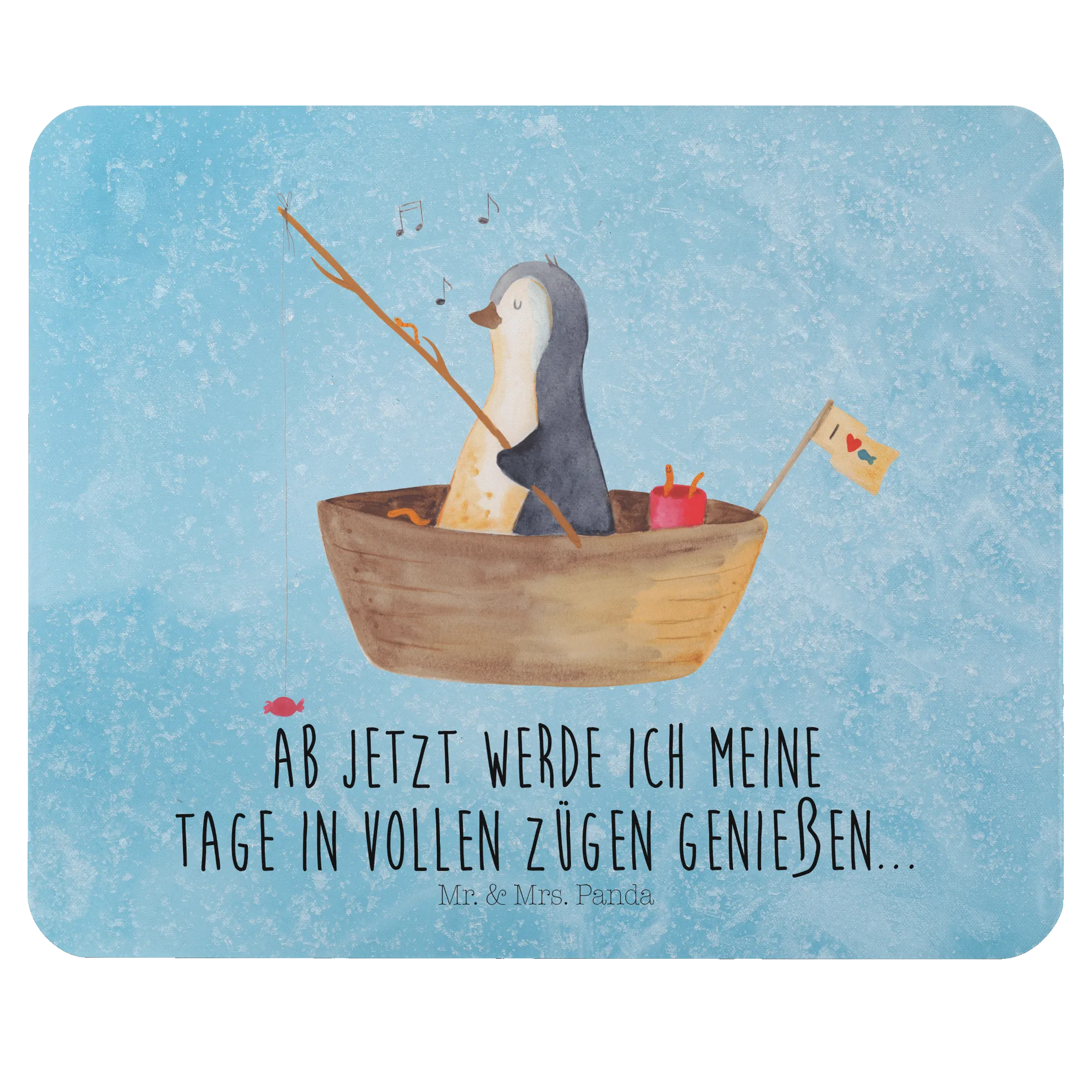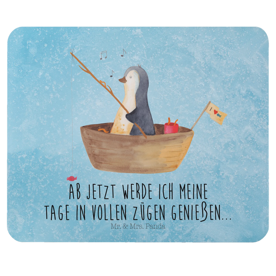 Podkładka pod mysz pingwin łódka wędkarska - z napisem - lodowoniebieski