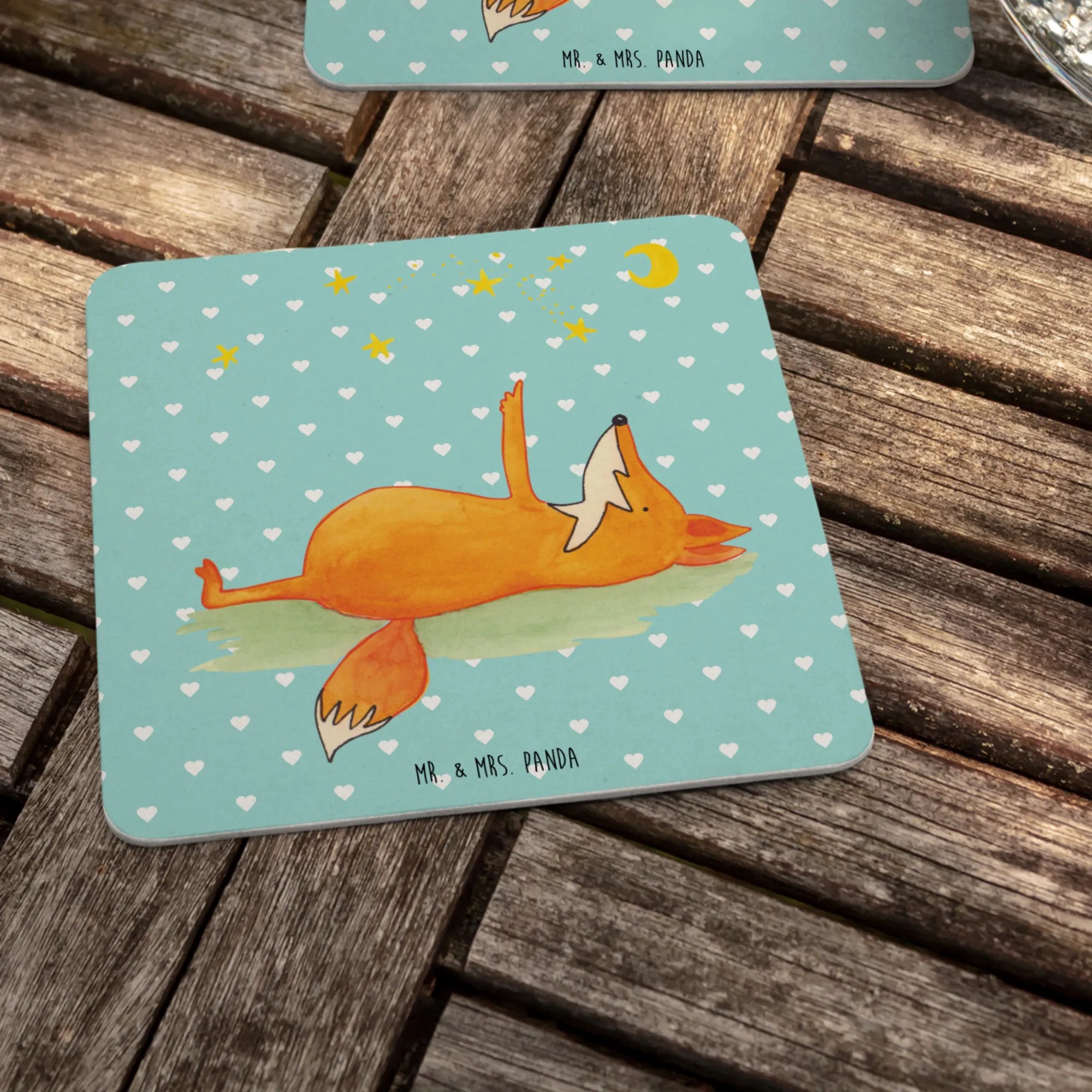 Der Bierdeckel "Fuchs Sterne" von Mr. & Mrs. Panda ist nicht nur ein praktisches Accessoire, sondern auch ein Ausdruck von Stil und Persönlichkeit. Mit einem süßen, auf dem Rücken liegenden Fuchs, der bewundernd in den Sternenhimmel blickt, ist dieser Bierdeckel ein echtes Highlight für jeden Tisch. Ob bei einer fröhlichen Hochzeit, einem gemütlichen Abend mit Freunden oder als Gastgeschenk – dieser Bierdeckel fügt sich mit seinem verspielten Design perfekt in jede Gelegenheit ein.