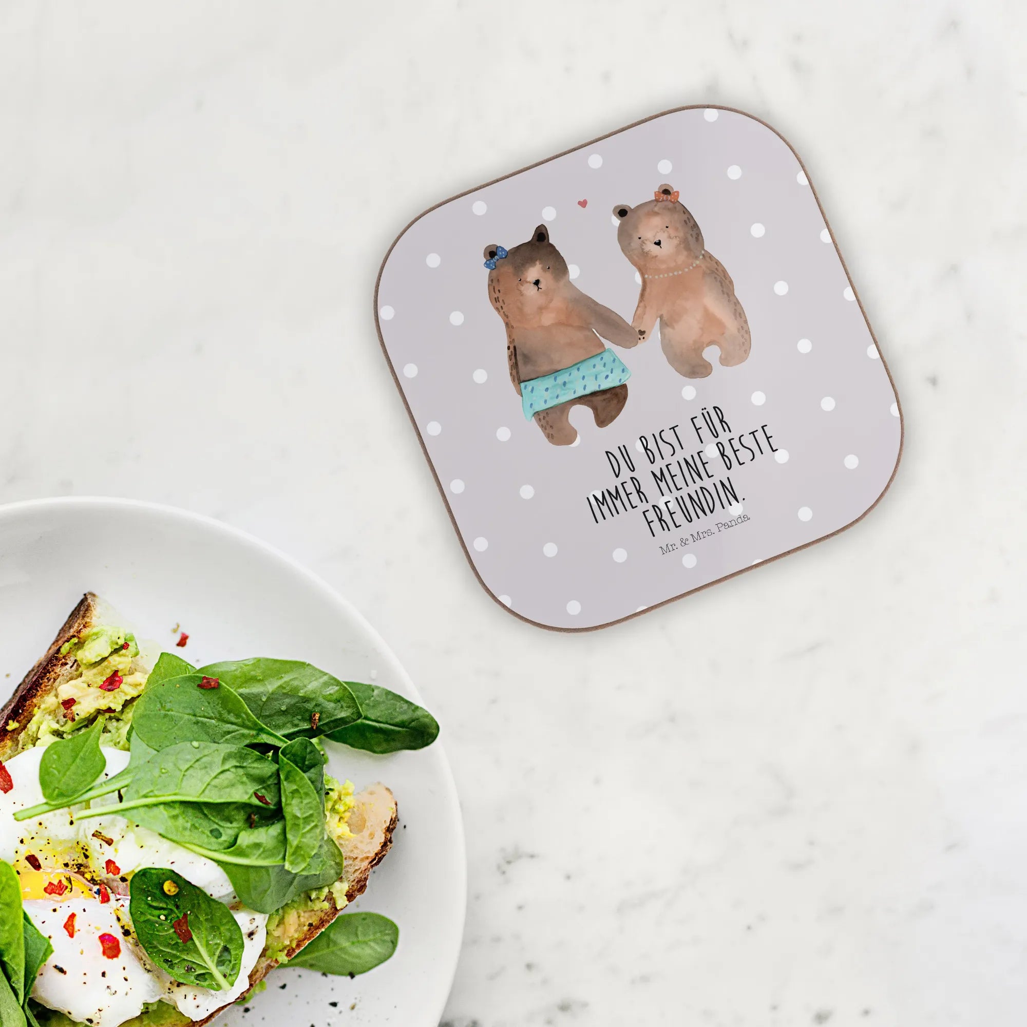 Podkładka Niedźwiedź przyjaciółka - z napisem - Szary Pastel