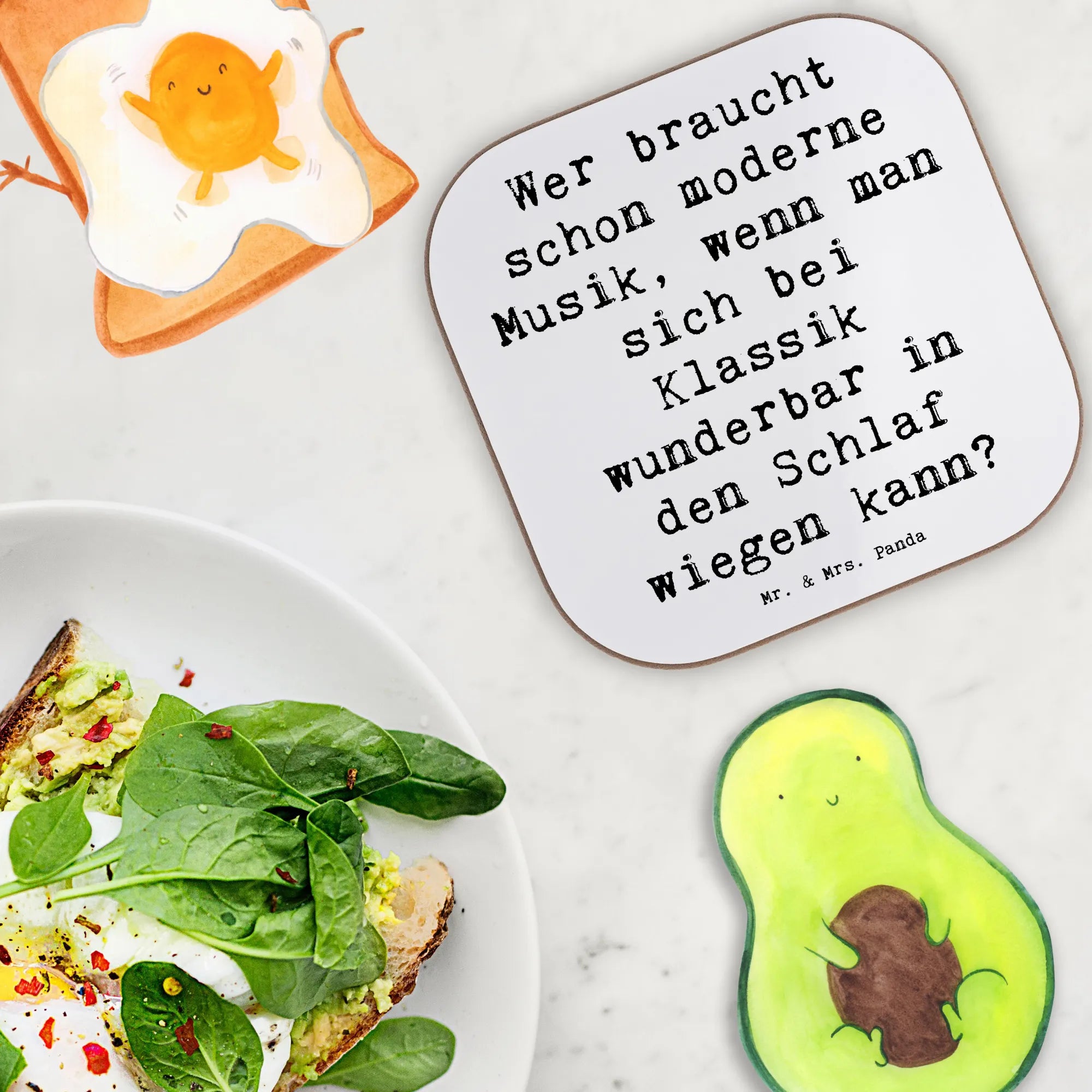 Ein wunderschöner quadratischer Untersetzer von Mr. & Mrs. Panda – perfekt für alle Liebhaber klassischer Musik. Auf dem Untersetzer prangt der liebevoll gestaltete Spruch: „Wer braucht schon moderne Musik, wenn man sich bei Klassik wunderbar in den Schlaf wiegen kann?“. Ein kleines Statement für Orchesterfans, Konzertgänger und alle, die Symphonien, Opern und Kammermusik schätzen.
