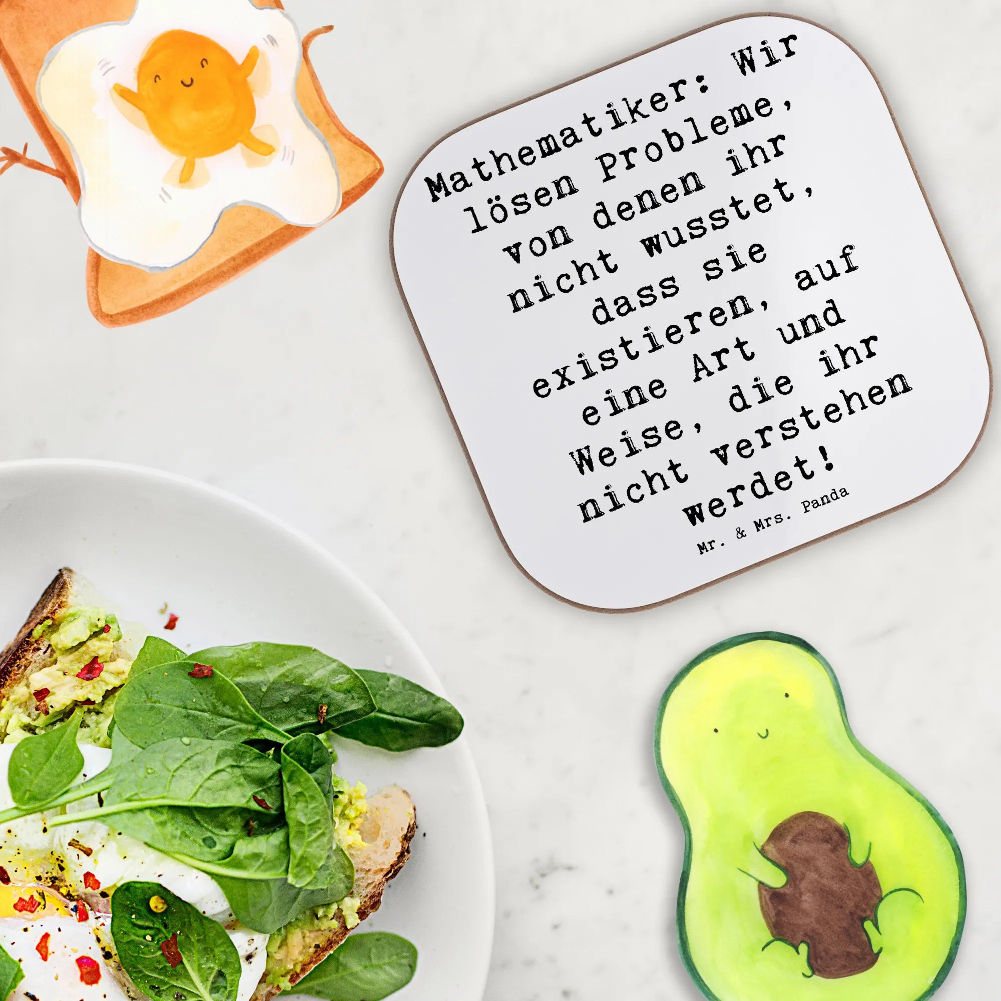 Mr. & Mrs. Panda Untersetzer „Mathematiker“ – das perfekte Geschenk für alle, die Zahlen, Logik und guten Humor lieben. Der quadratische Untersetzer trägt den witzigen Spruch „Mathematiker: Wir lösen Probleme, von denen ihr nicht wusstet, dass sie existieren, auf eine Art und Weise, die ihr nicht verstehen werdet!“, liebevoll von Mrs. Panda handgezeichnet und in frischem Meeresbrise-Farbton gestaltet. 🌊