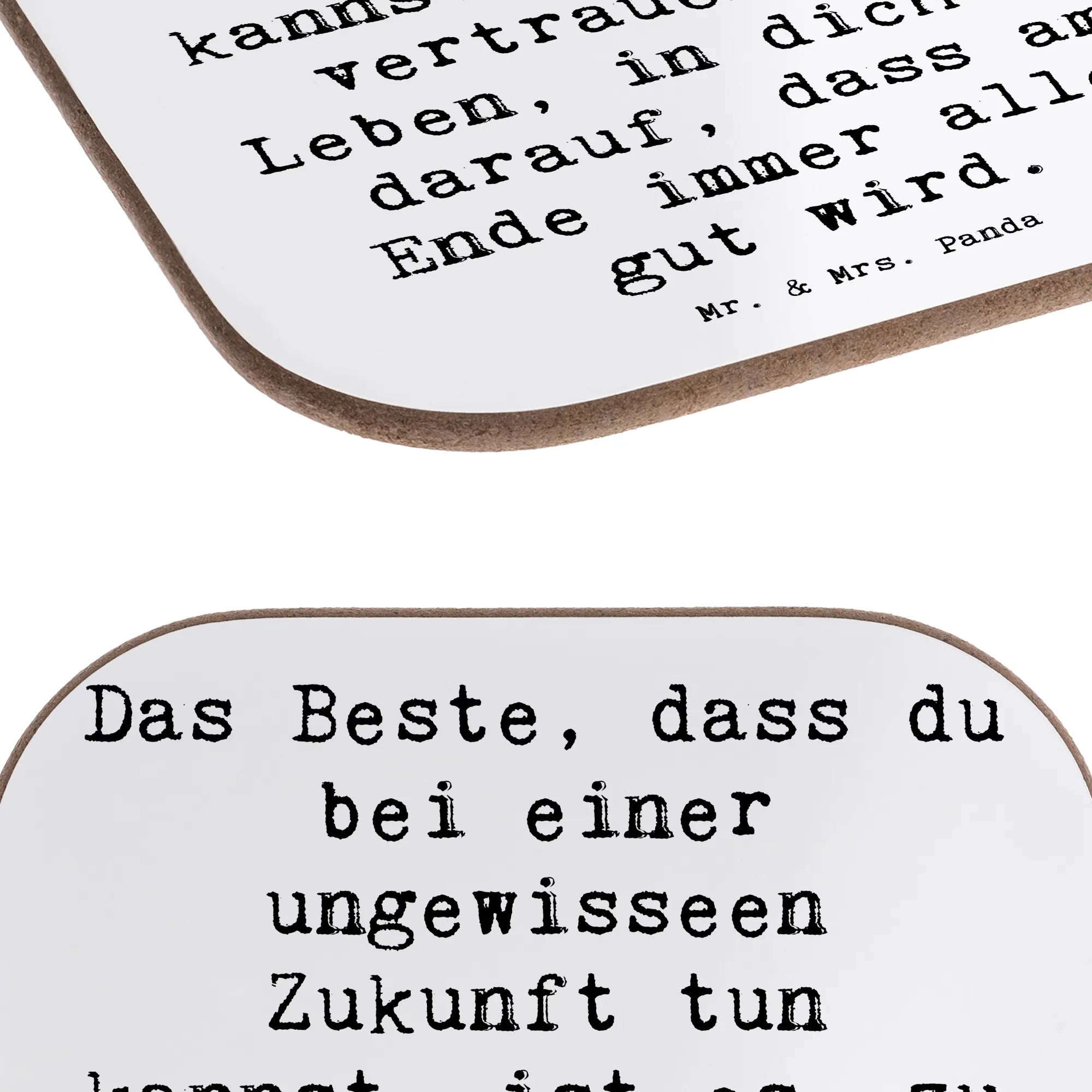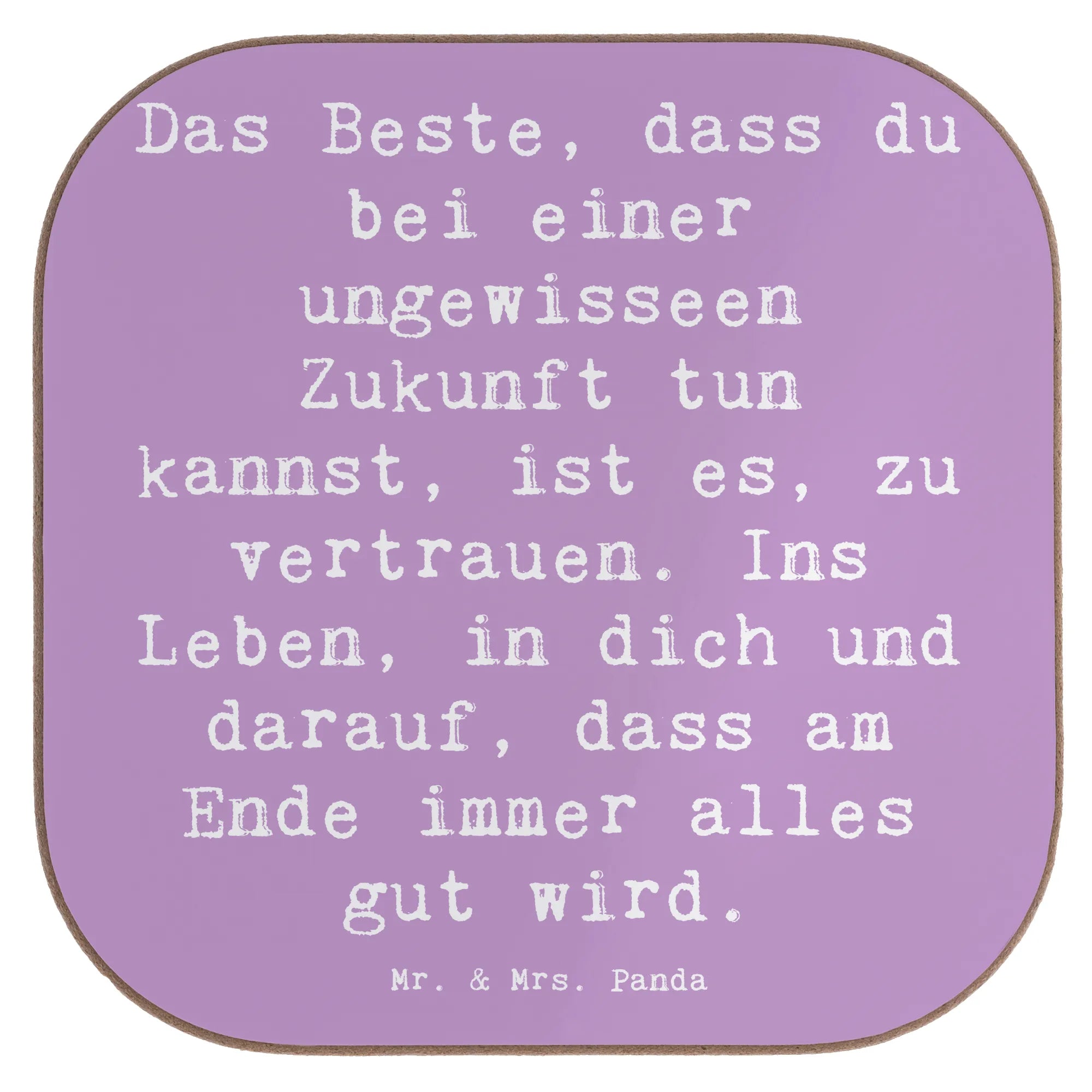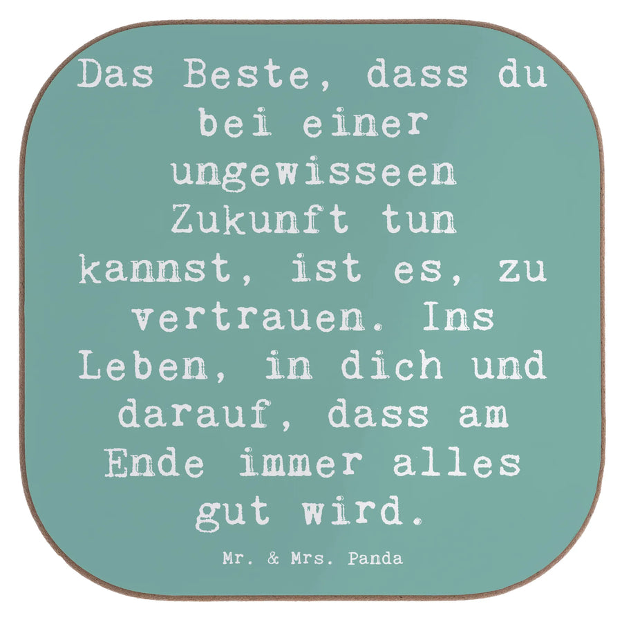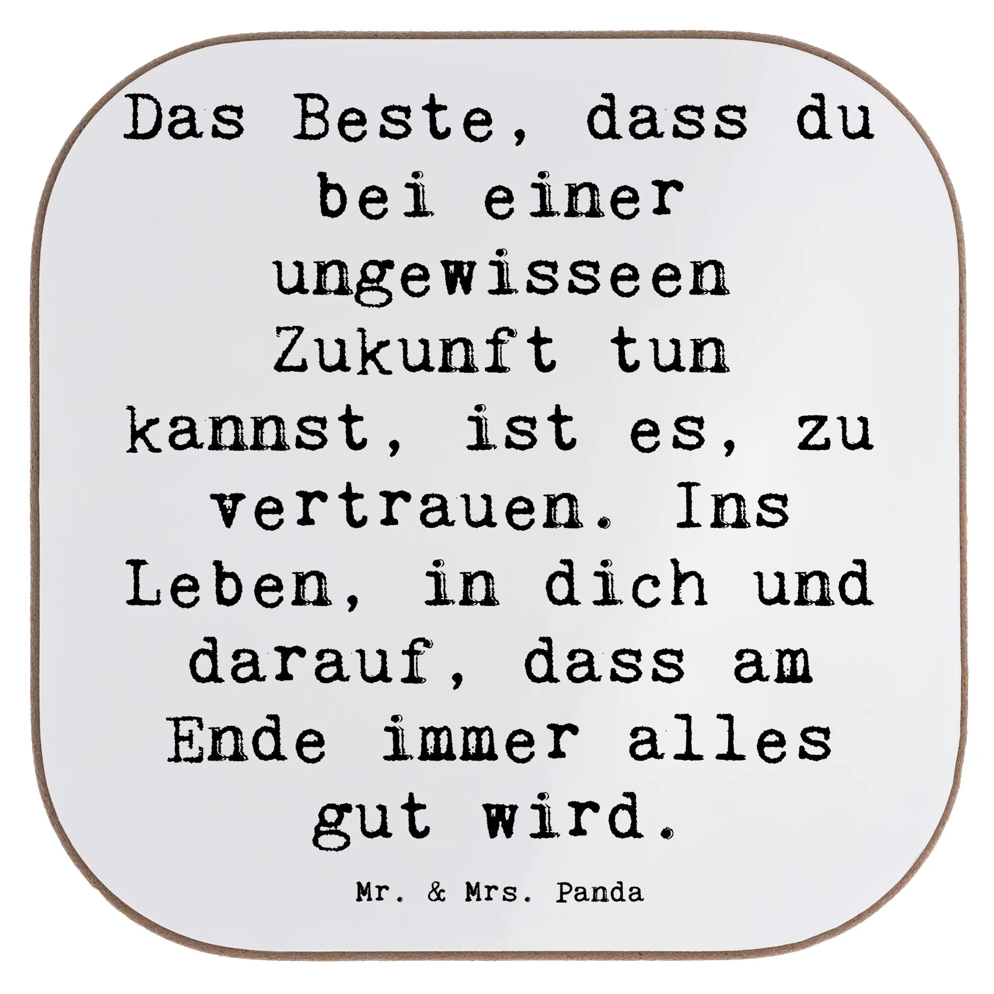 Dieser quadratische Untersetzer aus der Mutmacher-Kollektion vereint Schutz für deinen Tisch mit einer liebevollen Botschaft: „Das Beste, dass du bei einer ungewisseen Zukunft tun kannst, ist es, zu vertrauen. Ins Leben, in dich und darauf, dass am Ende immer alles gut wird.“ Ein Satz, der Zuversicht schenkt und genau das richtige Geschenk für Menschen ist, die vor Neuanfängen oder neuen Herausforderungen stehen.