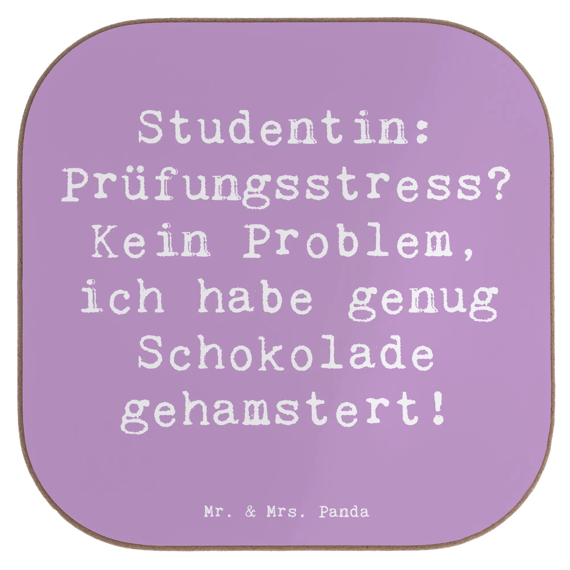 Untersetzer Spruch Studentin: Prüfungsstress? Kein Problem, ich habe genug Schokolade gehamstert! - Lavendeltraum