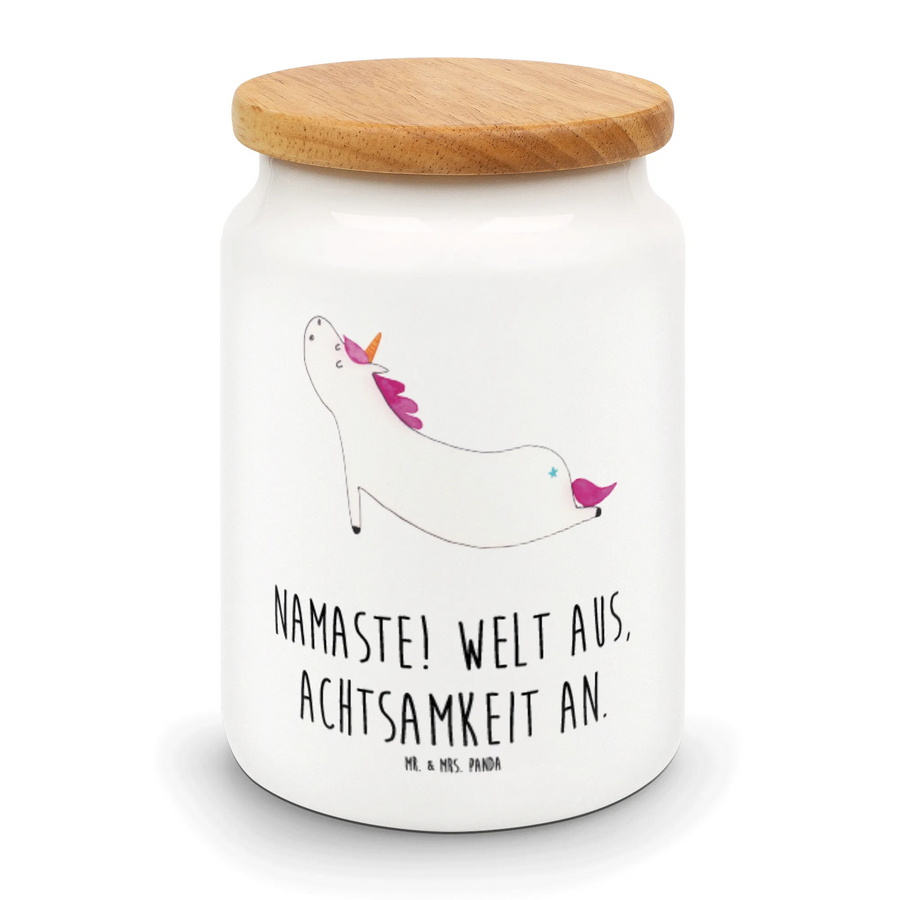 Du liebst Einhörner und die zauberhafte Welt, die sie umgibt? Dann ist die liebevoll bedruckte Vorratsdose 'Einhorn Yoga' von Mr. & Mrs. Panda genau das richtige Geschenk für dich oder deine Freunde!