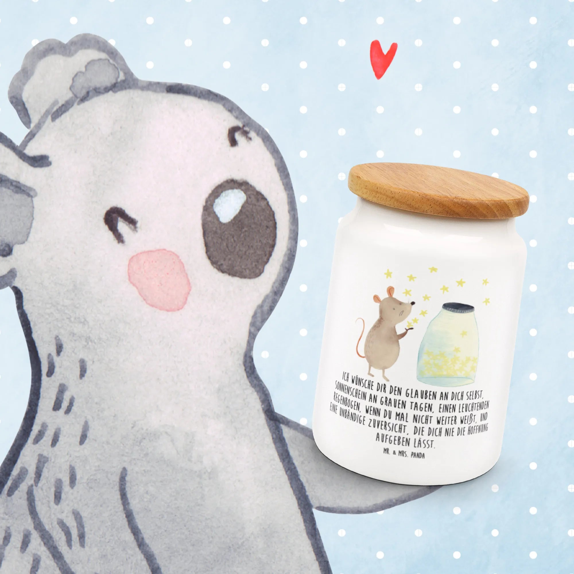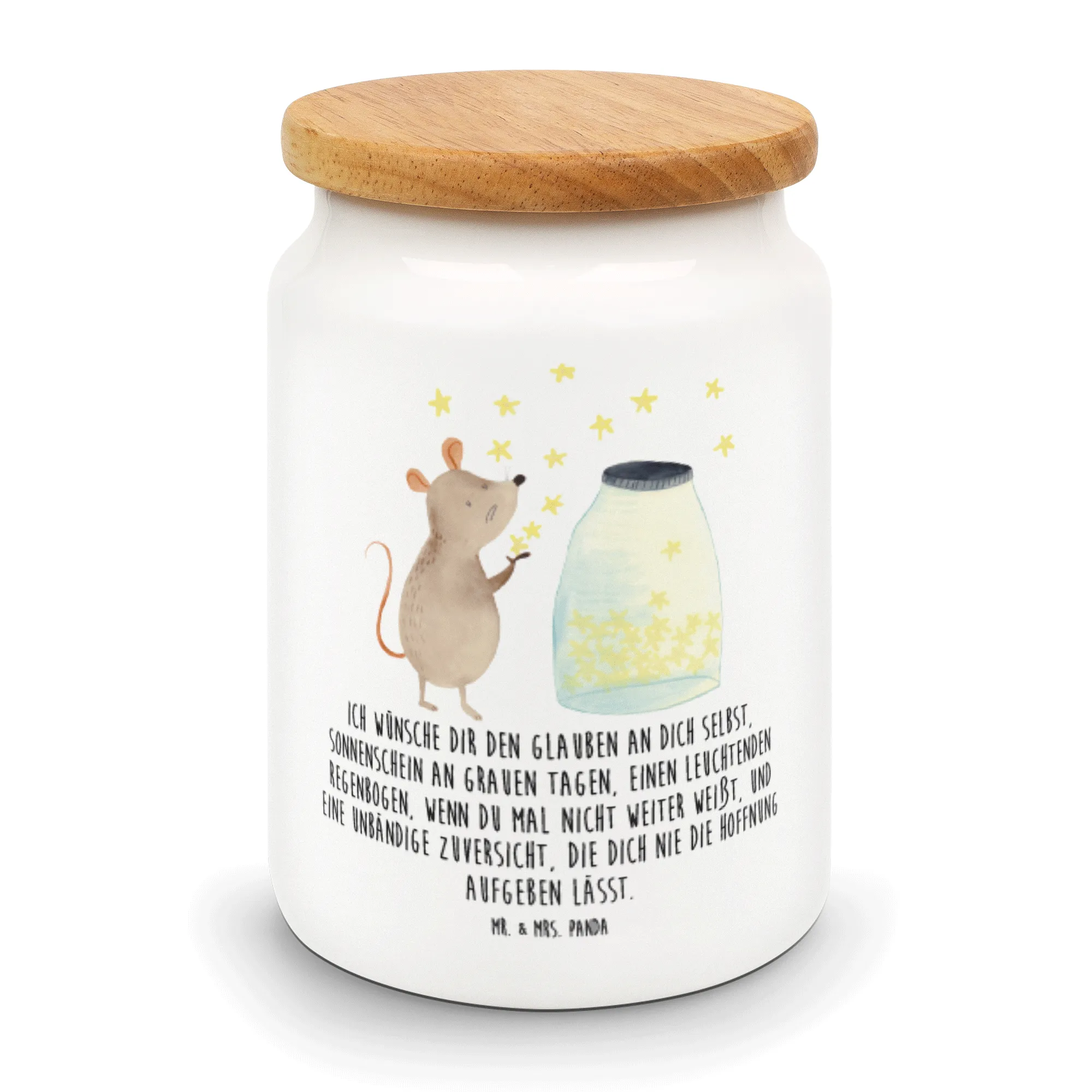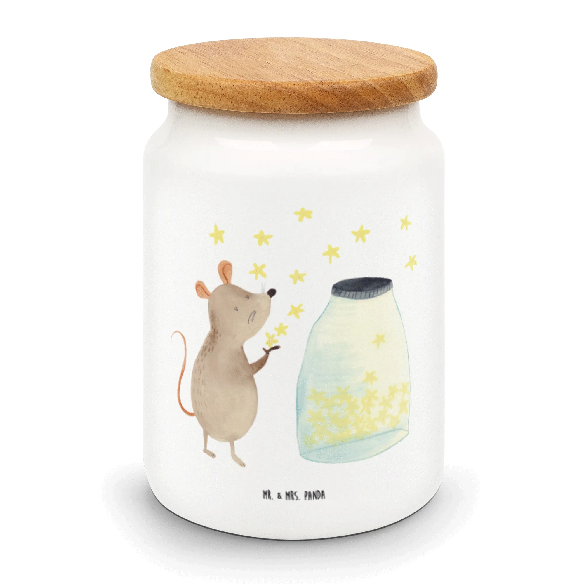 Die süße Maus auf der Dose sitzt verträumt vor einem Glas funkelnder Sterne und lässt sie in die Freiheit fliegen. Mit jedem Blick auf das liebevolle Design wirst du an die kleinen Wunder des Lebens erinnert und erhältst eine Portion Glück! Zudem ist diese Vorratsbehälter spülmaschinengeeignet und somit super einfach zu reinigen.