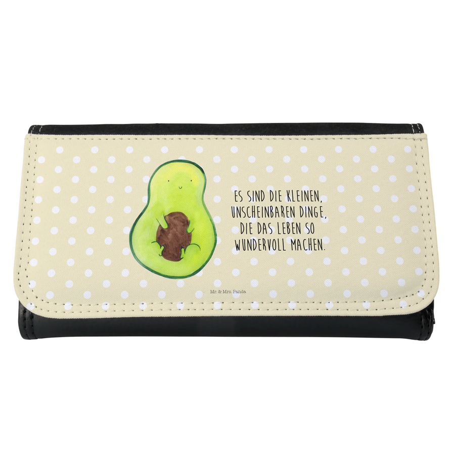 Portfel damski Awokado pestka - z napisem - Pastelowy żółty
