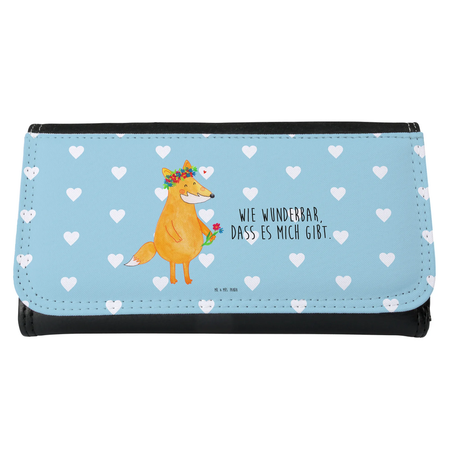 Portfel damski lis Kwiaty - z napisem - pastelowy turkus