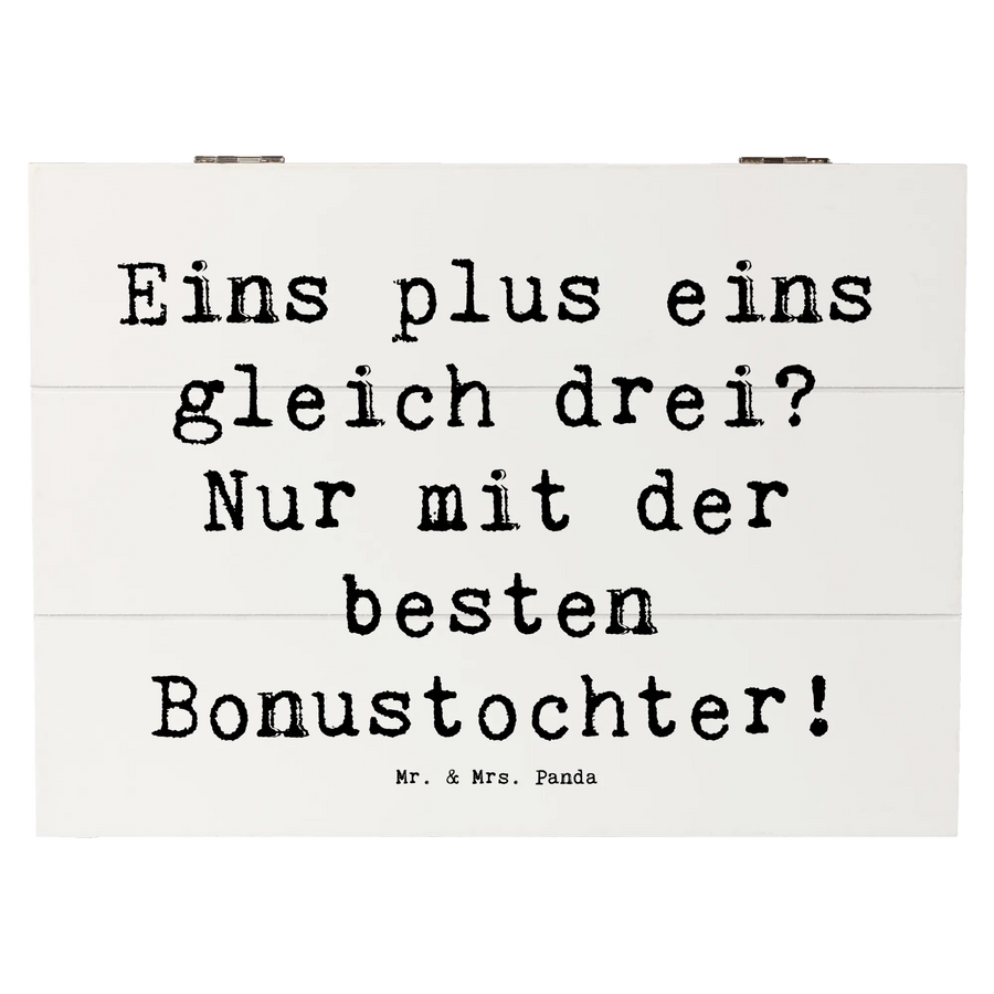 Der liebevolle Spruch "Eins plus eins gleich drei? Nur mit der besten Bonustochter!" bringt die Verbindung zwischen Stiefeltern und Stieftöchtern wunderschön zum Ausdruck. Diese charmante Botschaft feiert die besondere Rolle der Bonustochter und zeigt, wie sehr sie im Familienleben geschätzt wird. Ob als Geschenk zum Geburtstag, zum Muttertag oder einfach als liebevolle Geste zwischendurch, diese Kiste ist ein echter Hingucker in jedem Zuhause.