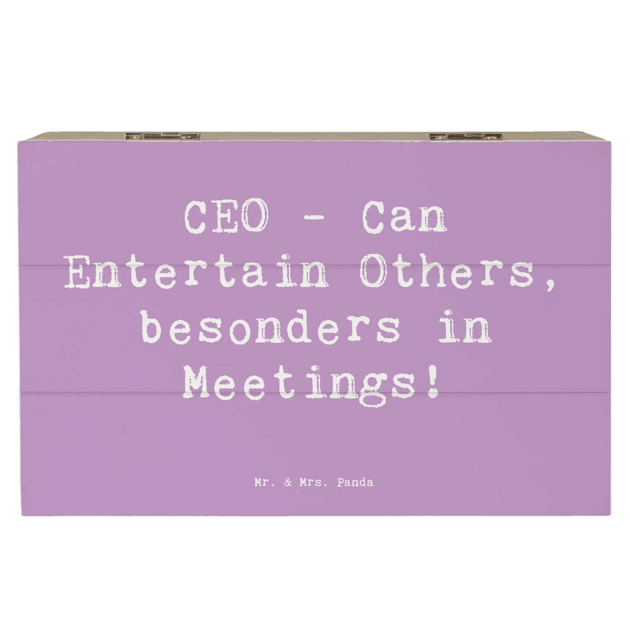Die wunderschöne Holzkiste von Mr. & Mrs. Panda ist das perfekte Geschenk für alle CEOs und Führungskräfte! Mit dem liebevoll gestalteten Motiv "CEO - Can Entertain Others, besonders in Meetings!" bringt diese Kiste nicht nur einen Hauch von Humor ins Büro, sondern bietet auch einen idealen Ort, um wichtige Unterlagen, Erinnerungen oder Geschenke stilvoll aufzubewahren.