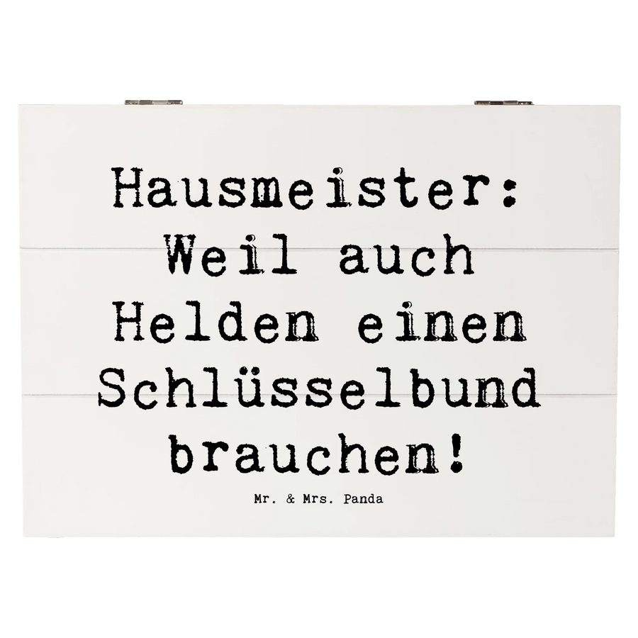 Holzkiste Spruch Hausmeister: Weil auch Helden einen Schlüsselbund brauchen! - 25 x 18 cm - Weiß