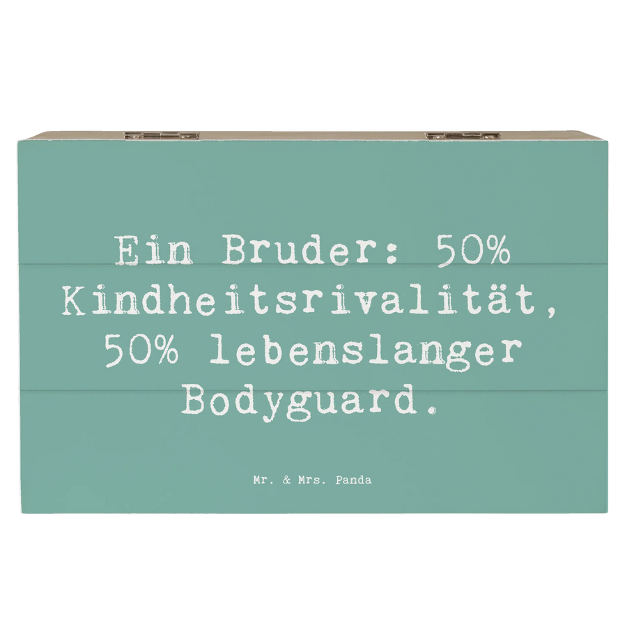 Brüder tragen eine unvergleichliche Rolle in unserem Leben und die Beziehung zu ihnen ist oft geprägt von Rivalität, aber auch von tiefer Zuneigung. Diese Holzkiste, die mit dem Spruch "Ein Bruder: 50% Kindheitsrivalität, 50% lebenslanger Bodyguard" bedruckt ist, fängt genau diese Dynamik ein.