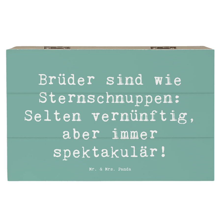 Mit dem Spruch "Brüder sind wie Sternschnuppen: Selten vernünftig, aber immer spektakulär!" lässt sich diese Kiste spielend leicht an die besondere Beziehung zu deinem Bruder anpassen. Die Holzkiste, gefertigt aus robuster Holzfaser, ist nicht nur stabil, sondern auch ein echter Hingucker in jedem Raum.