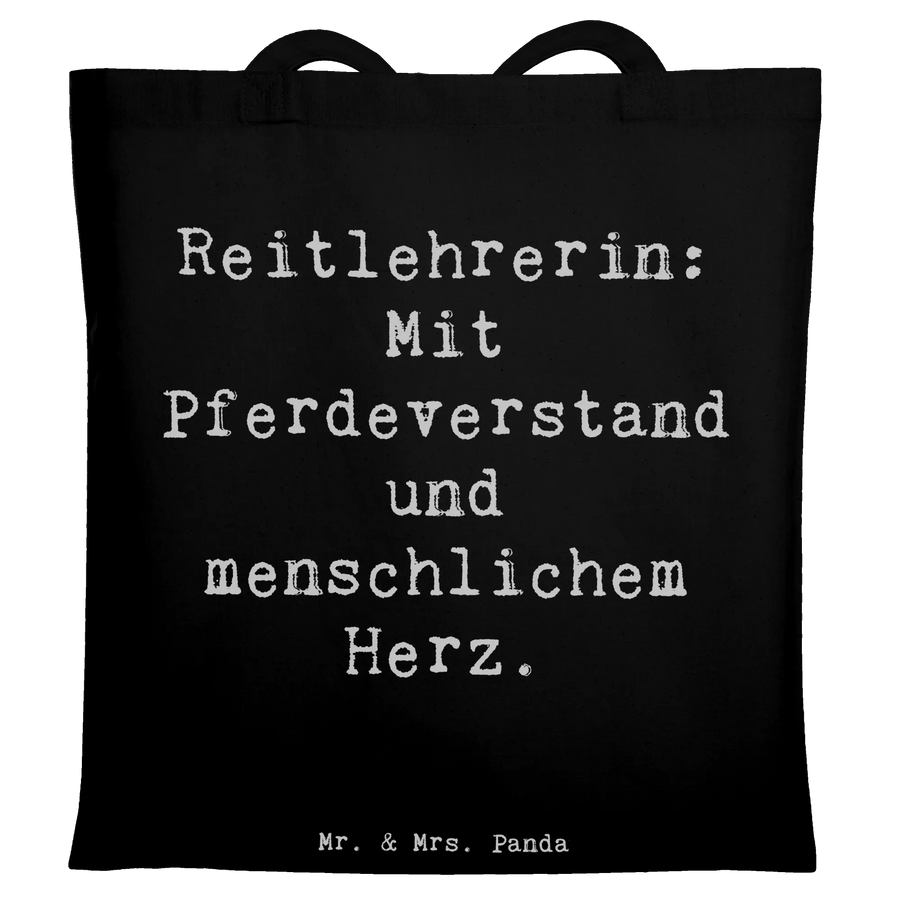 Tragetasche Spruch Reitlehrerin: Mit Pferdeverstand und menschlichem Herz. - Schwarz