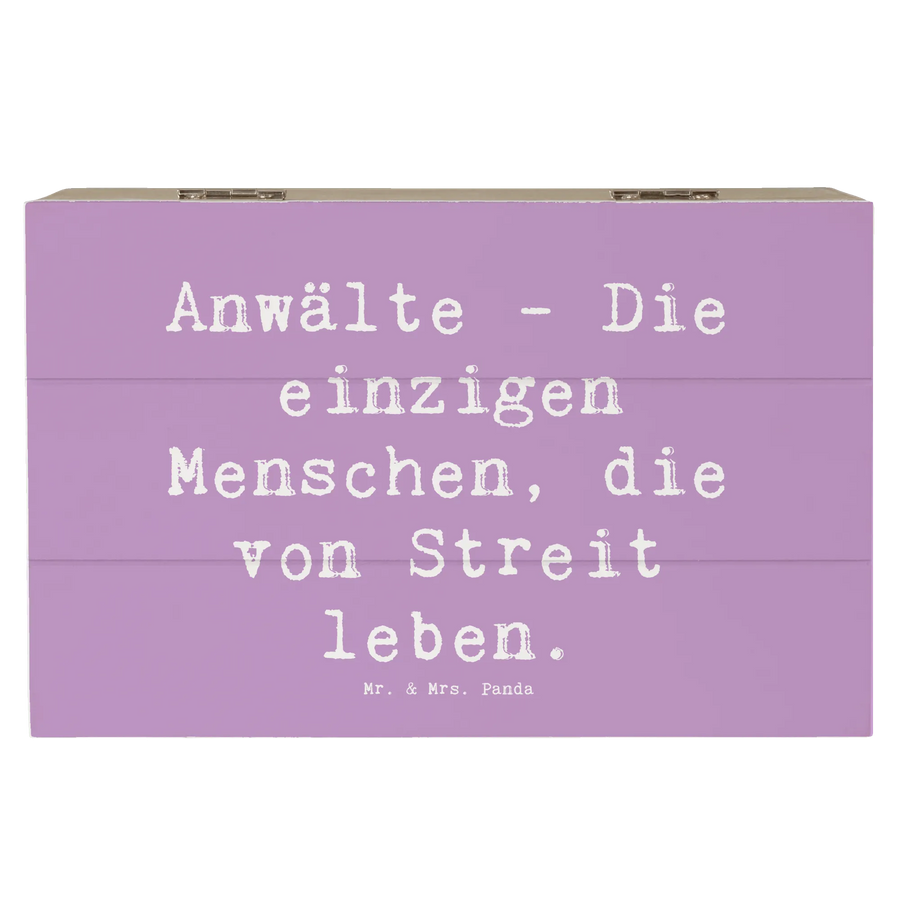 Die wunderschöne Holzkiste von Mr. & Mrs. Panda ist das perfekte Geschenk für alle Anwälte und Juristen! Mit dem liebevoll gestalteten Spruch "Anwälte - Die einzigen Menschen, die von Streit leben." bringt sie ein Lächeln in jeden Anwaltsalltag.
